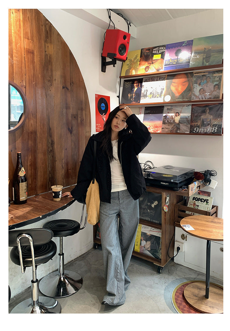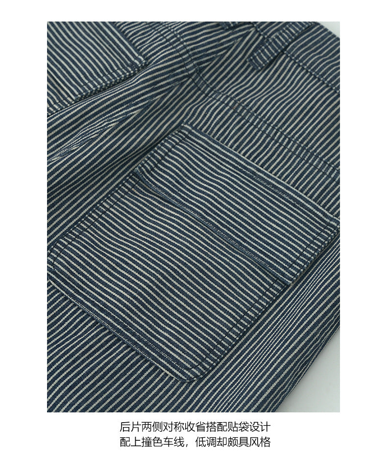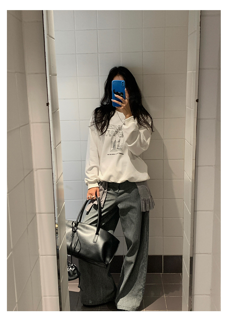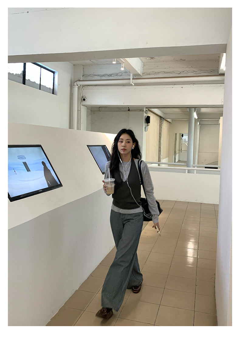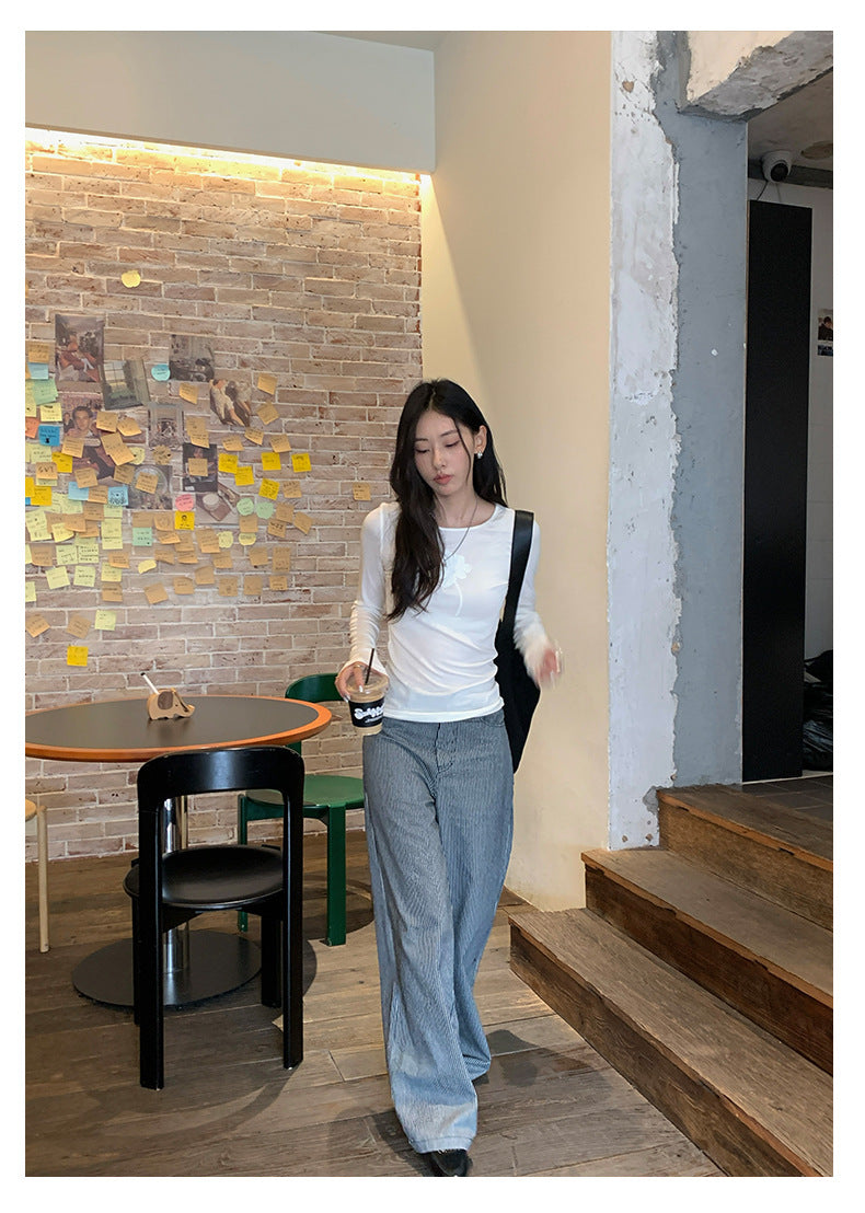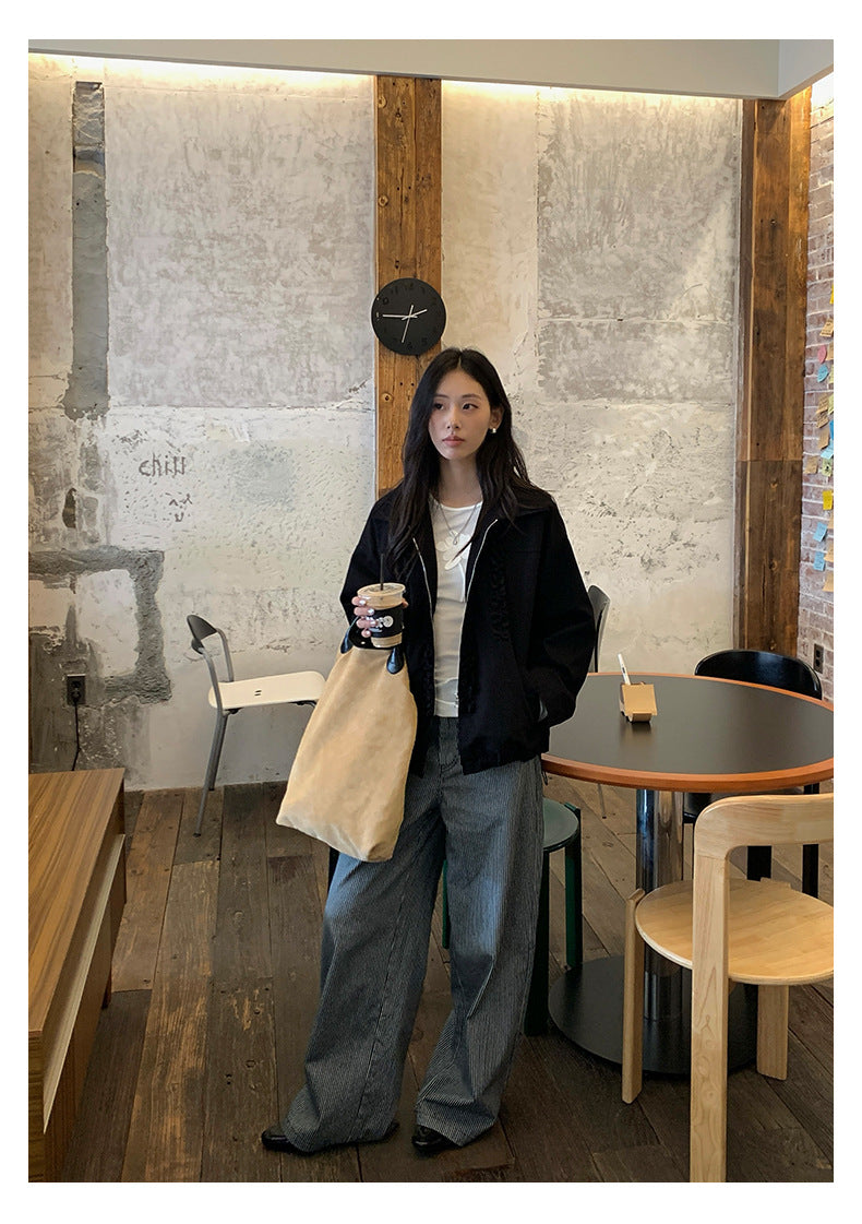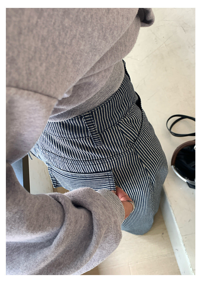 【H5406】實拍早秋藍色條紋直筒闊腿褲250909