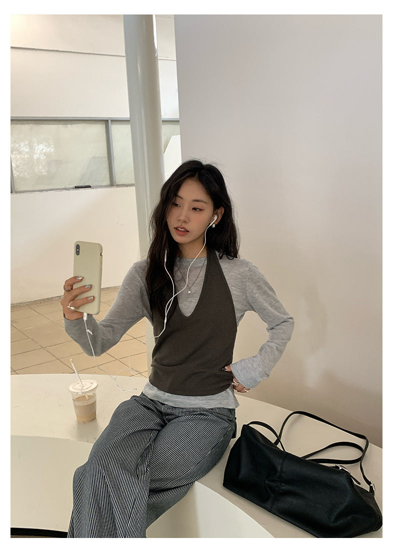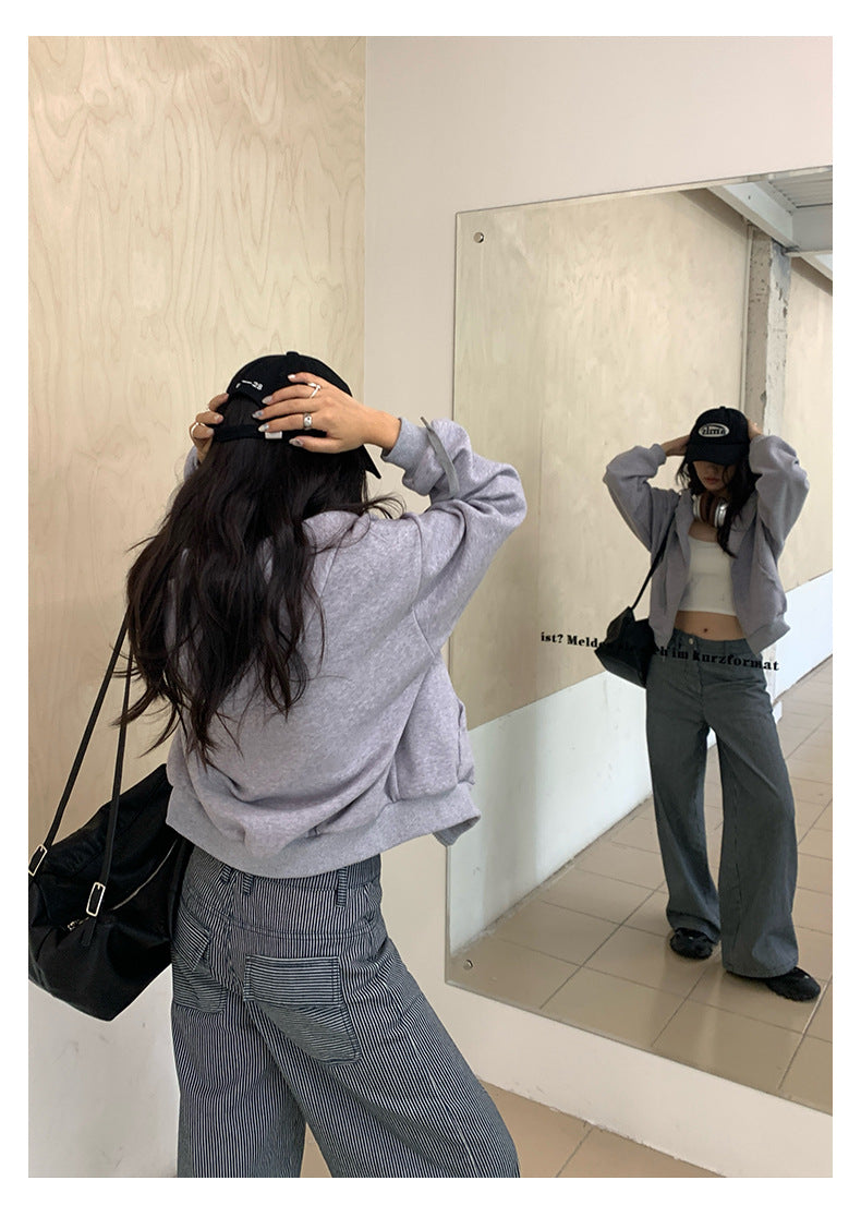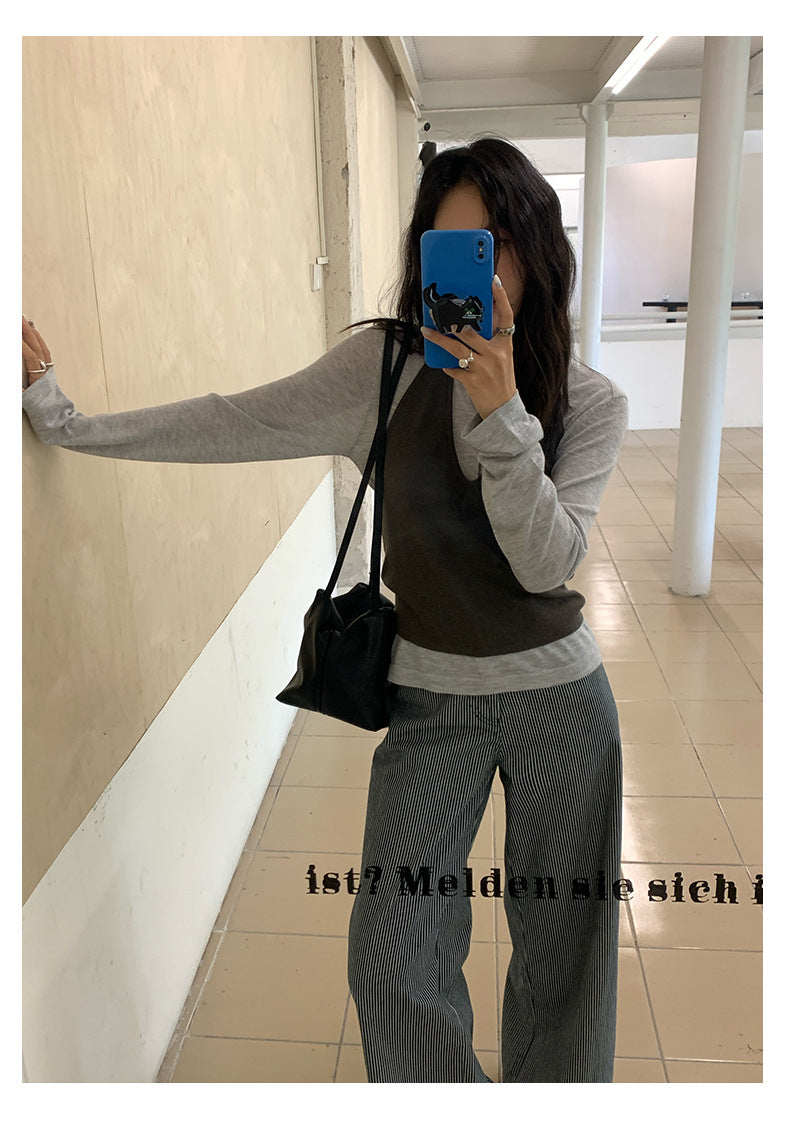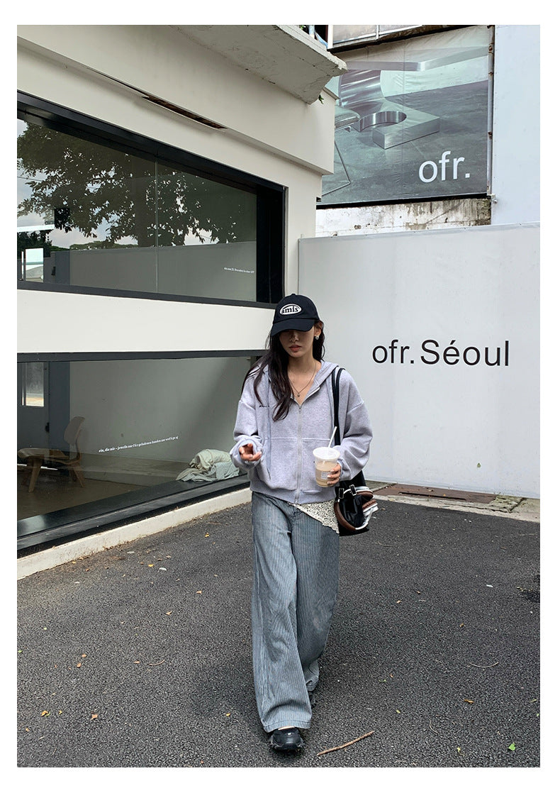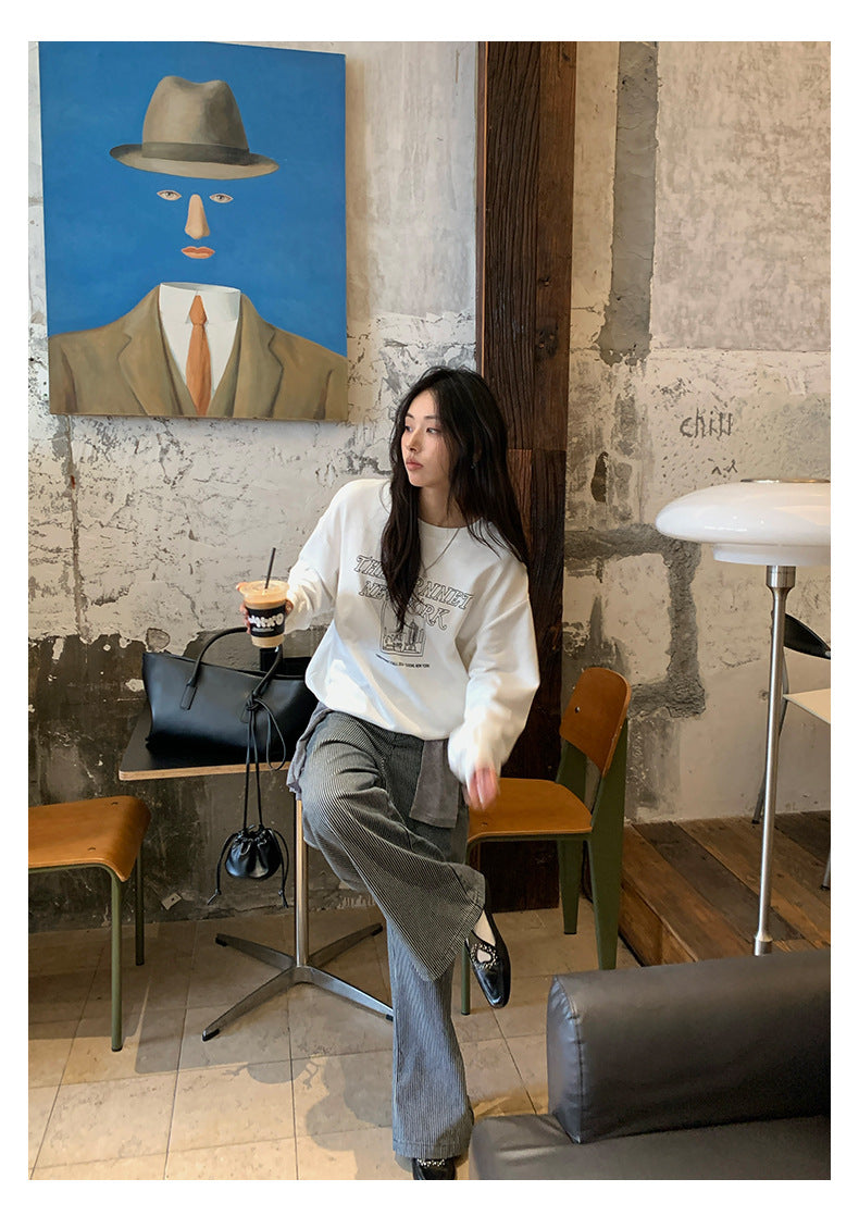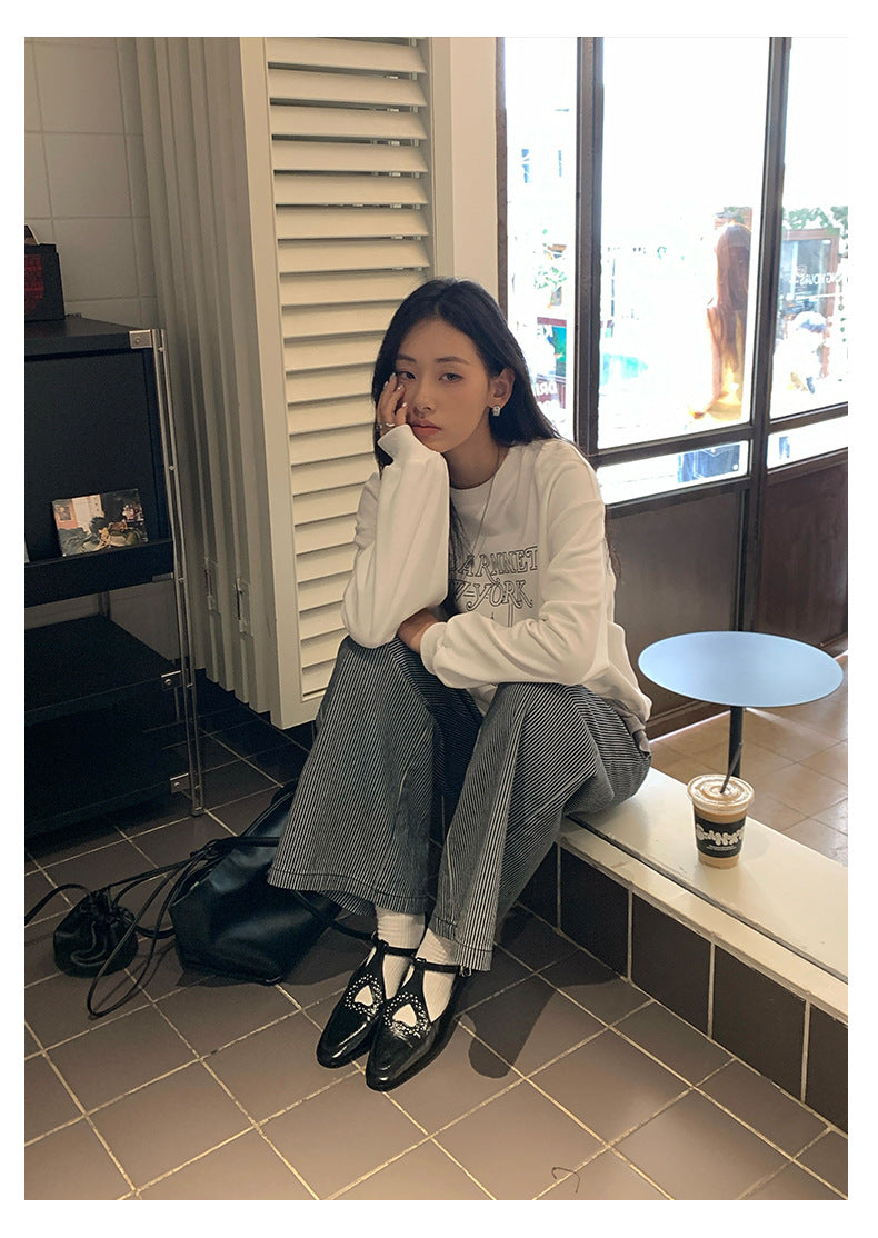【H5406】實拍早秋藍色條紋直筒闊腿褲250909