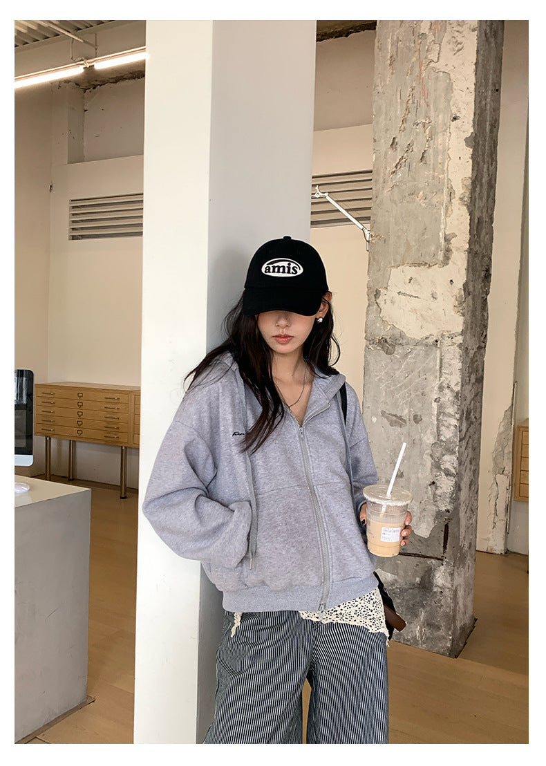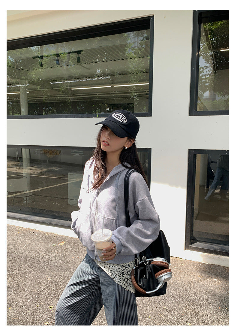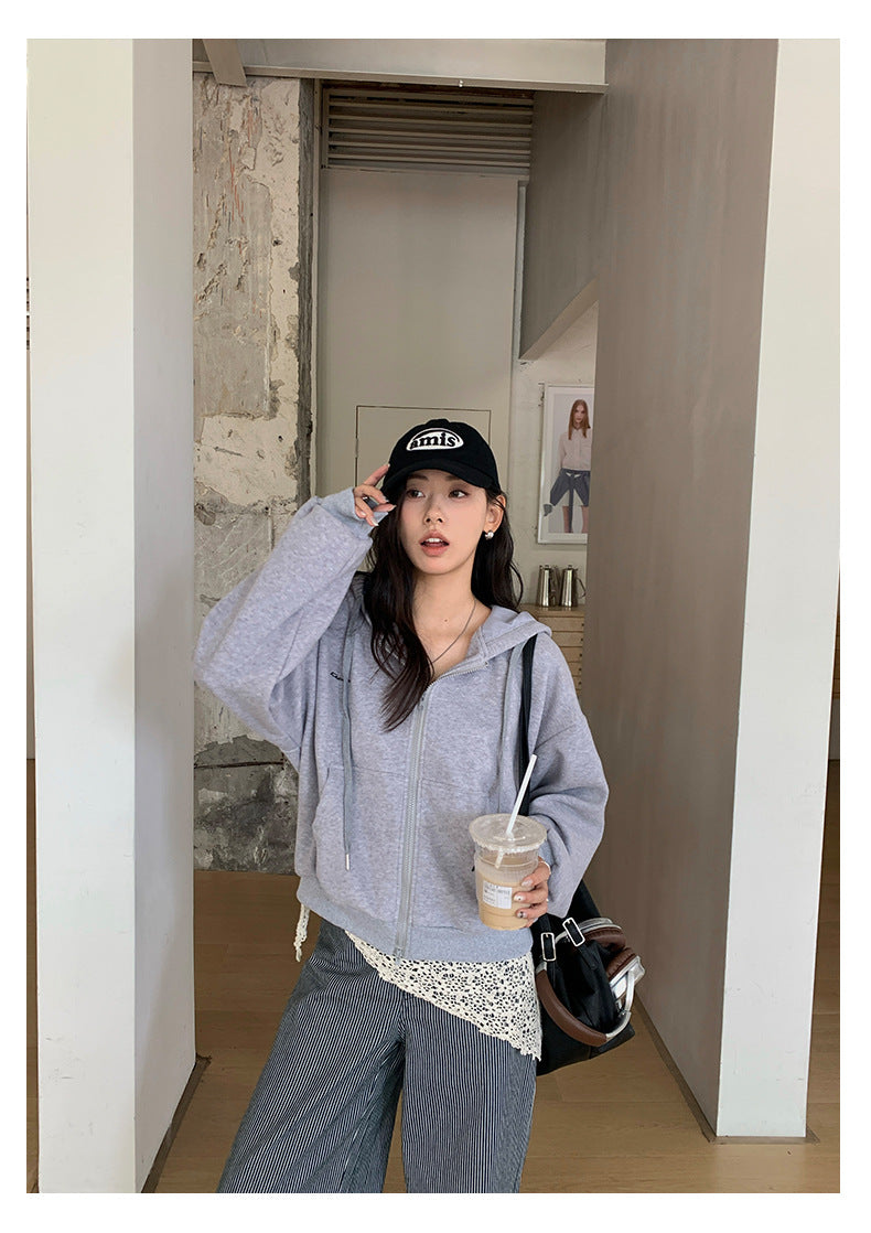 【H5408】實拍早秋休閒刺繡連帽衞衣250909