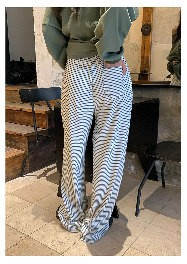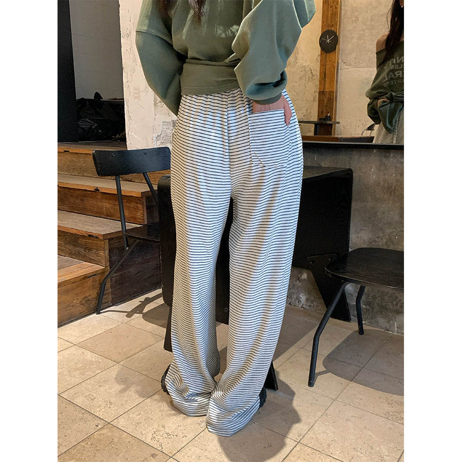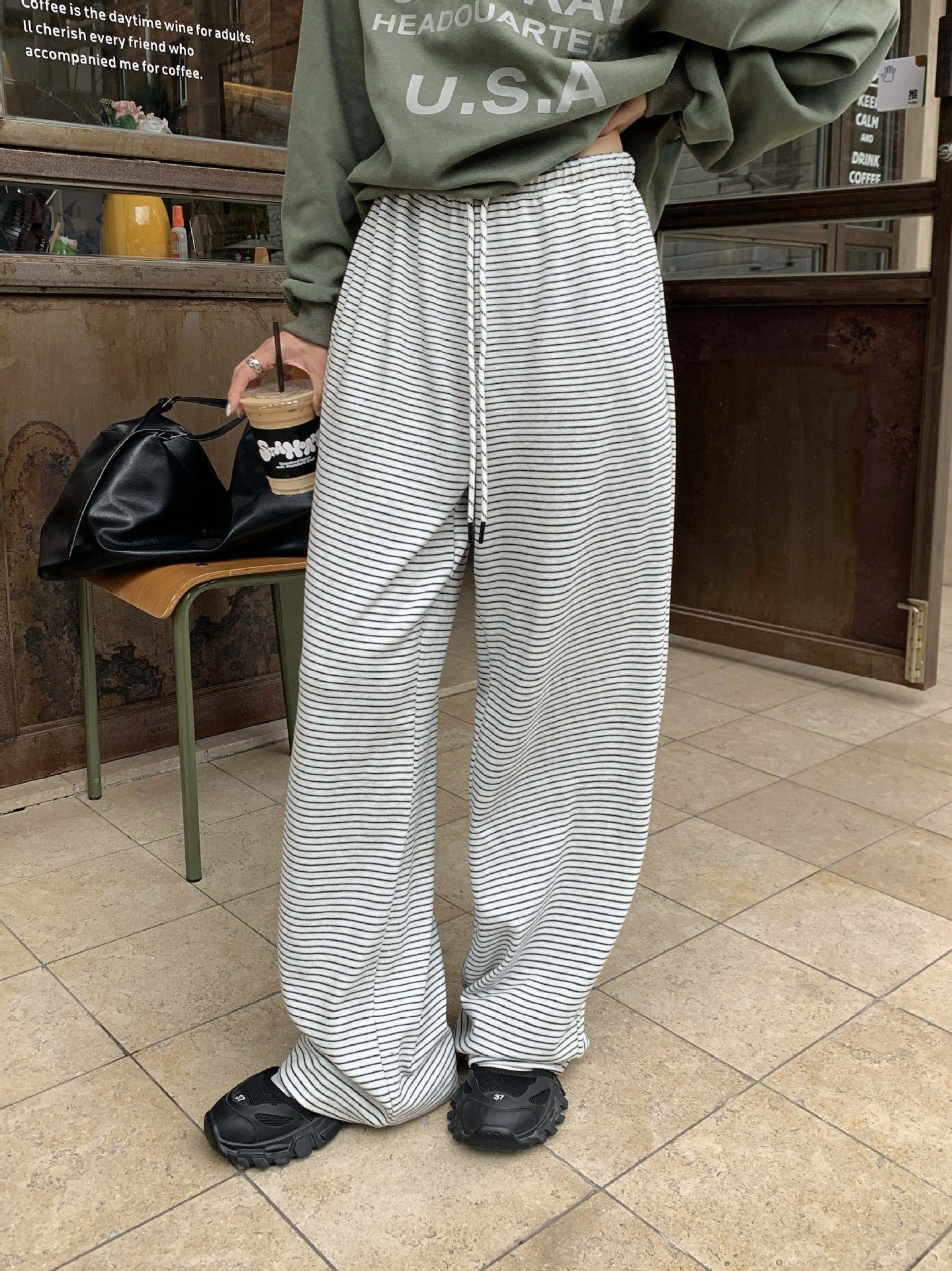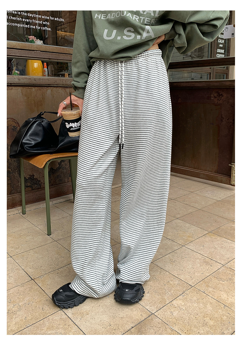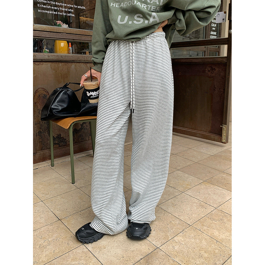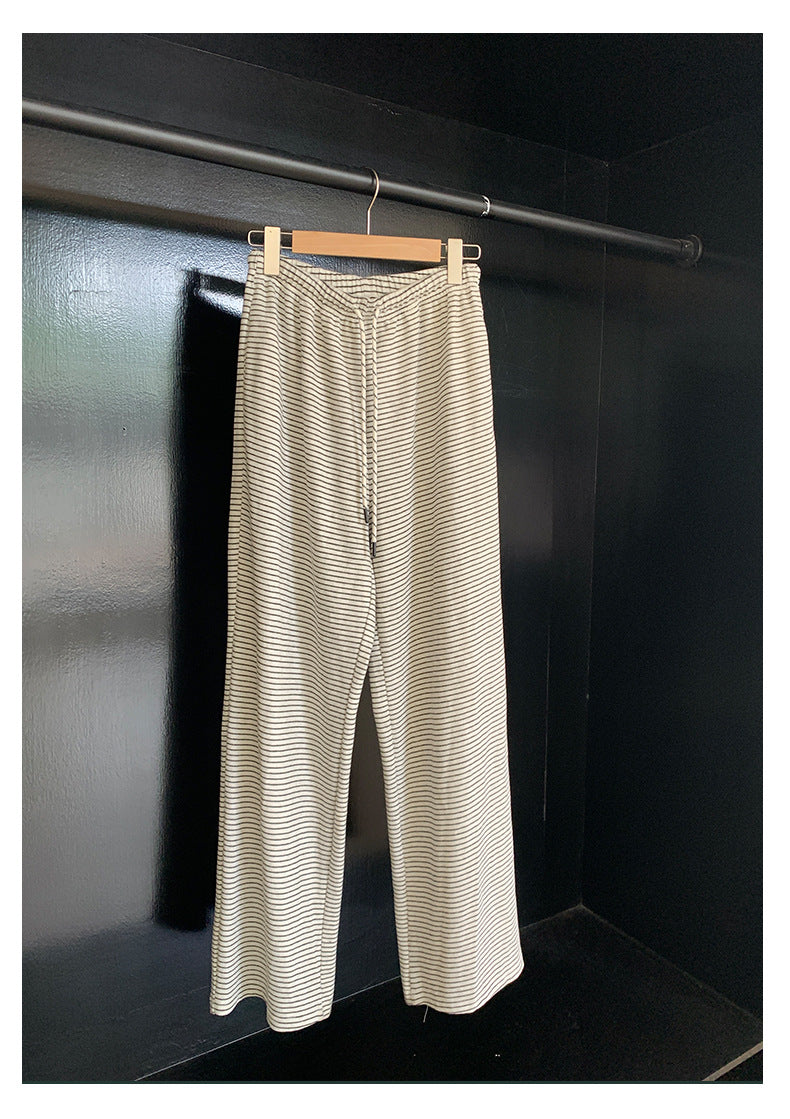 【H5411】實拍慵懶條紋毛巾抽繩闊腿直筒褲250909