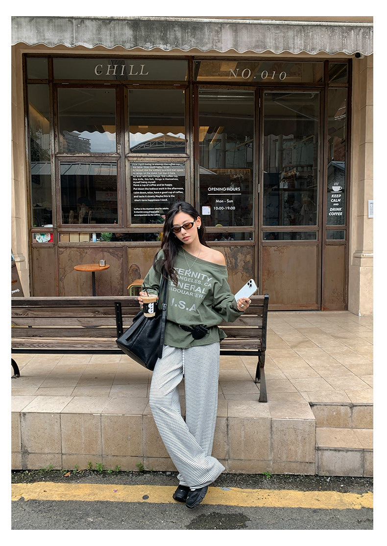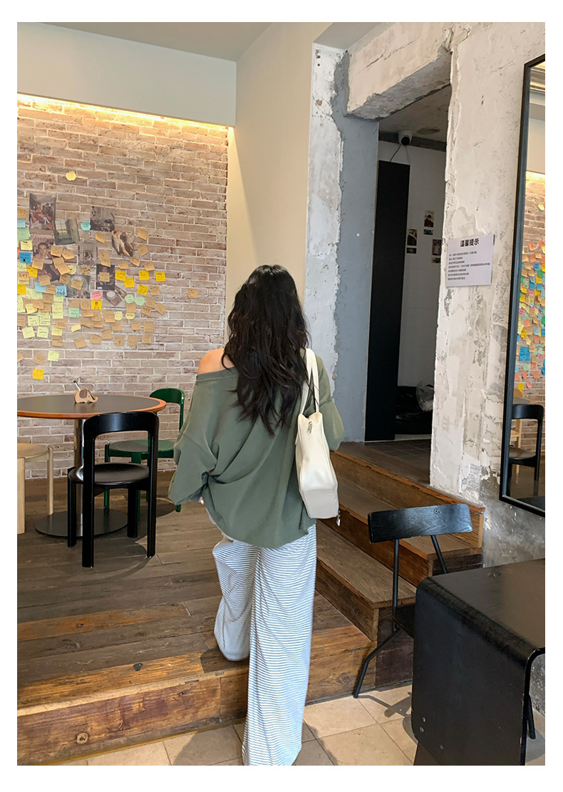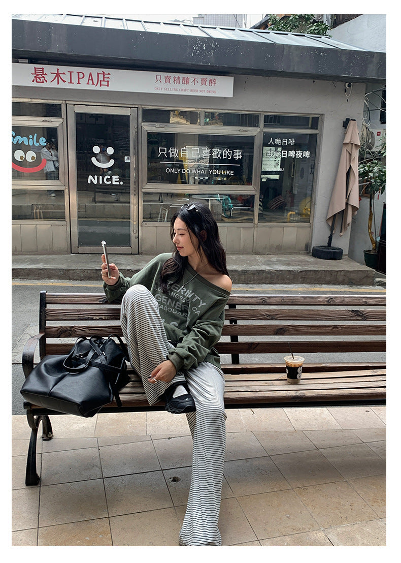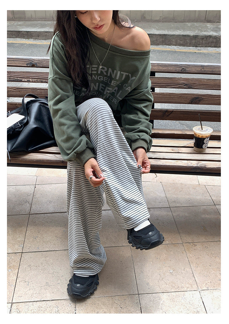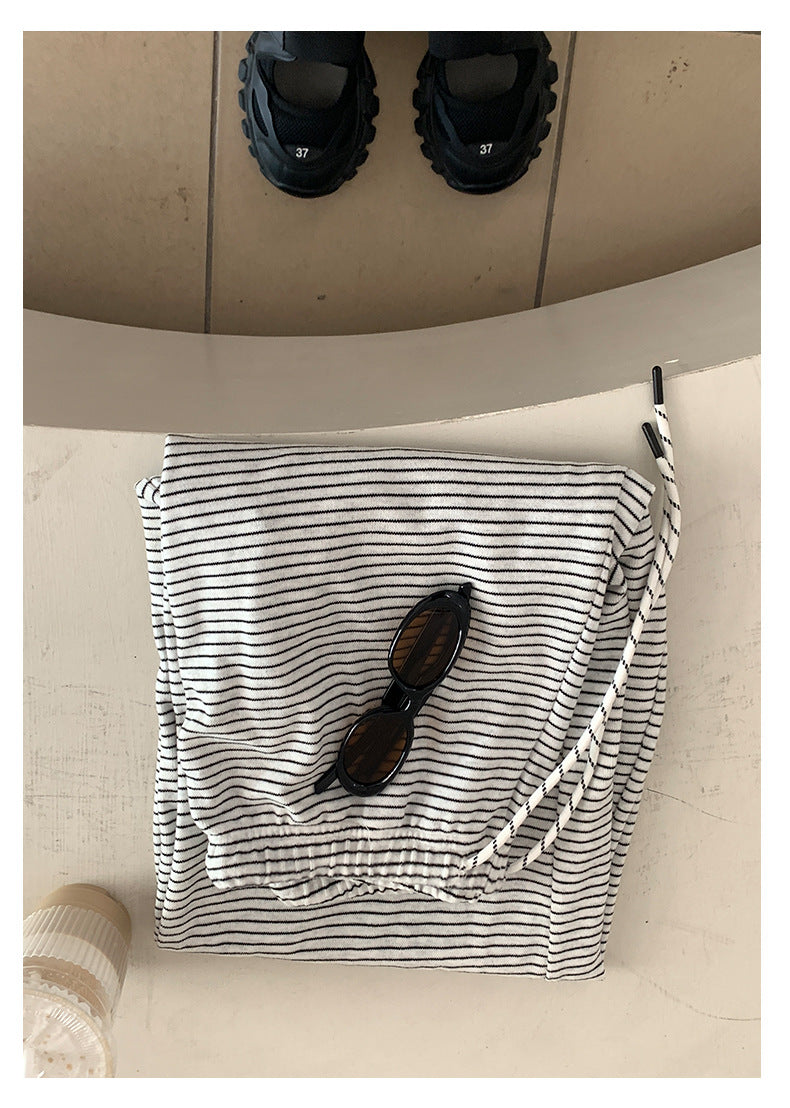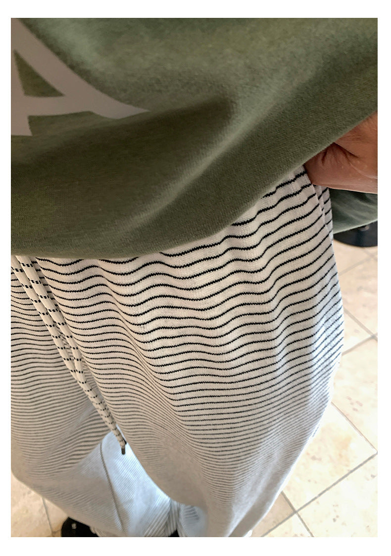 【H5411】實拍慵懶條紋毛巾抽繩闊腿直筒褲250909