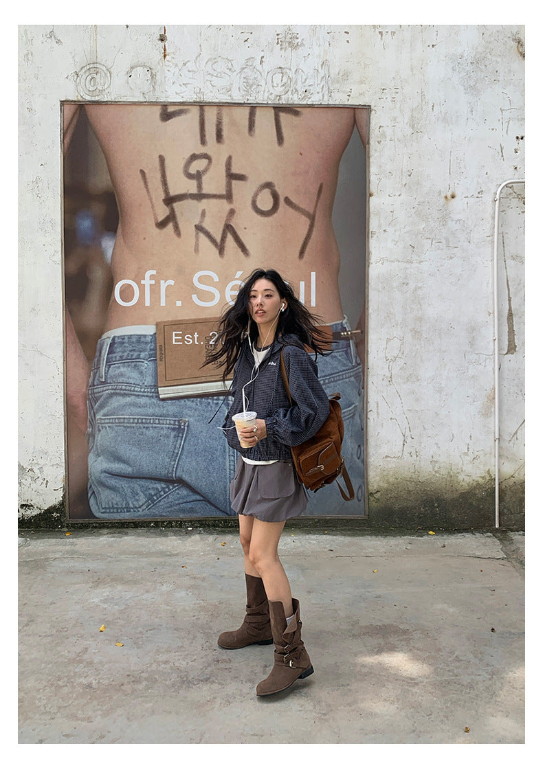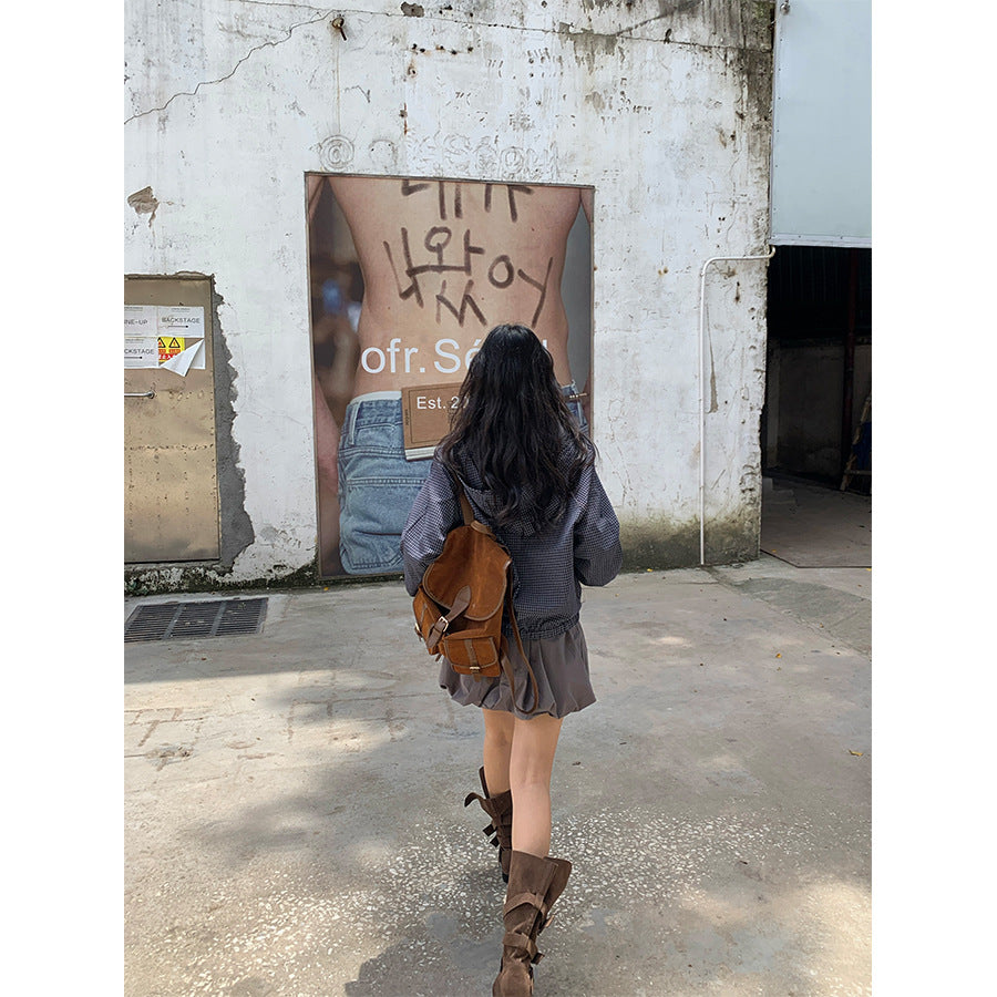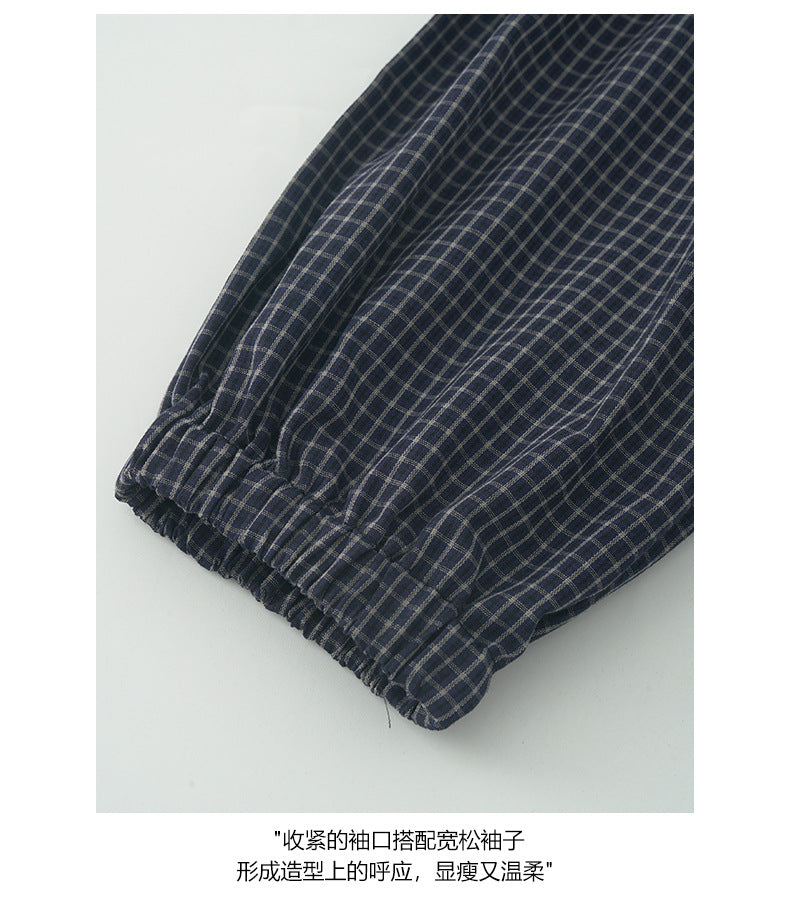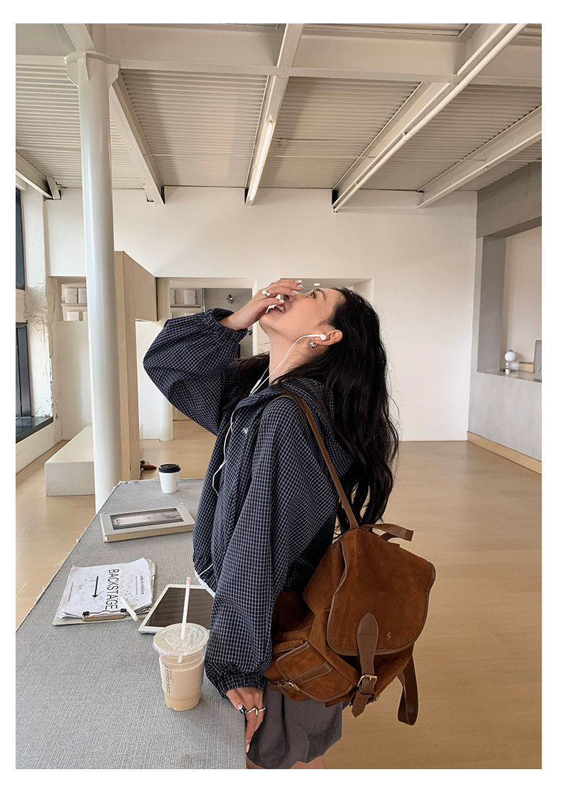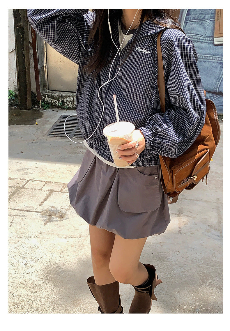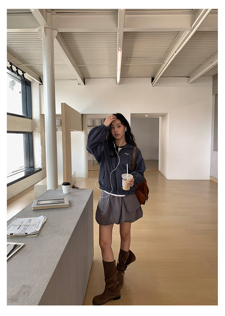 【H5414】實拍早秋微甜格子短版連帽拉鍊外套250909