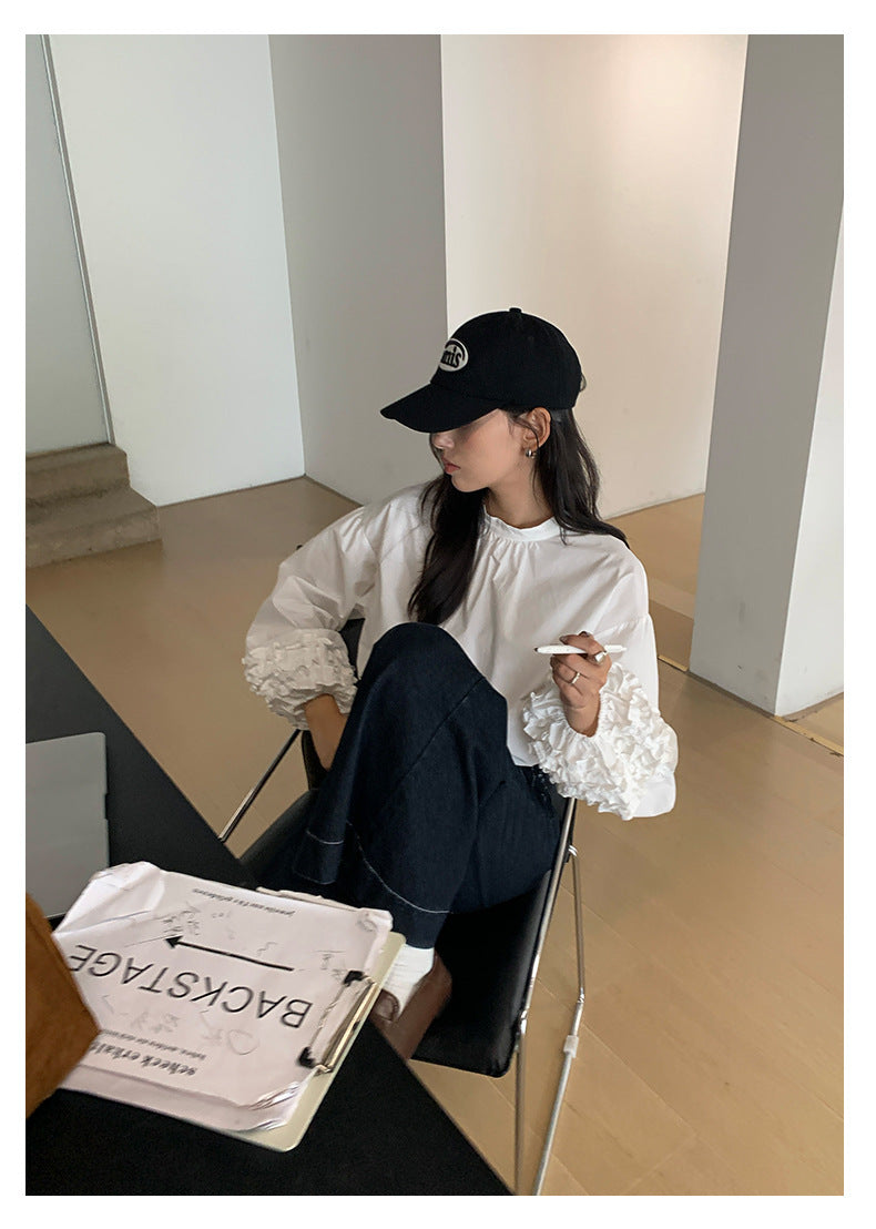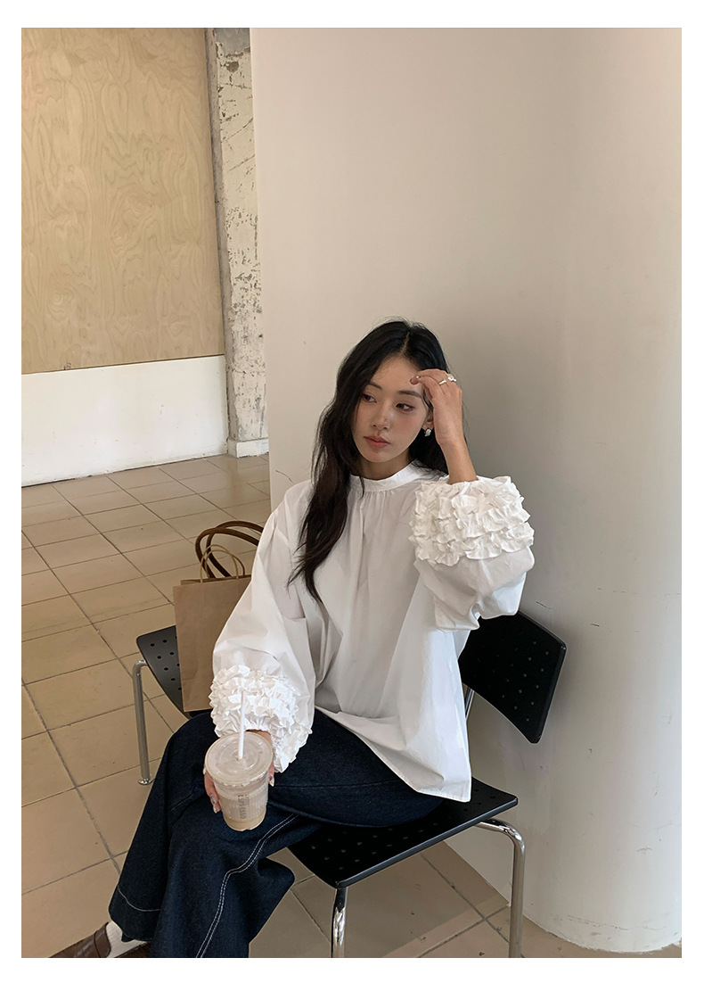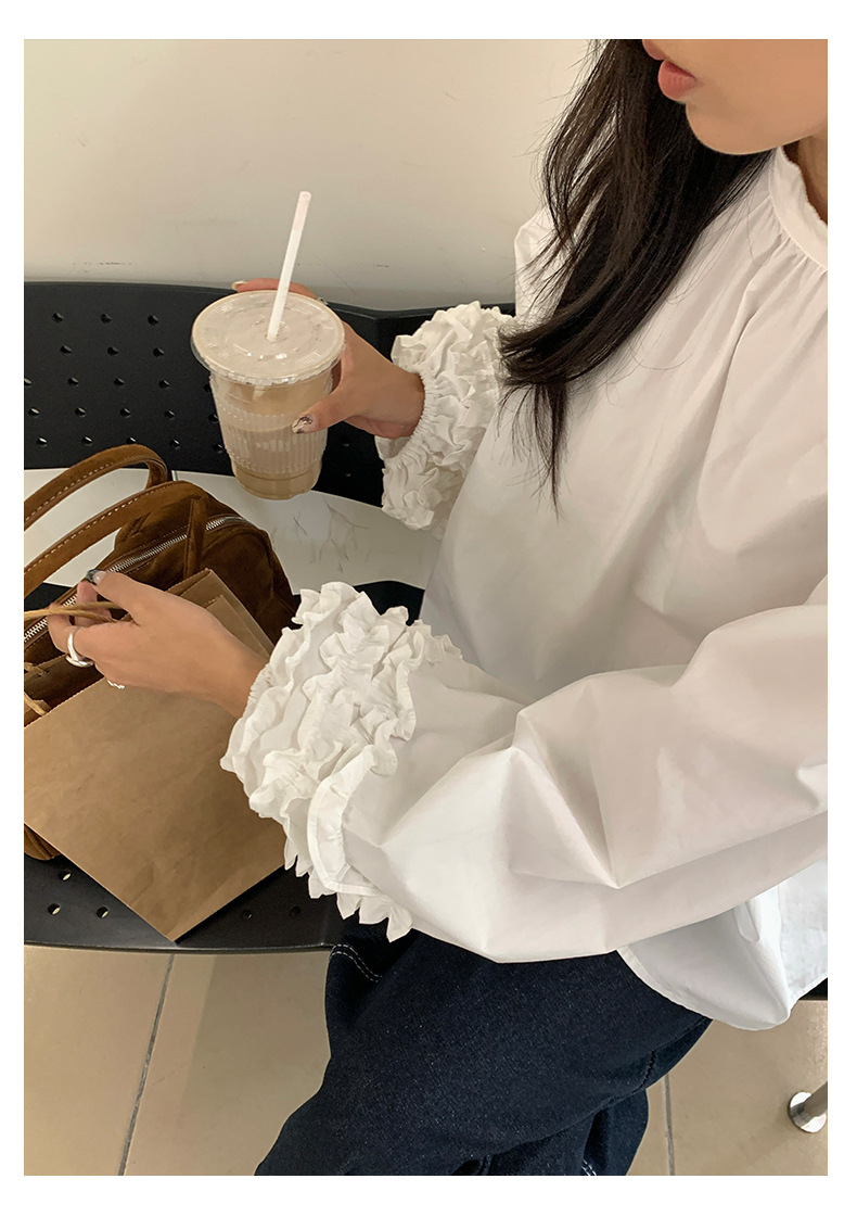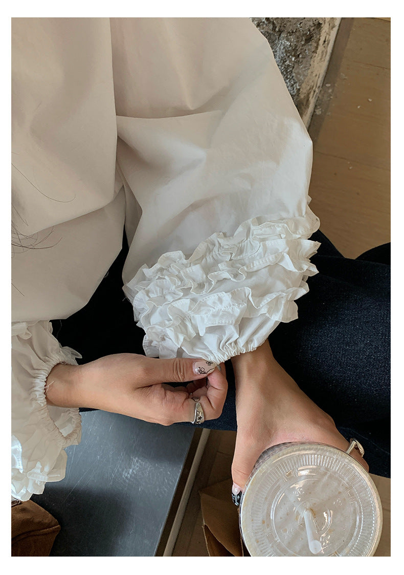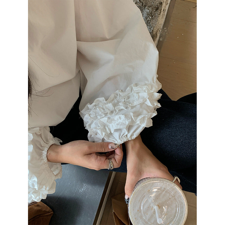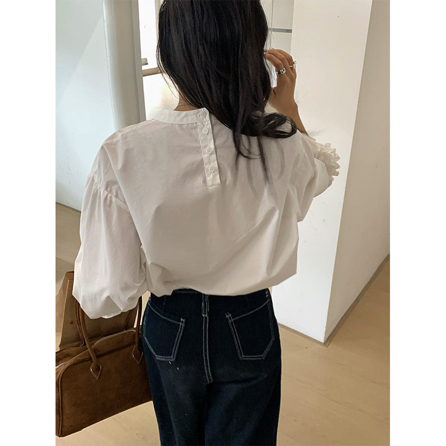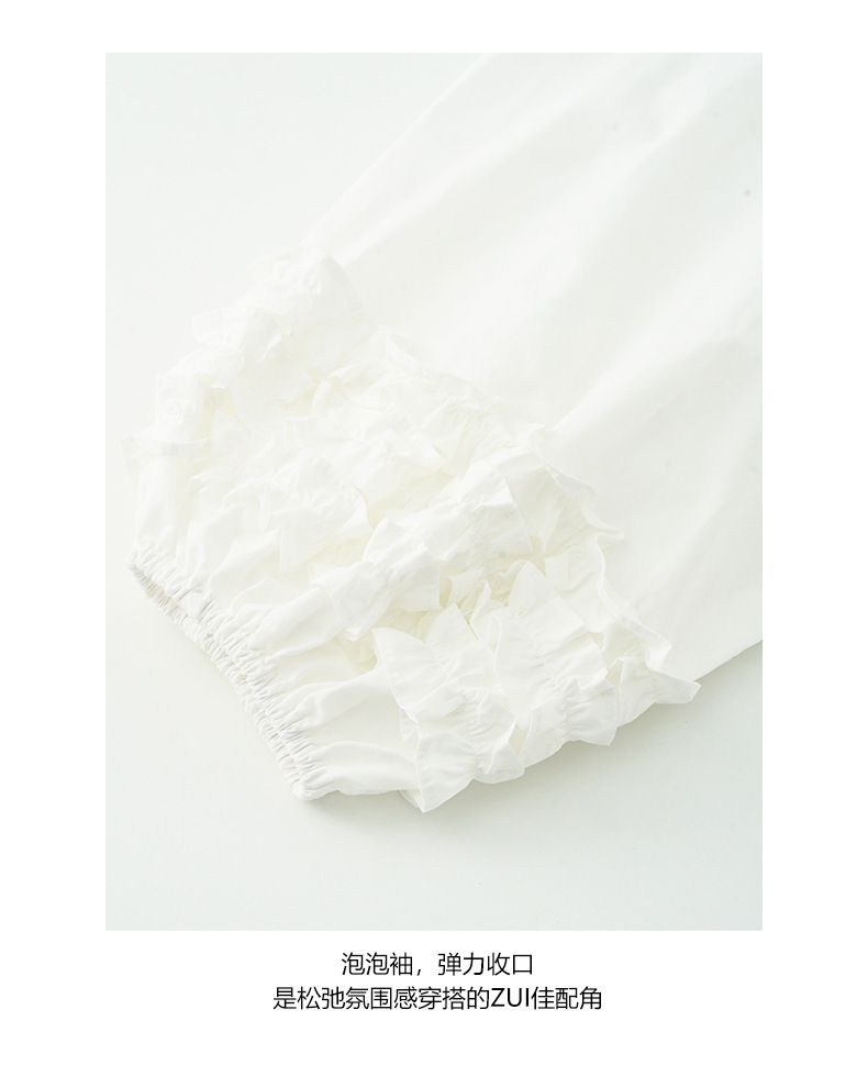 【H5415】實拍韓系早秋設計款棉質荷葉燈籠袖襯衫250909