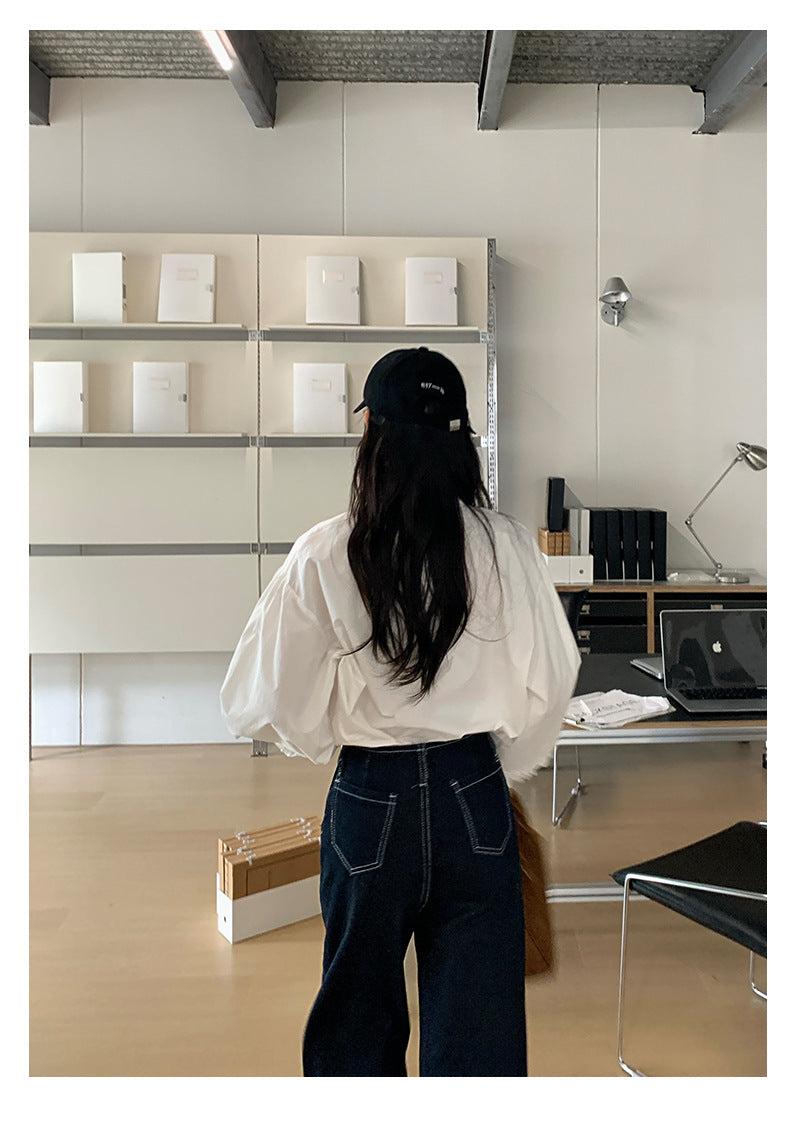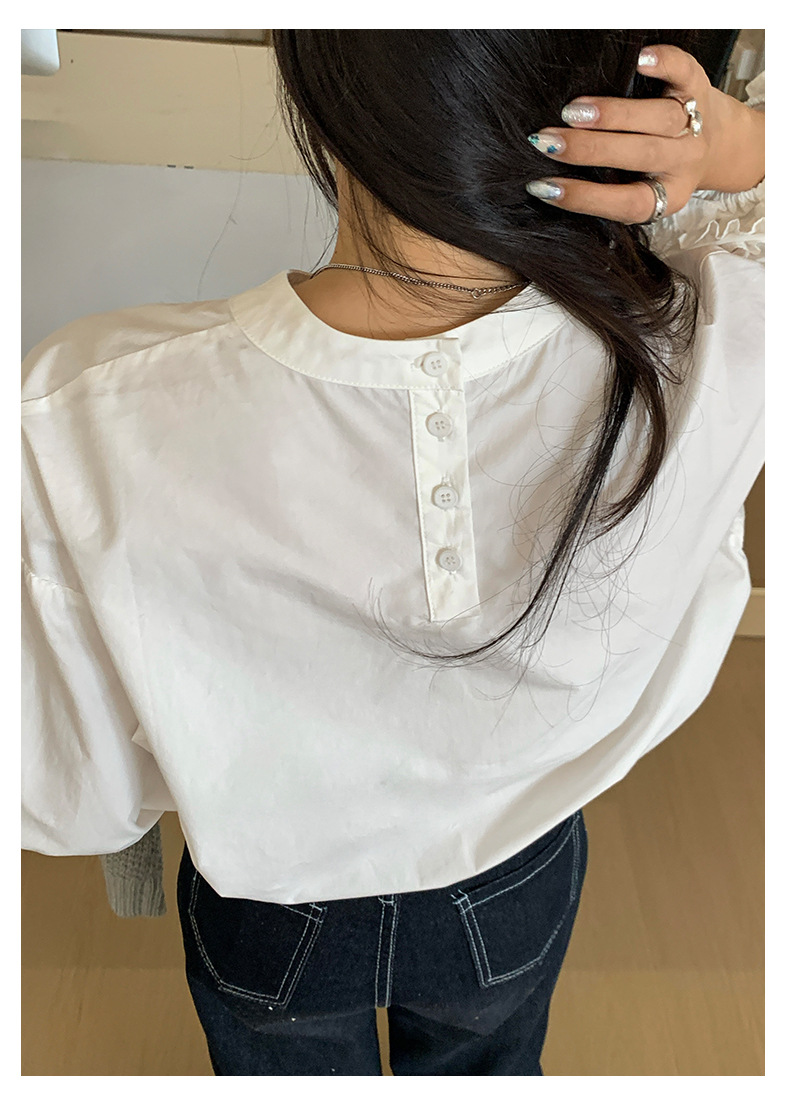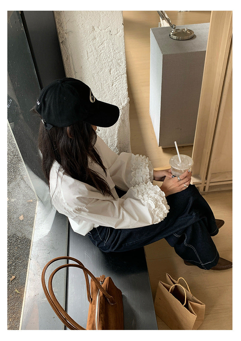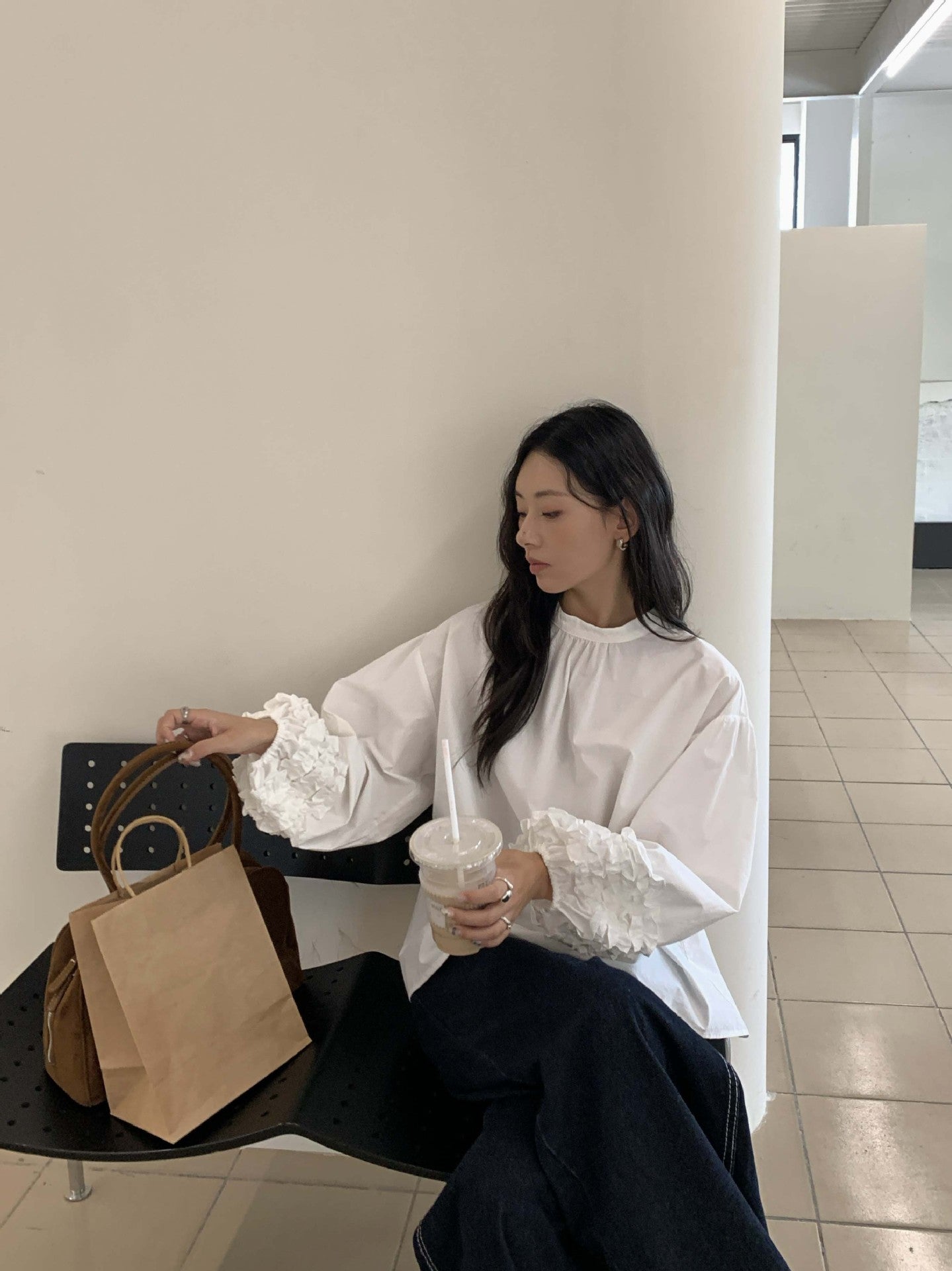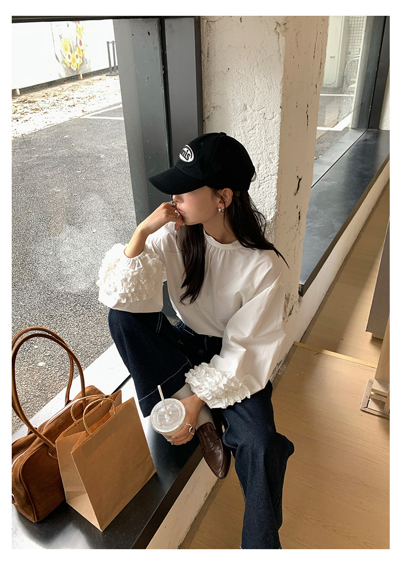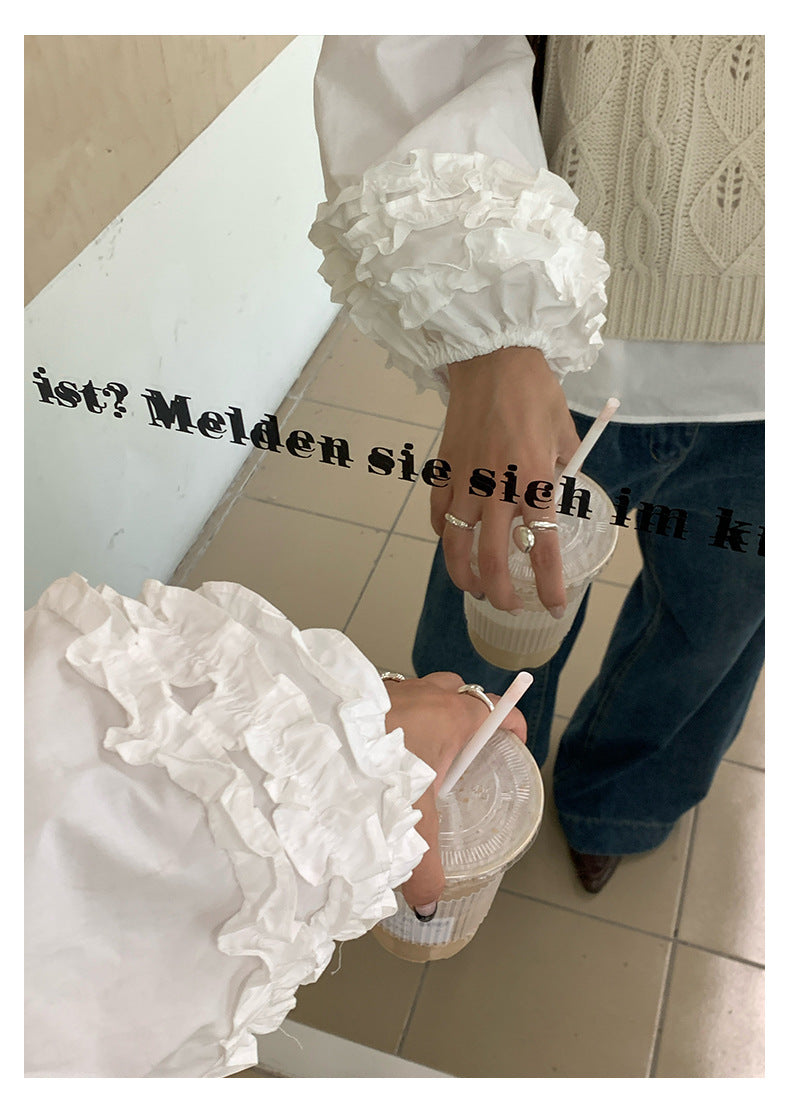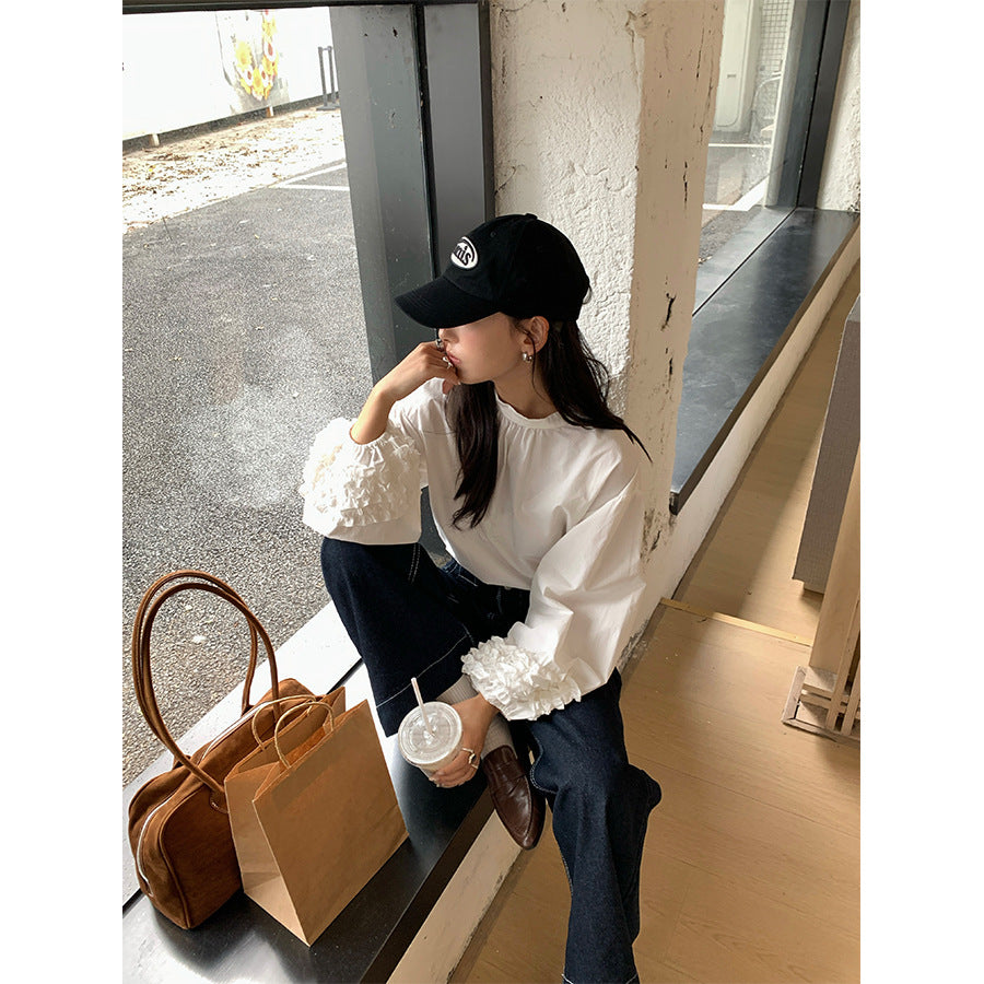 【H5415】實拍韓系早秋設計款棉質荷葉燈籠袖襯衫250909