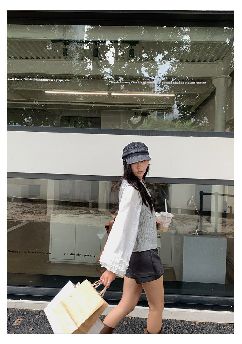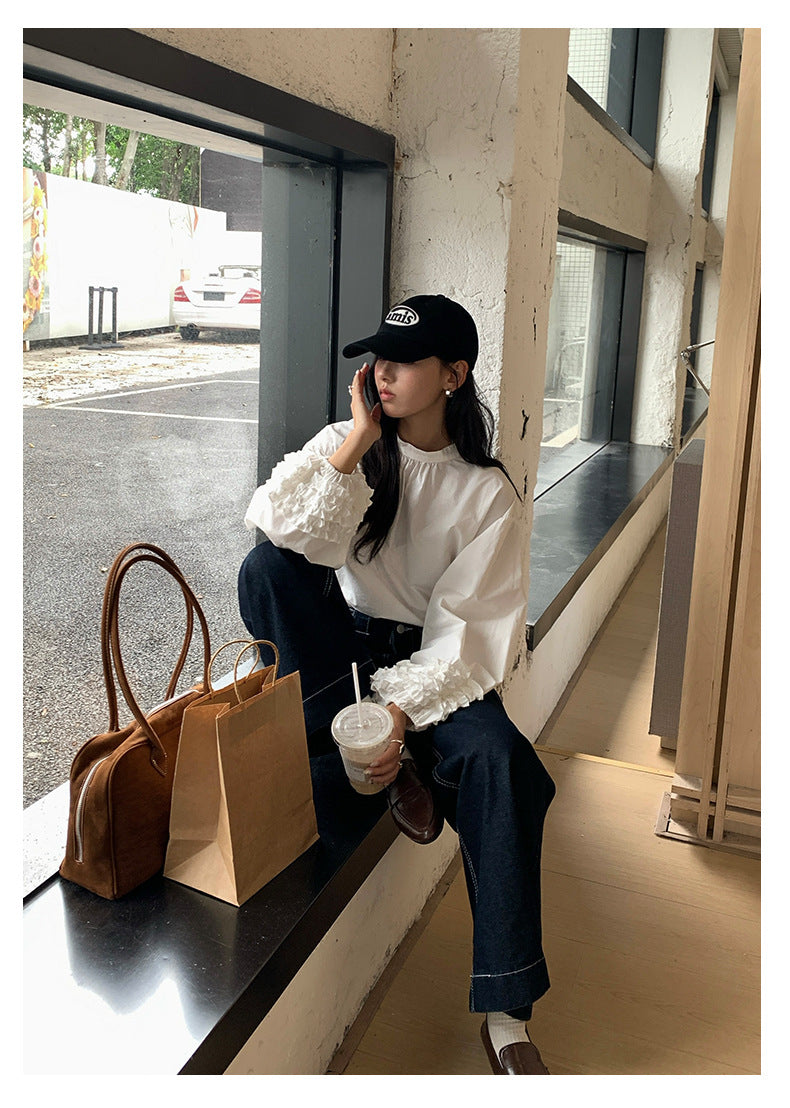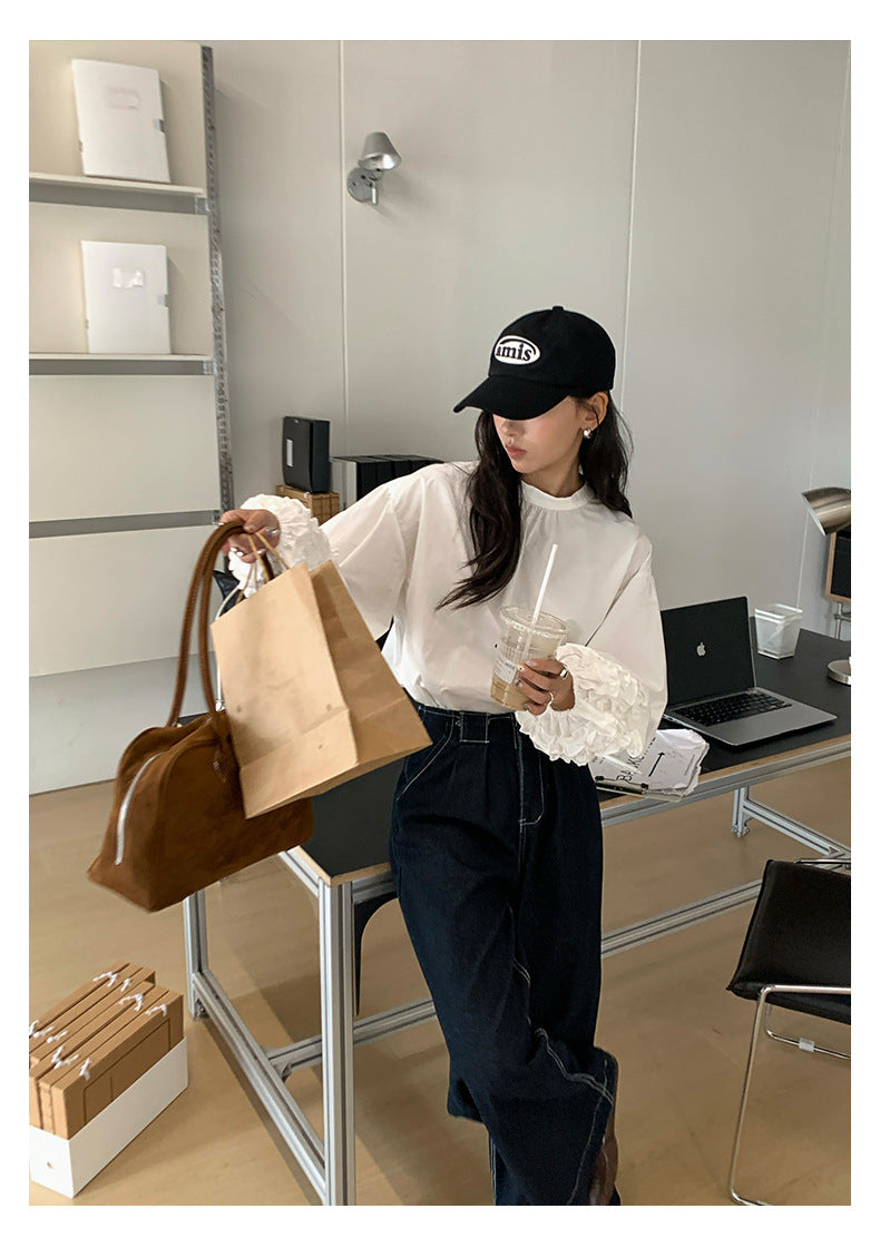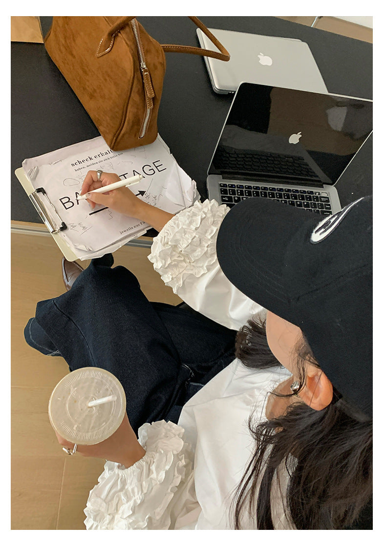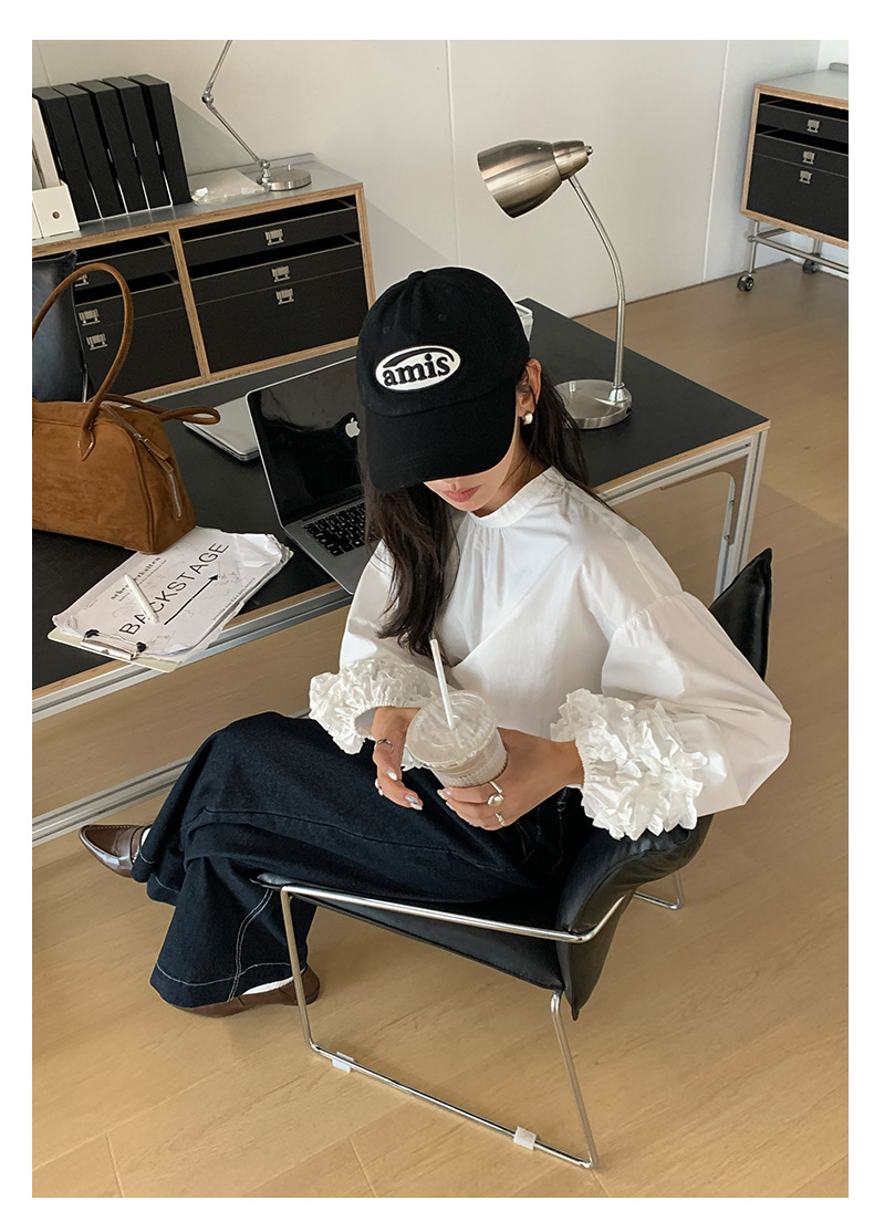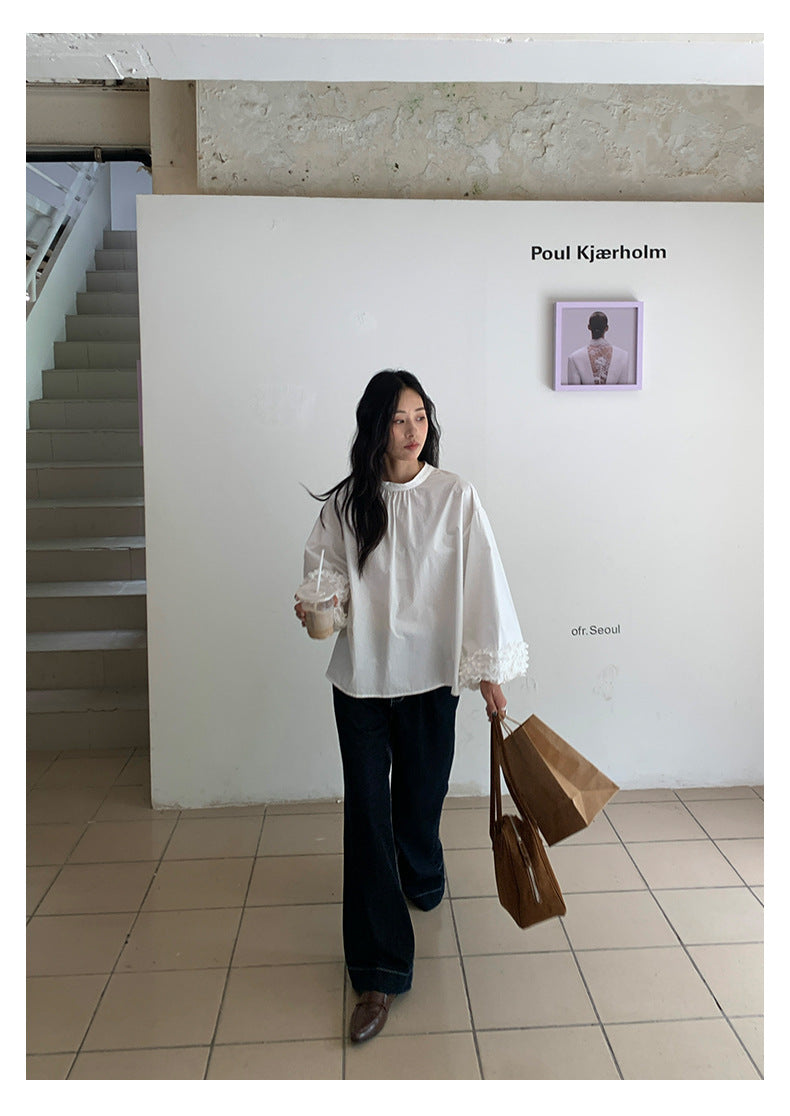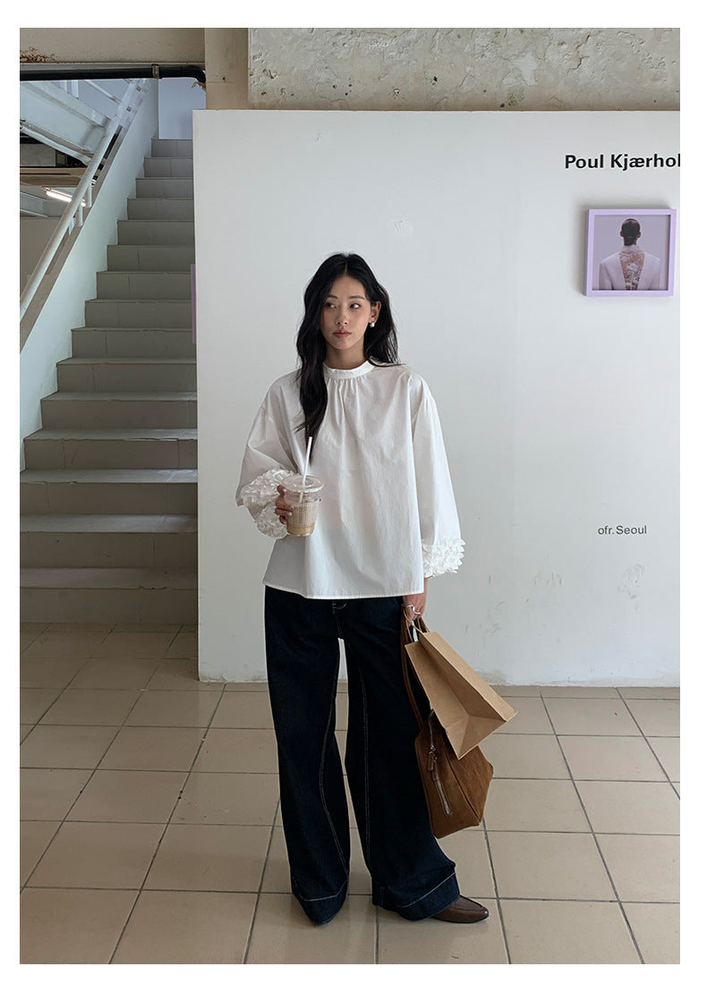 【H5415】實拍韓系早秋設計款棉質荷葉燈籠袖襯衫250909