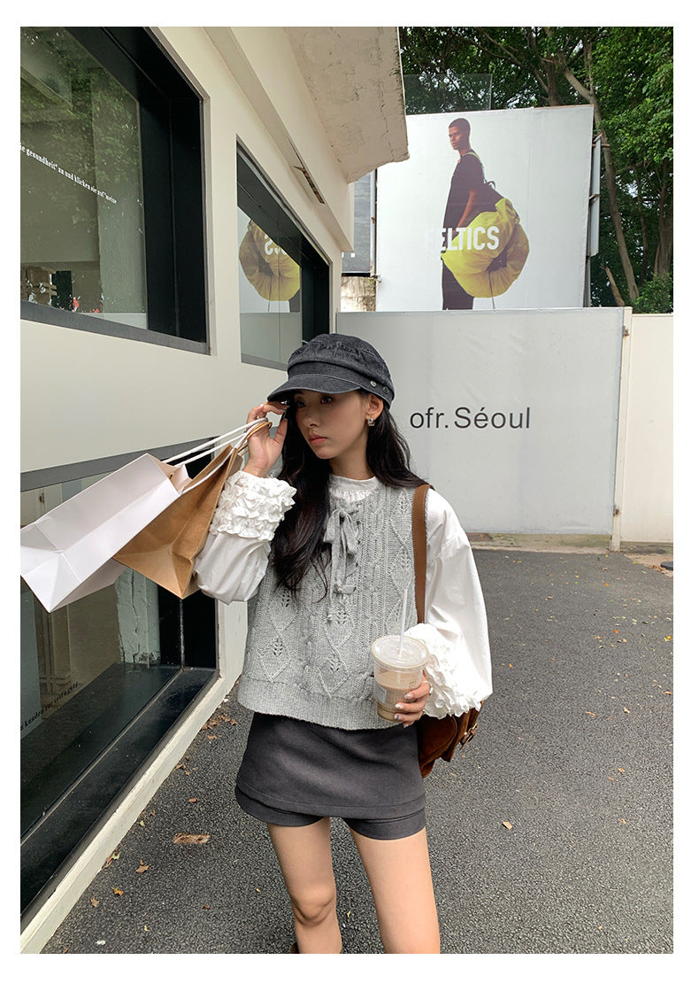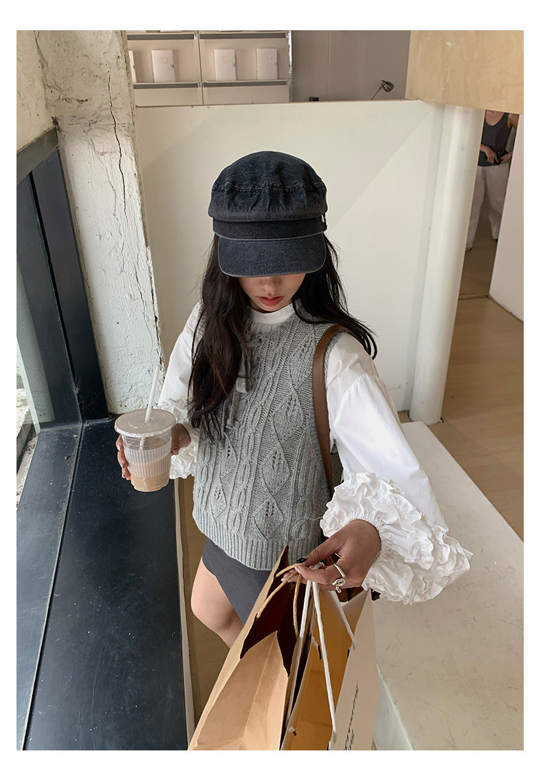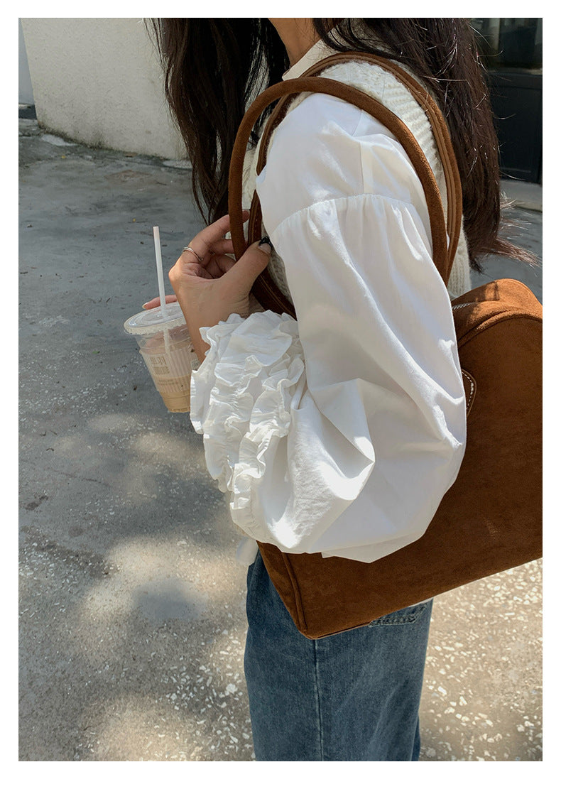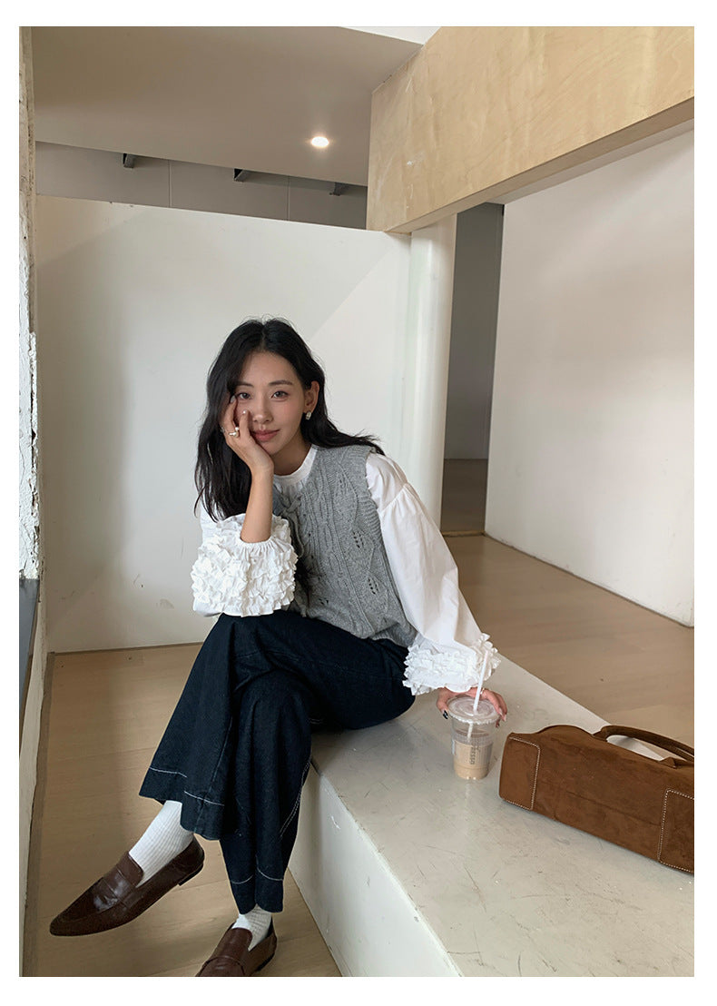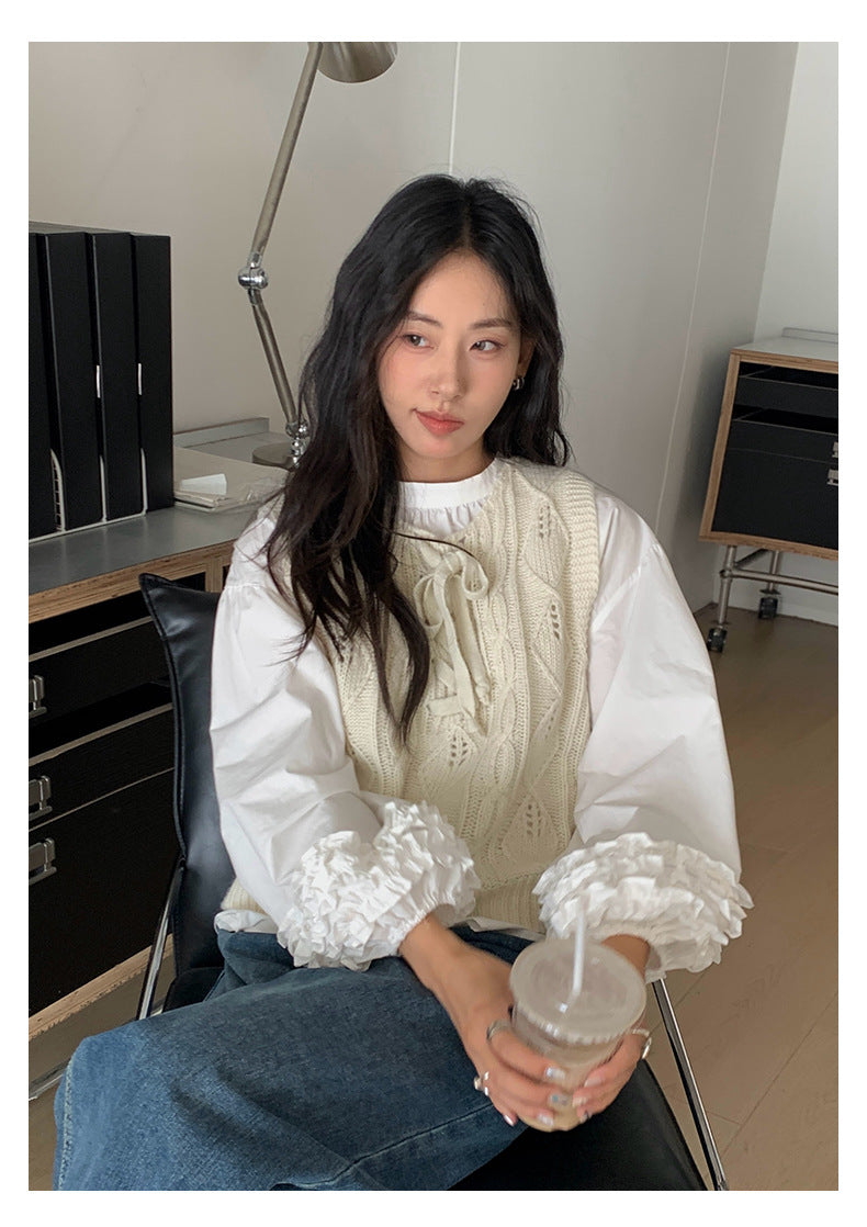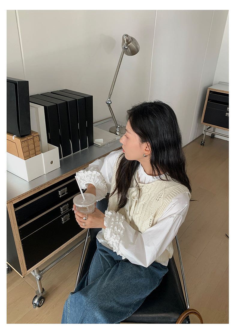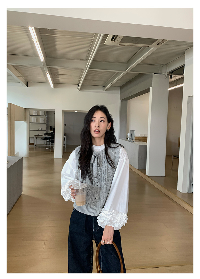 【H5415】實拍韓系早秋設計款棉質荷葉燈籠袖襯衫250909