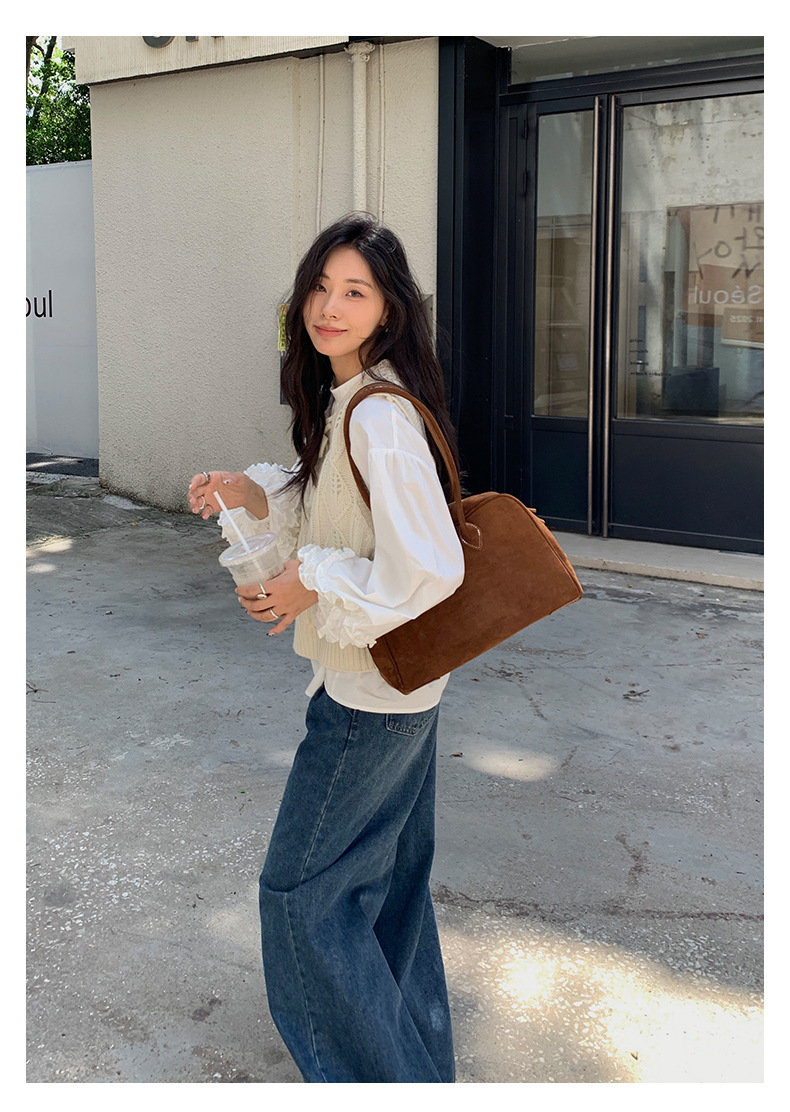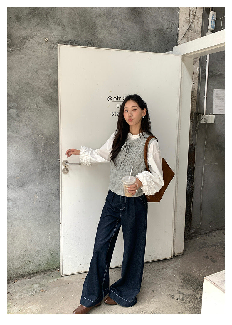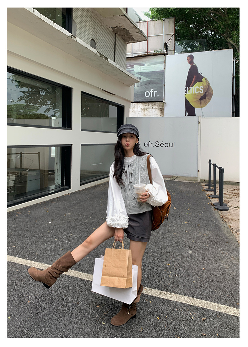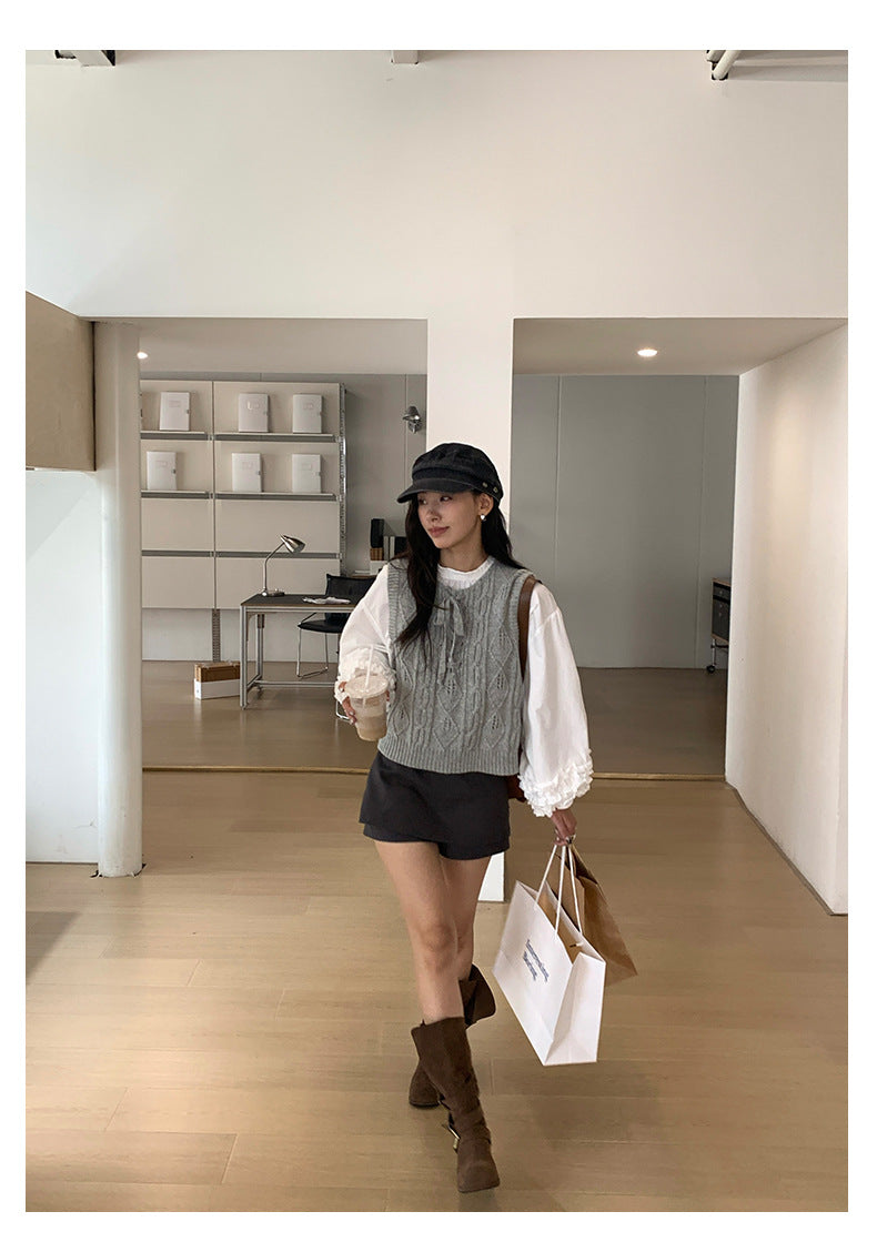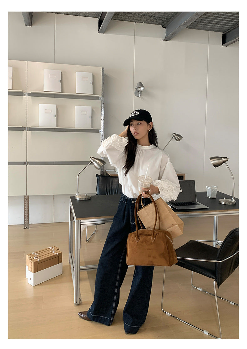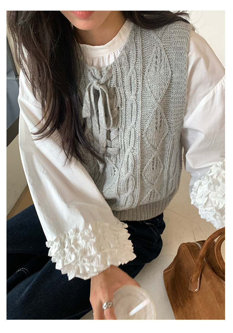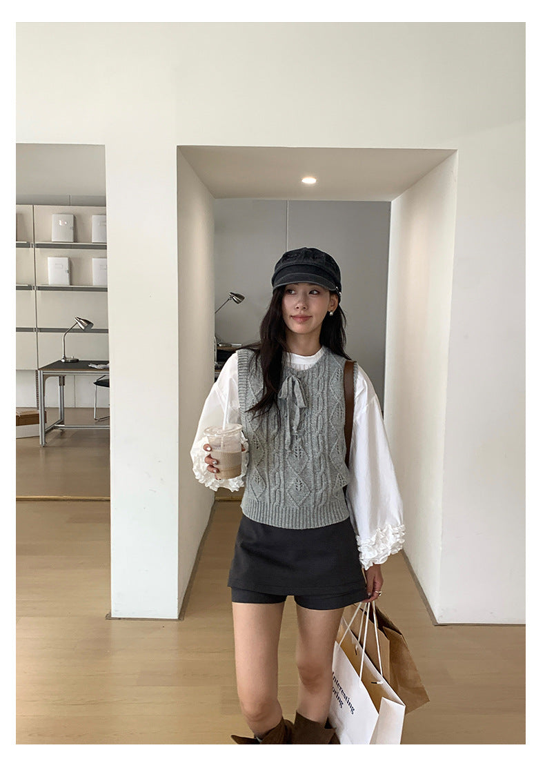 【H5415】實拍韓系早秋設計款棉質荷葉燈籠袖襯衫250909