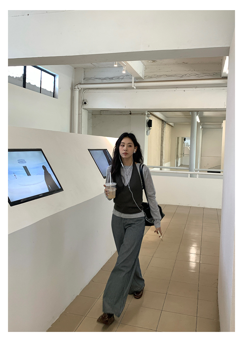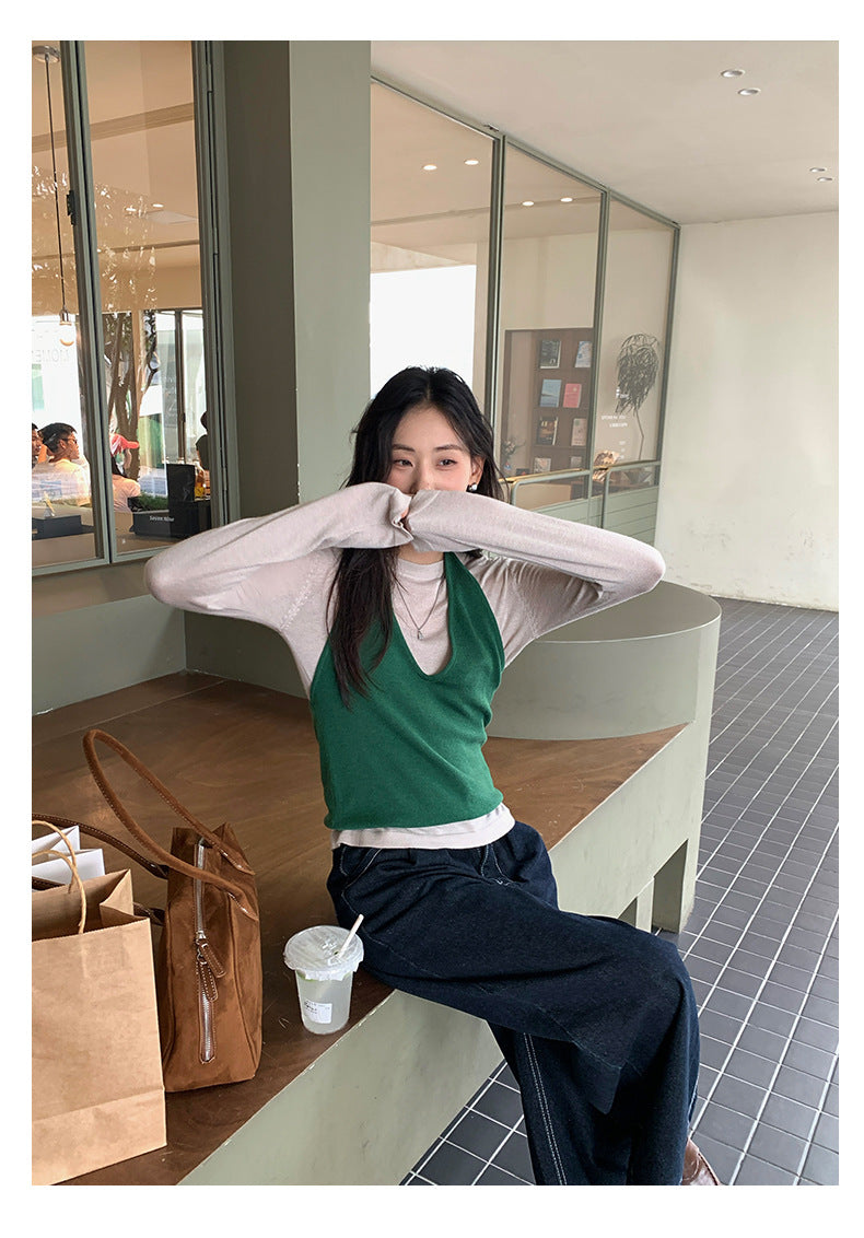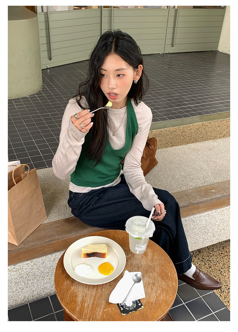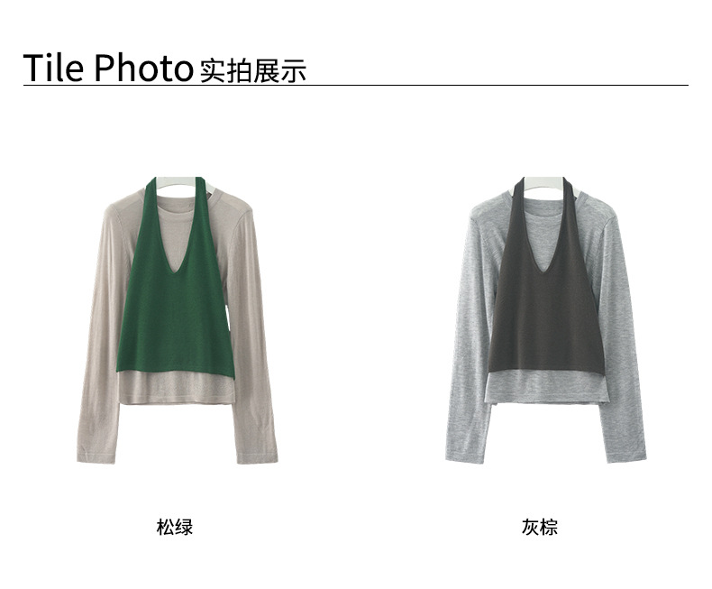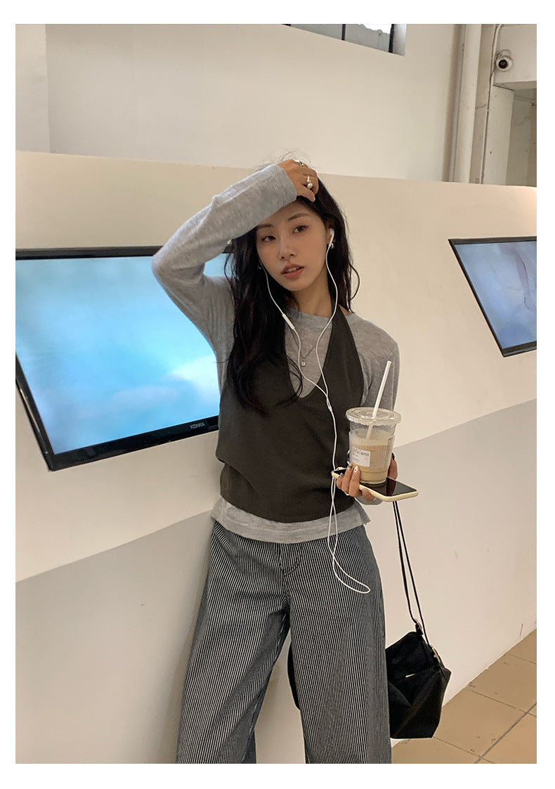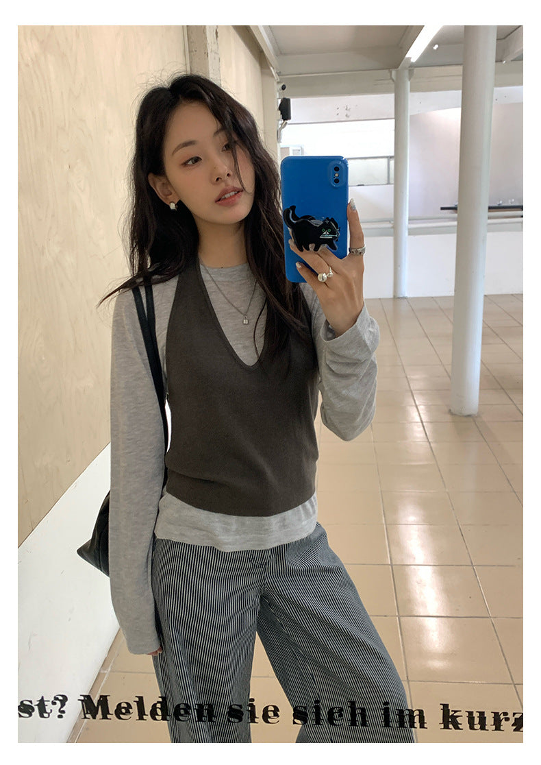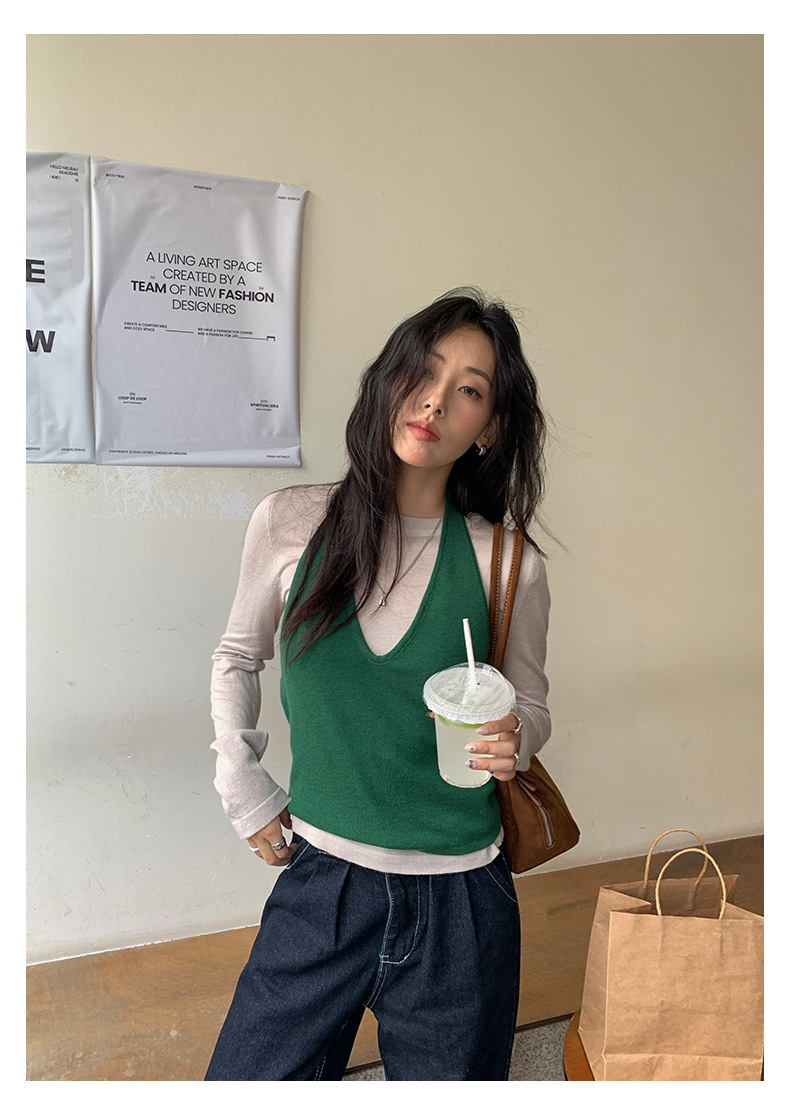 【H5416】實拍韓系氛圍套裝 針織背心+長袖針織衫250909