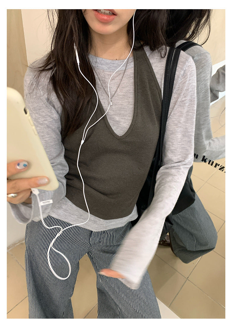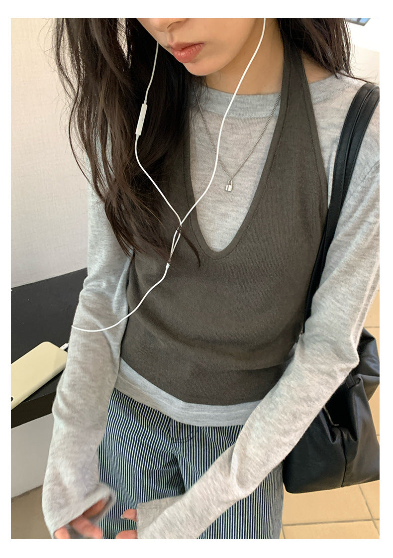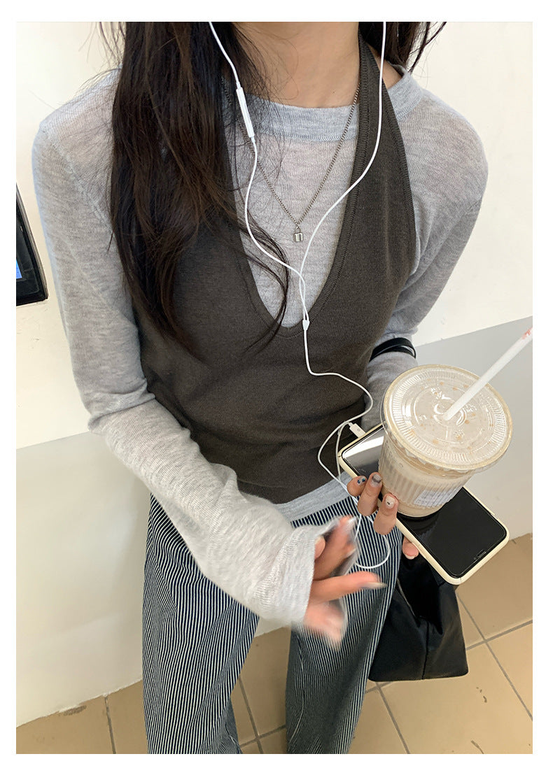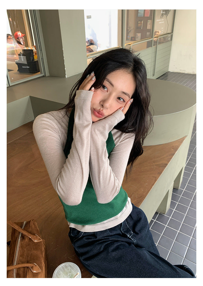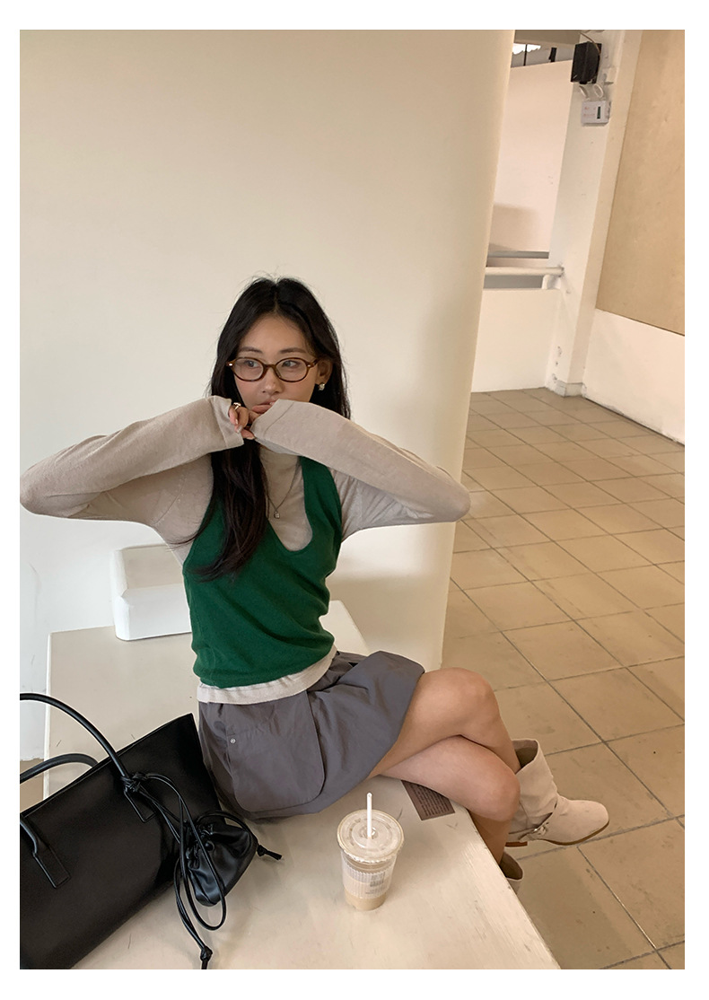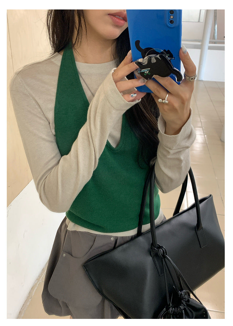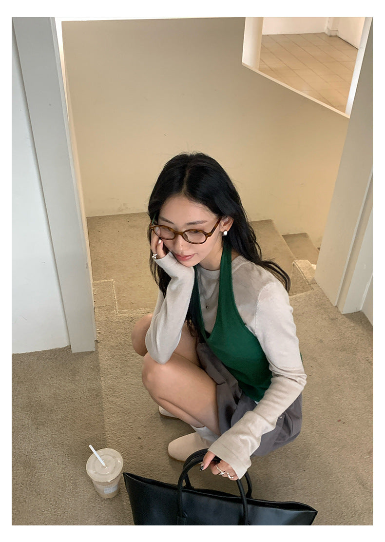 【H5416】實拍韓系氛圍套裝 針織背心+長袖針織衫250909