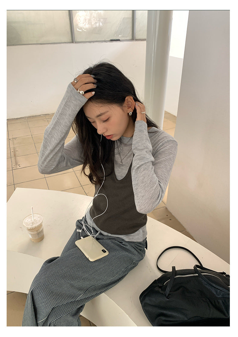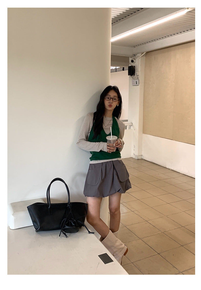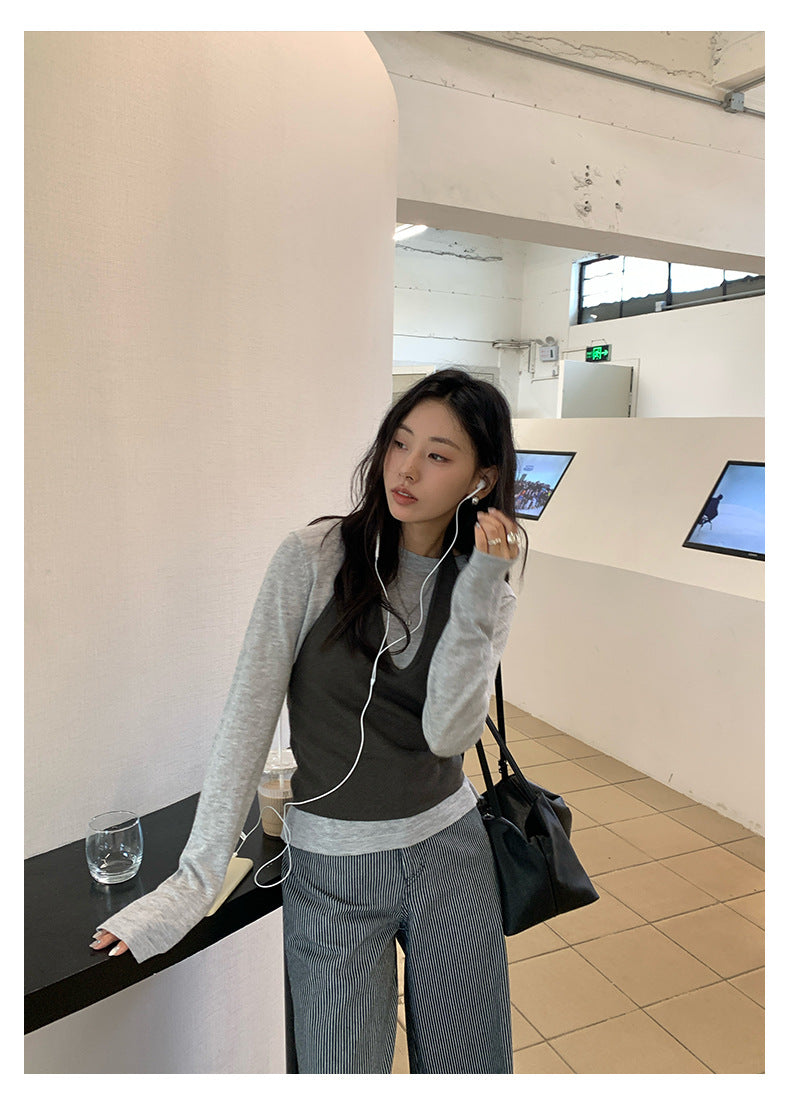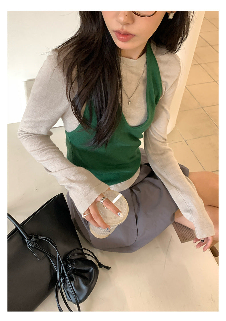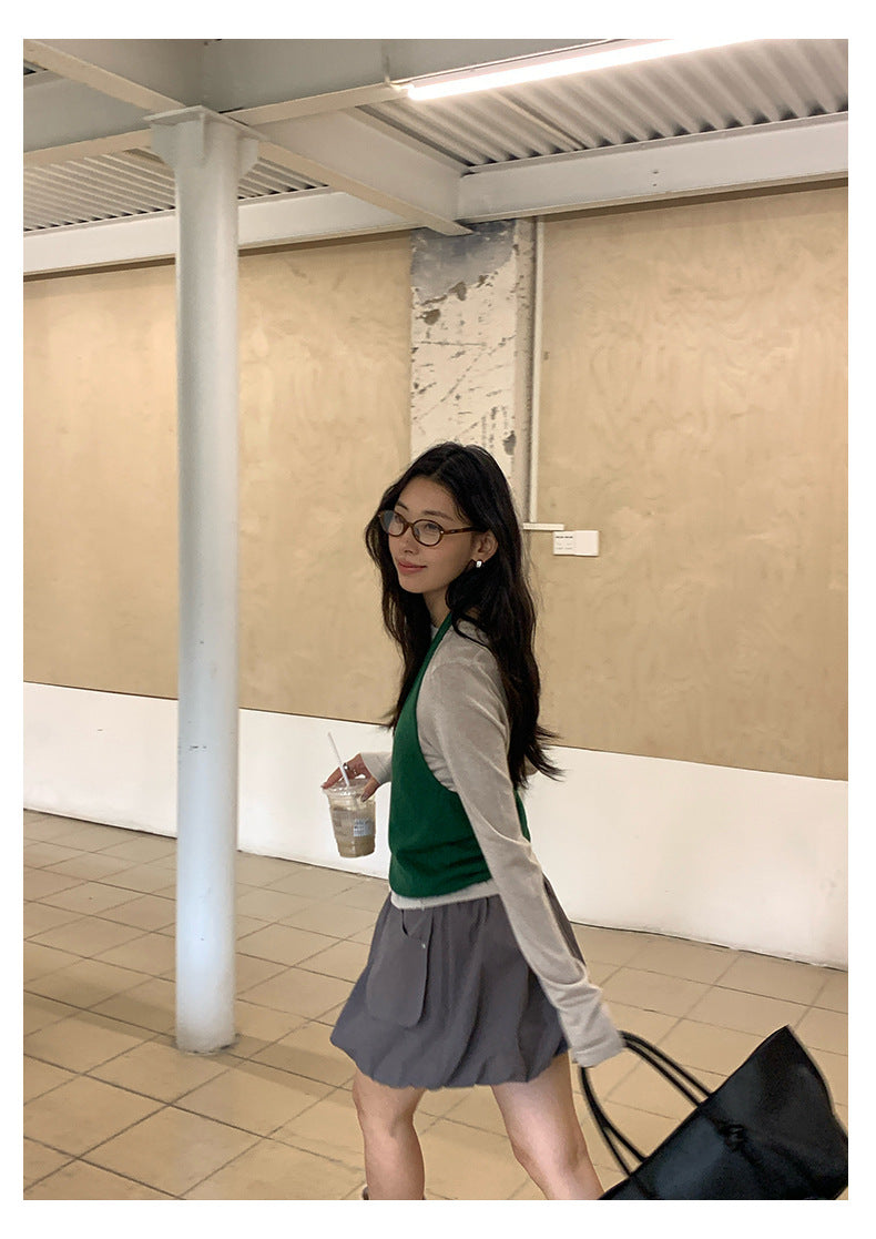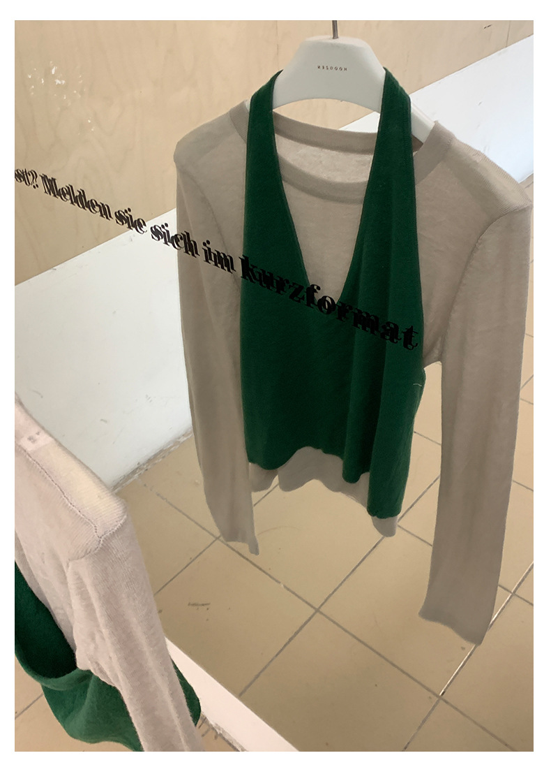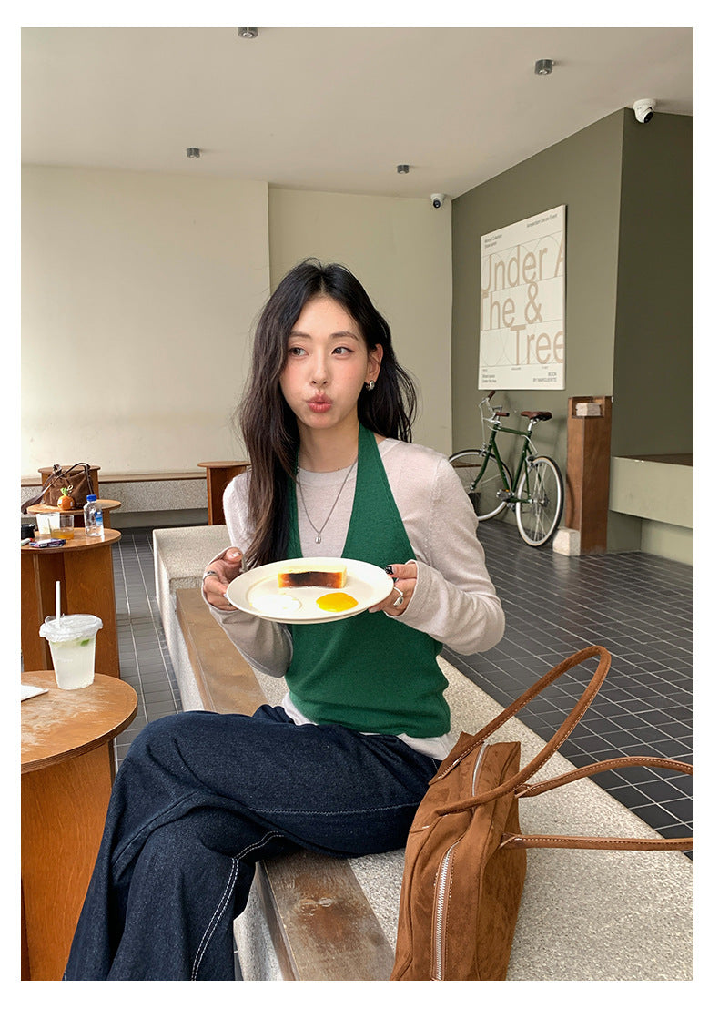 【H5416】實拍韓系氛圍套裝 針織背心+長袖針織衫250909