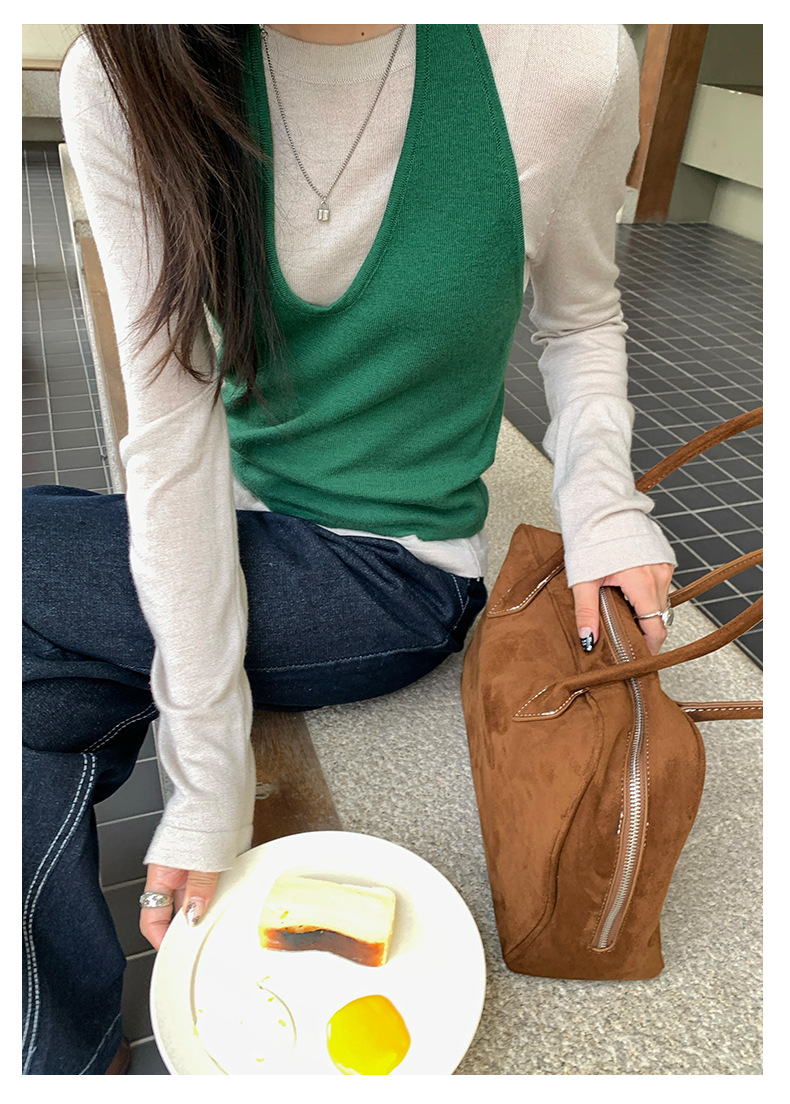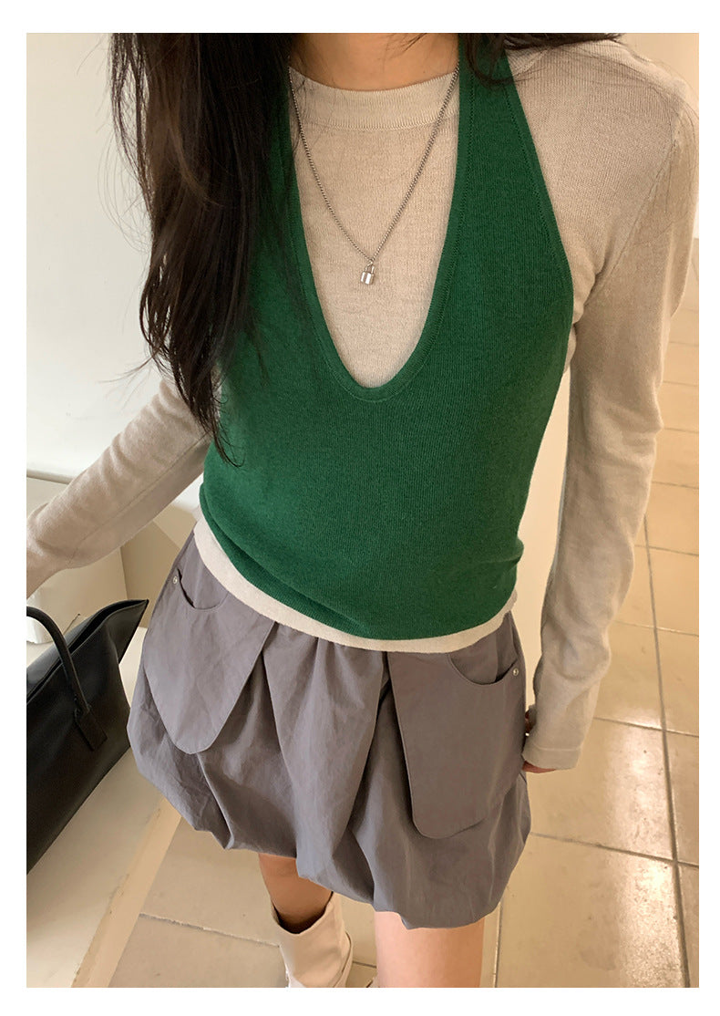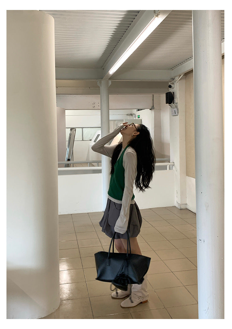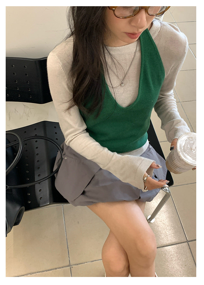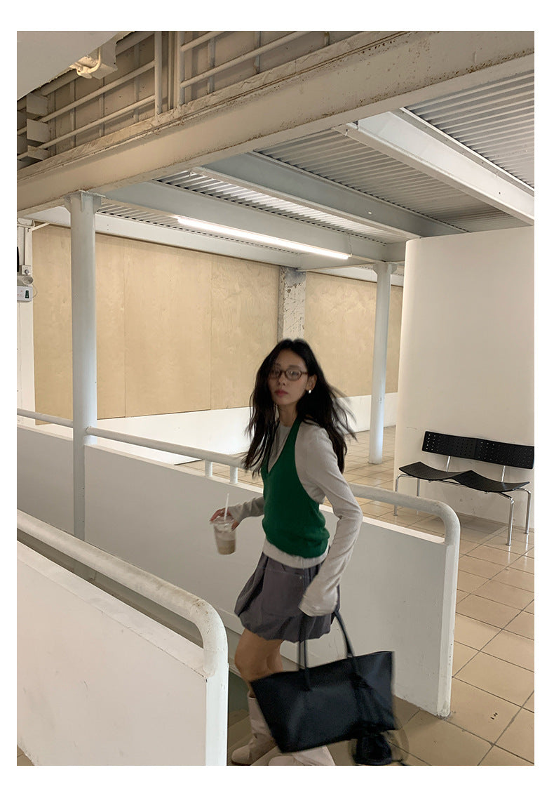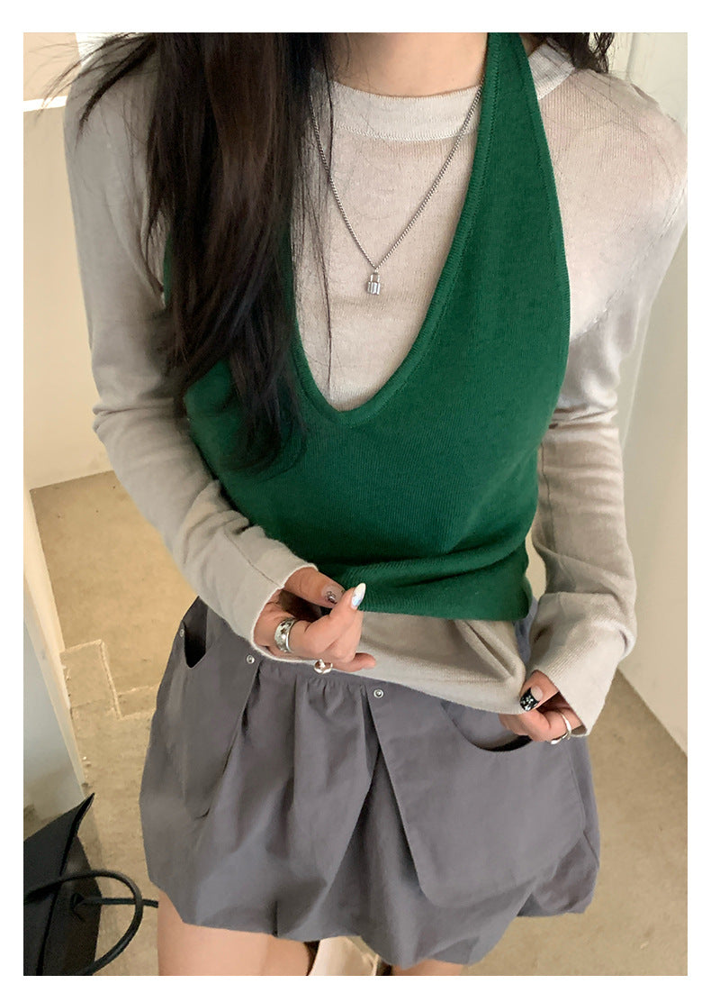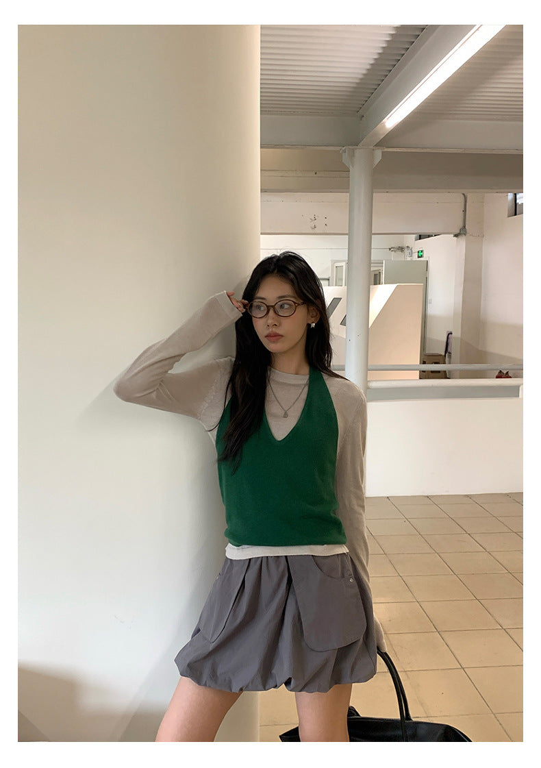 【H5416】實拍韓系氛圍套裝 針織背心+長袖針織衫250909