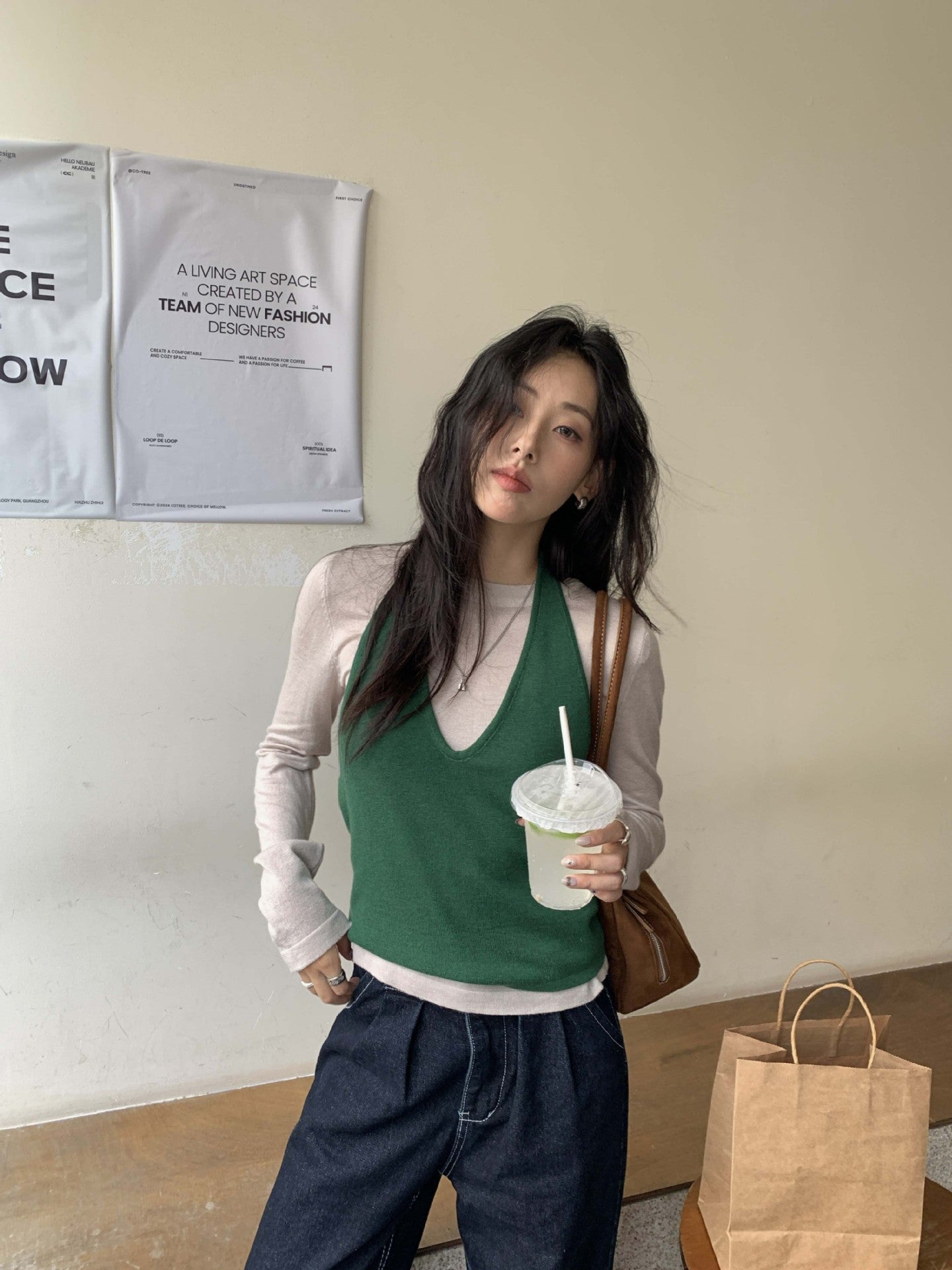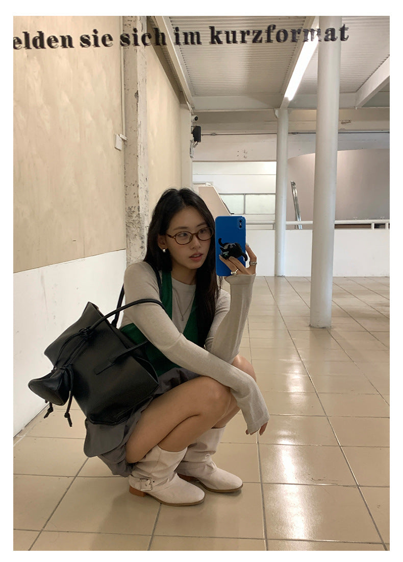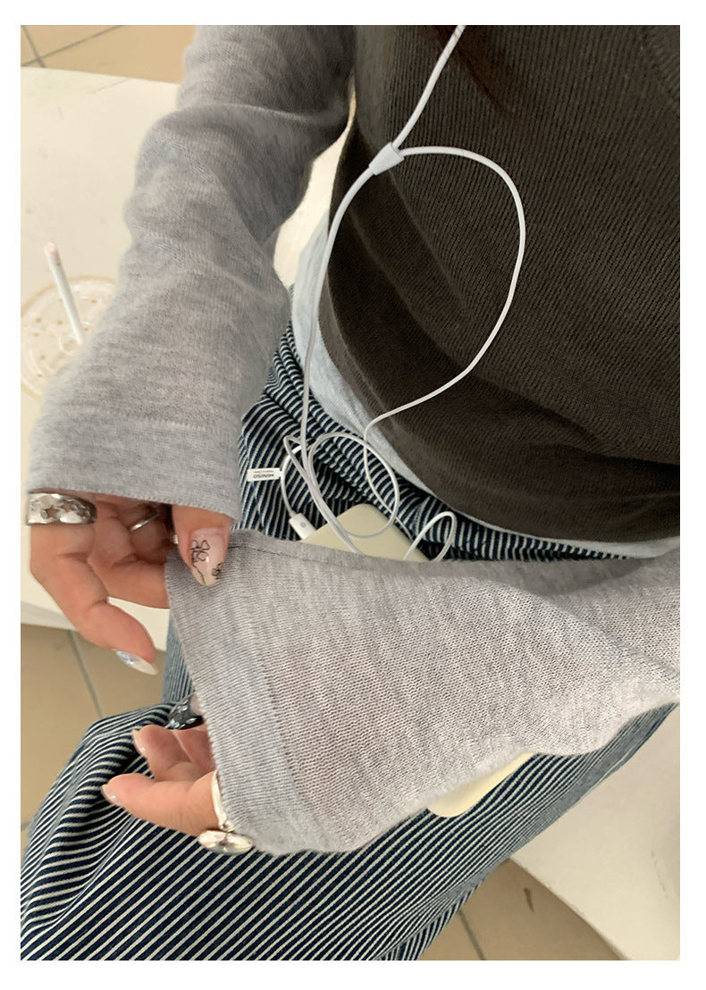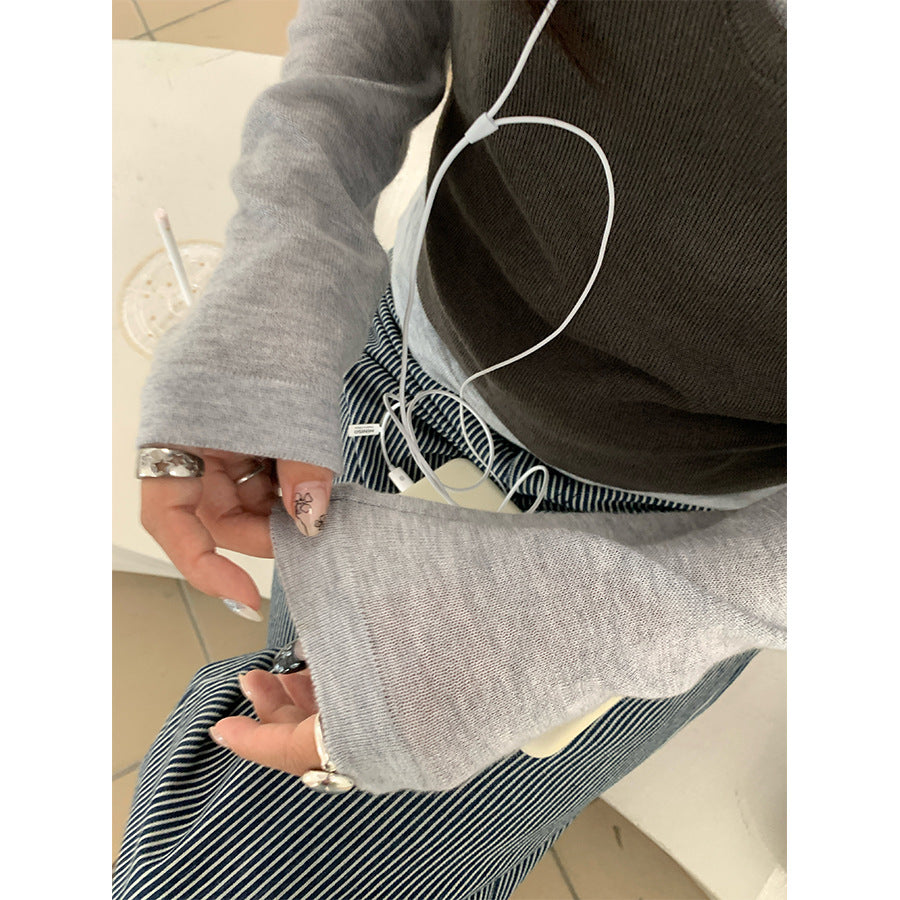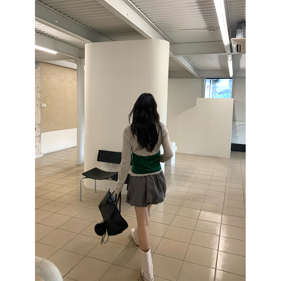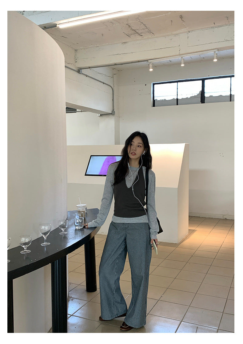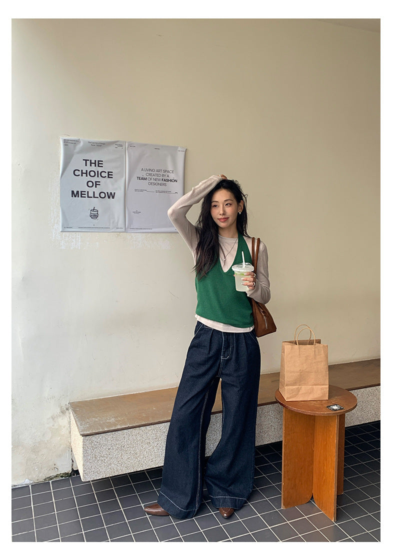 【H5416】實拍韓系氛圍套裝 針織背心+長袖針織衫250909