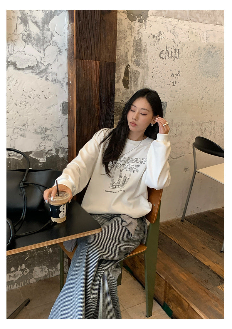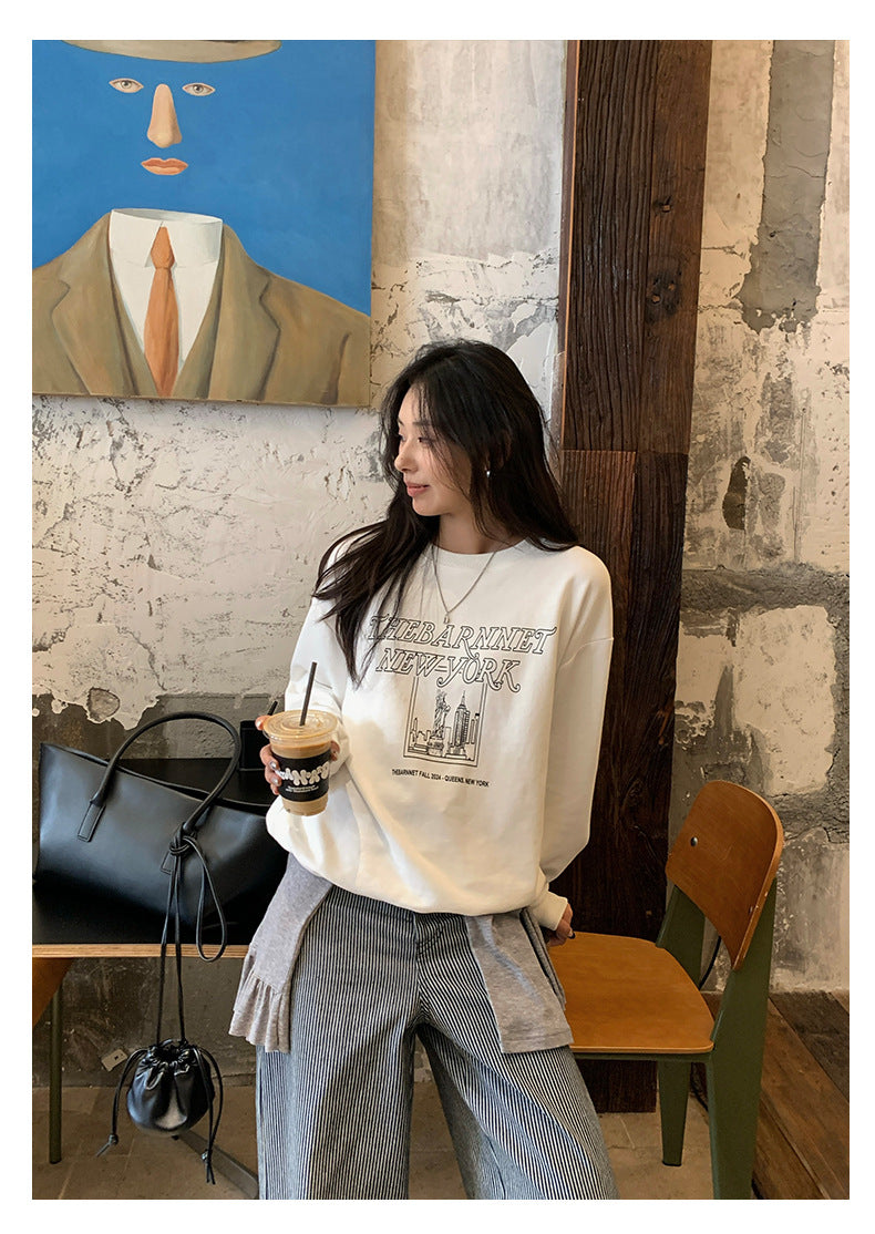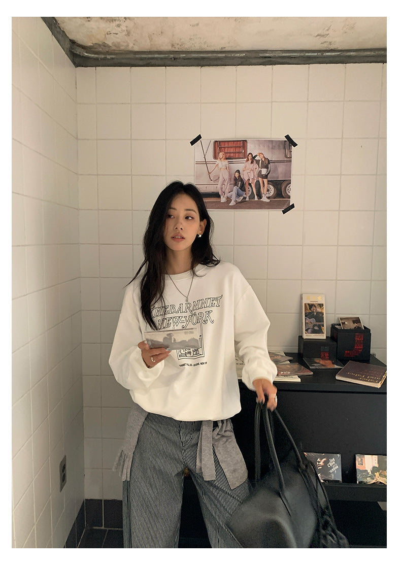 【H5417】實拍早秋美式復古寬鬆休閒衞衣250909
