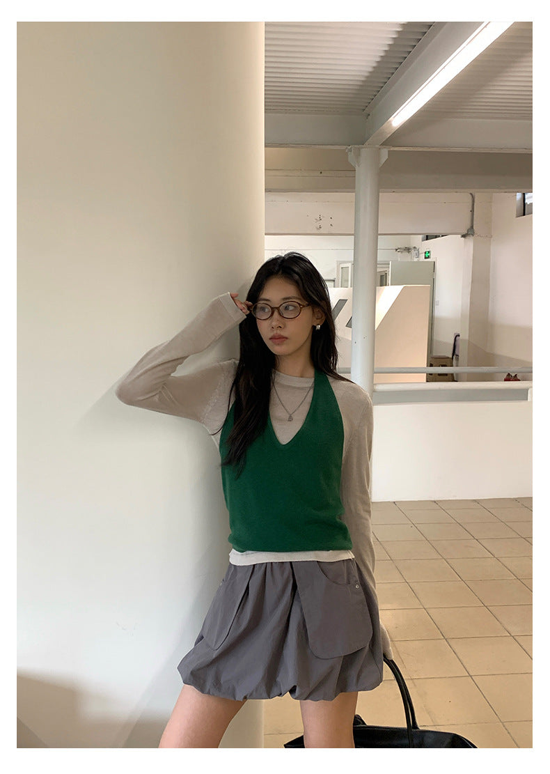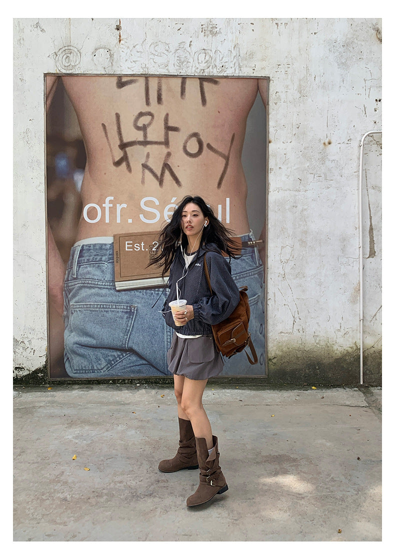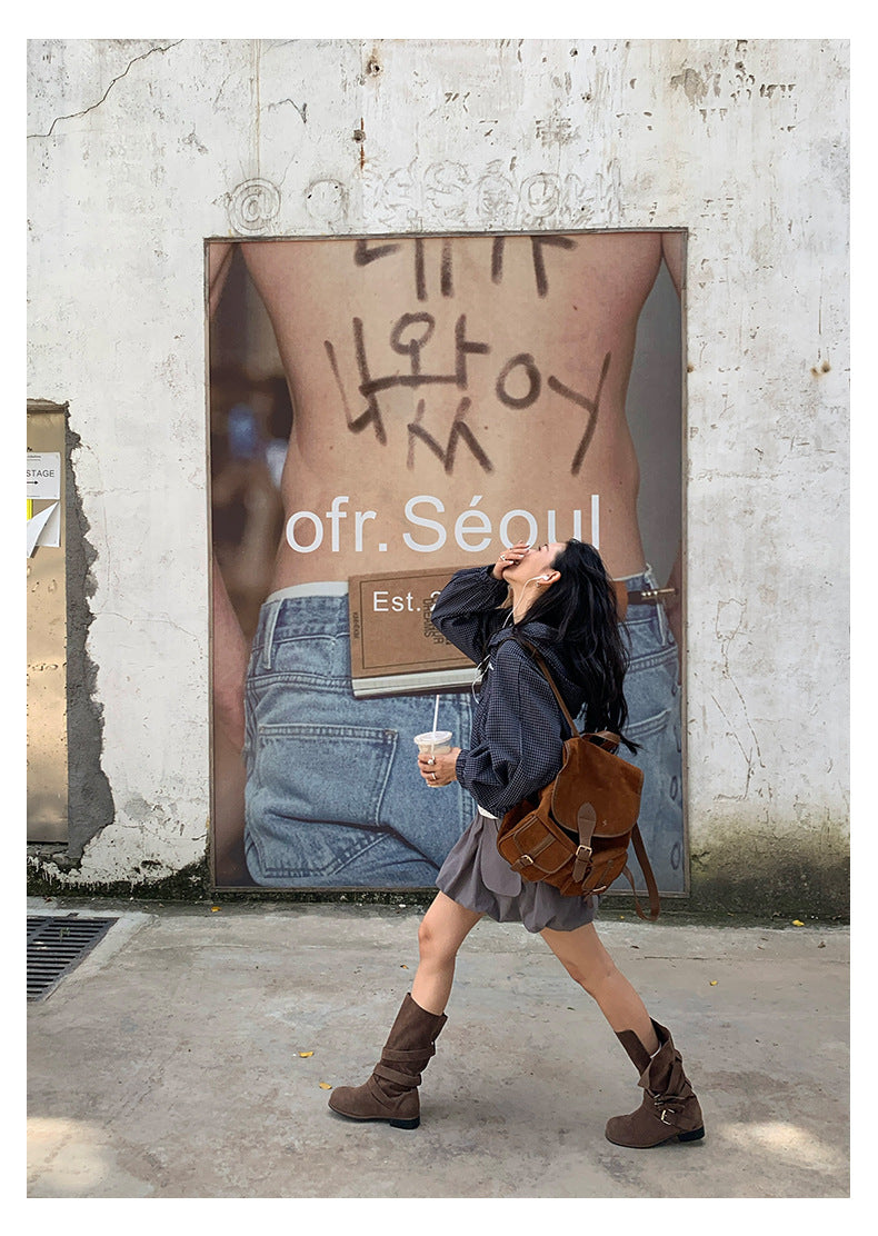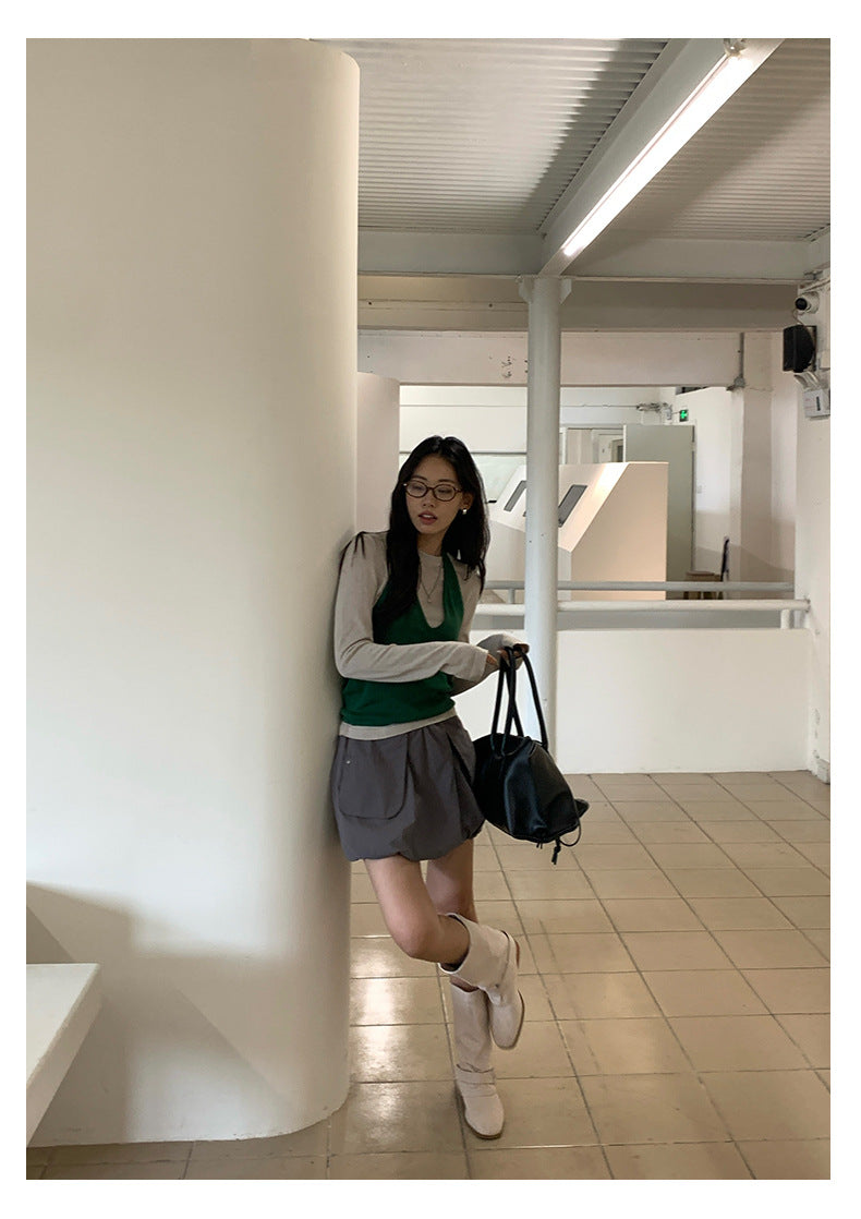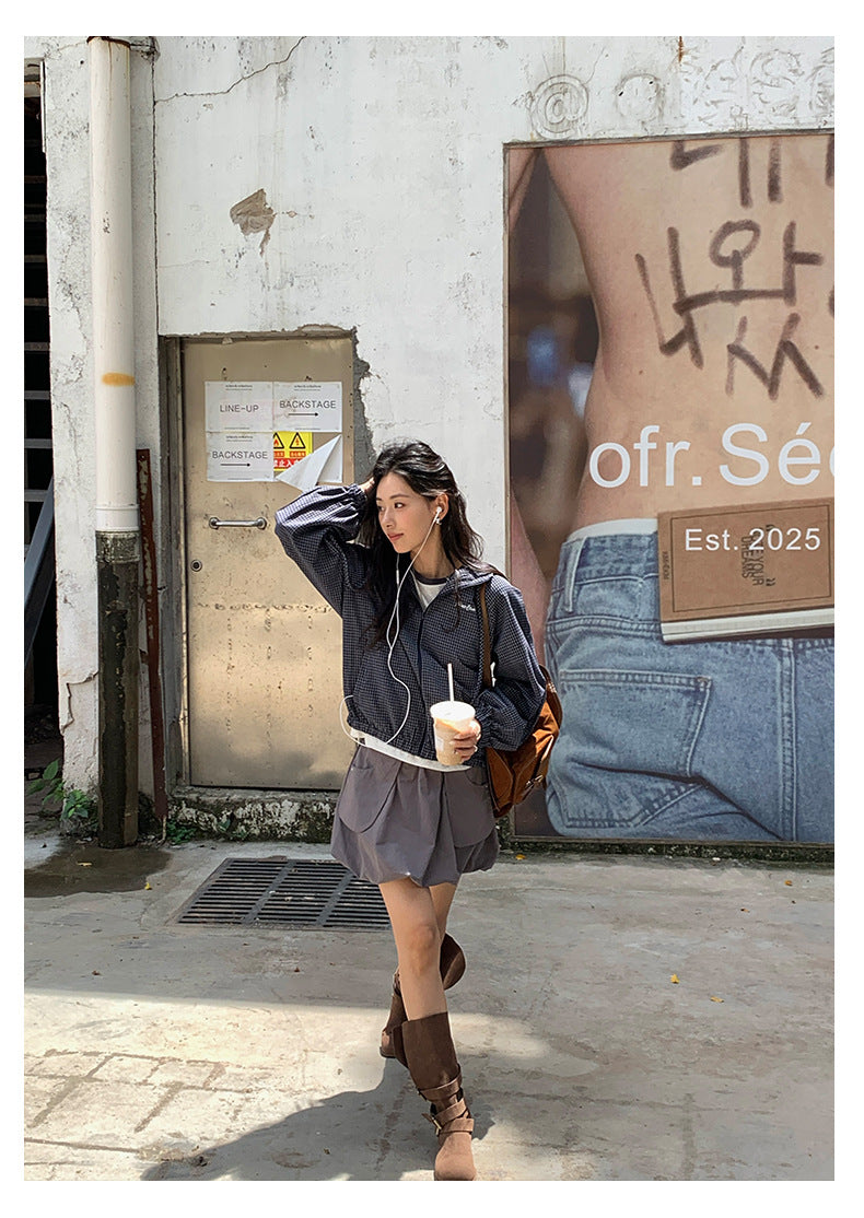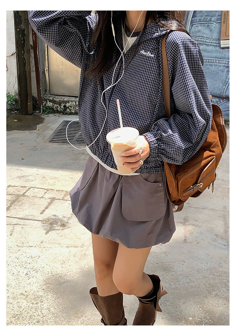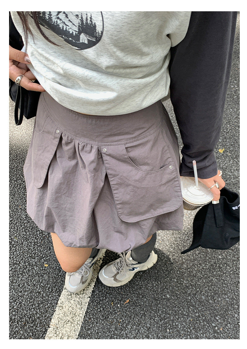 【H5419】實拍韓系美少女工裝褶皺高腰花苞裙250909