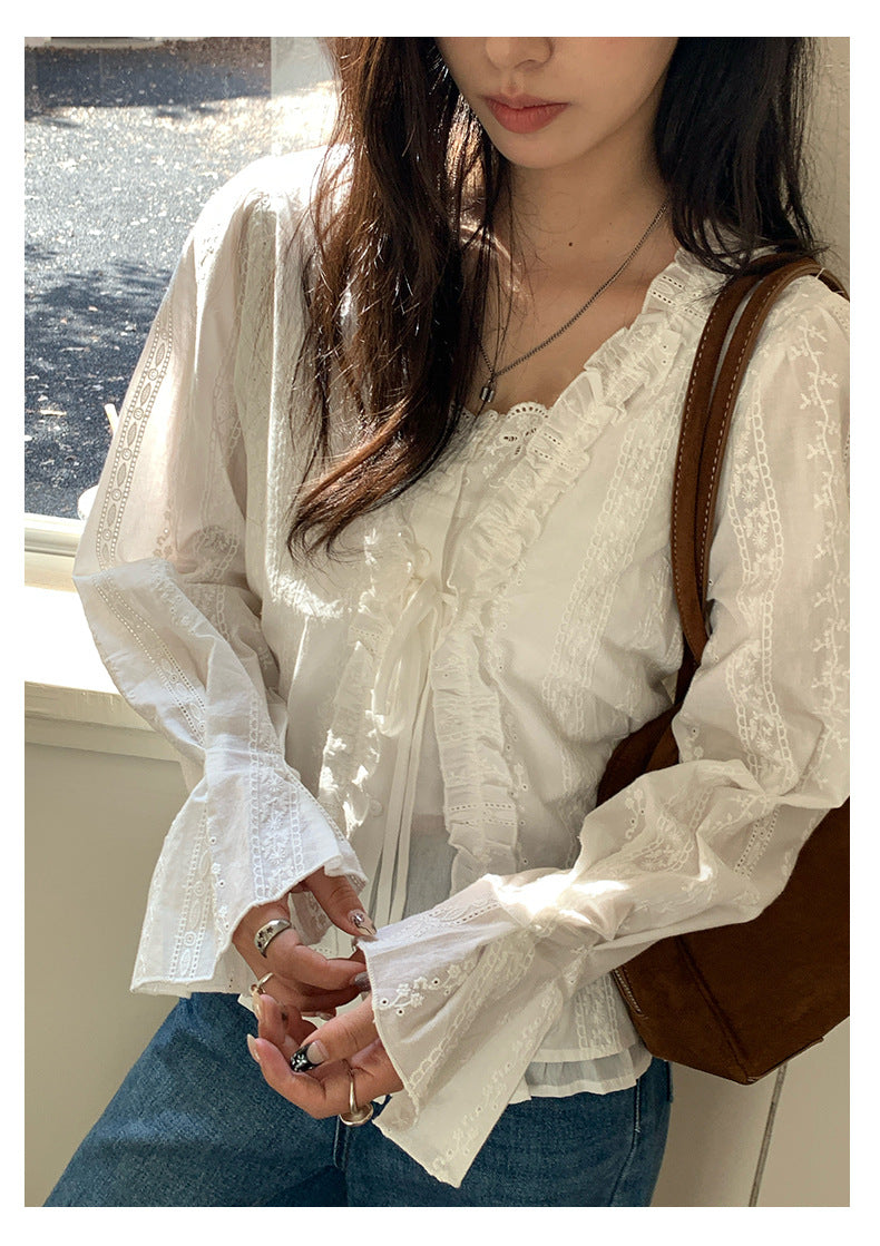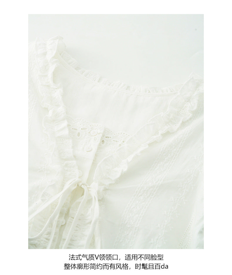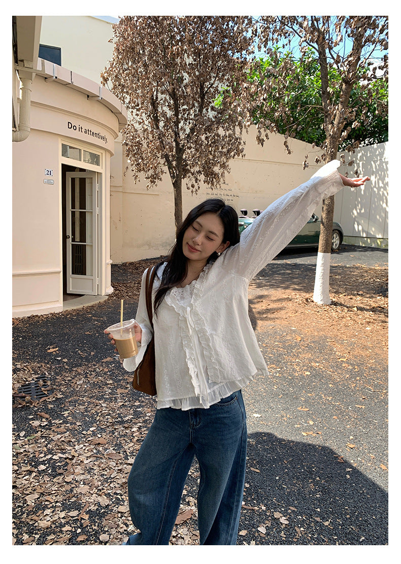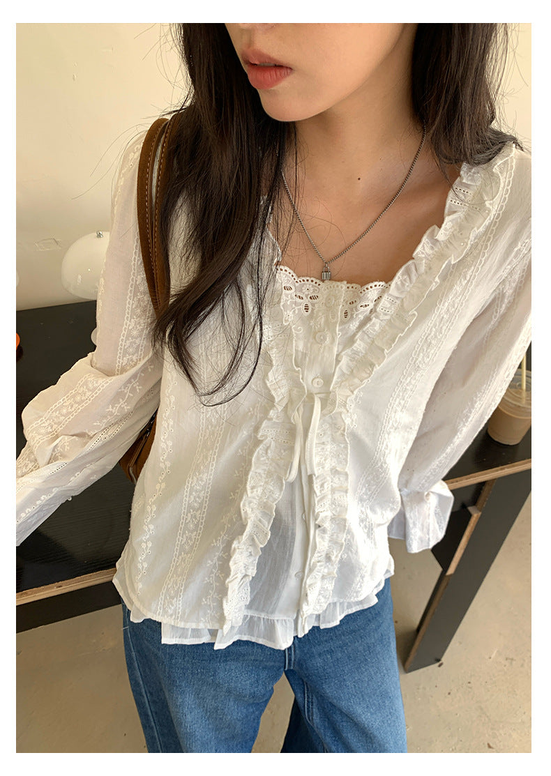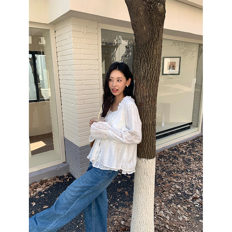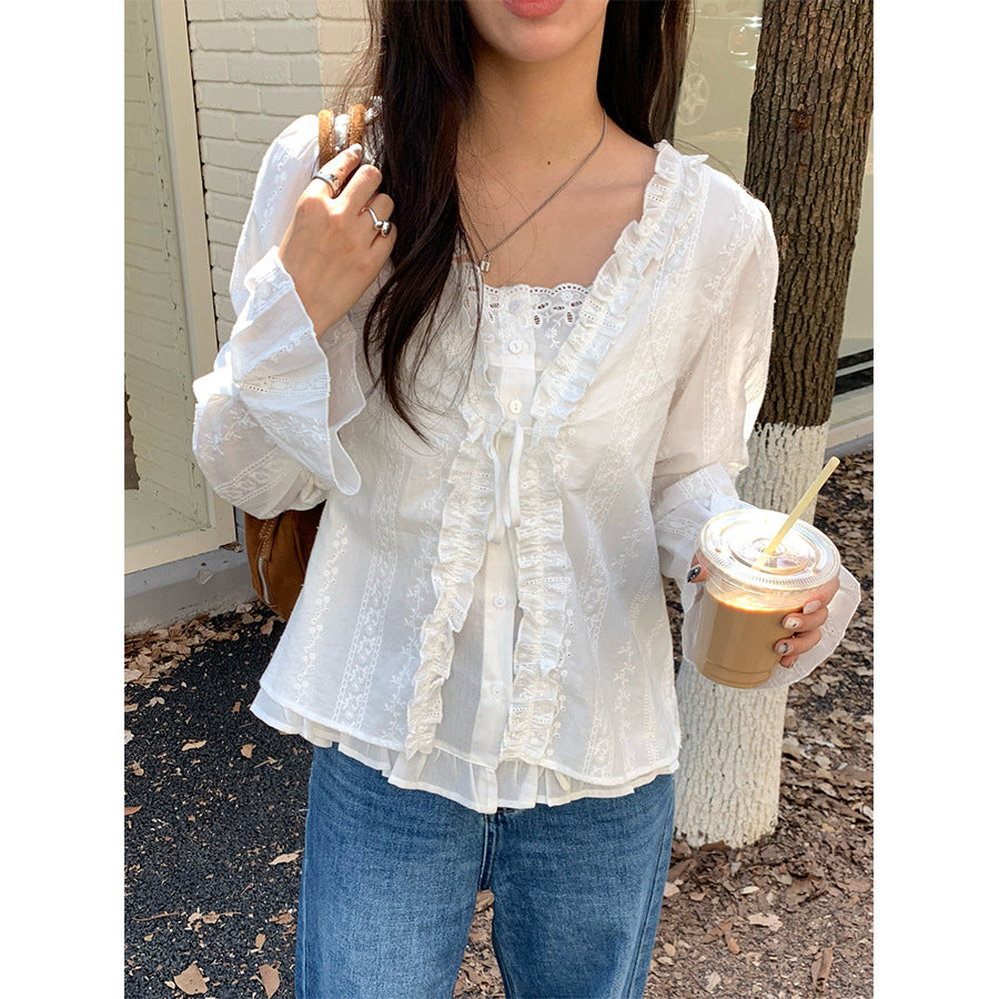 【H5421】實拍早秋氣質小荷葉刺繡棉質襯衫250909