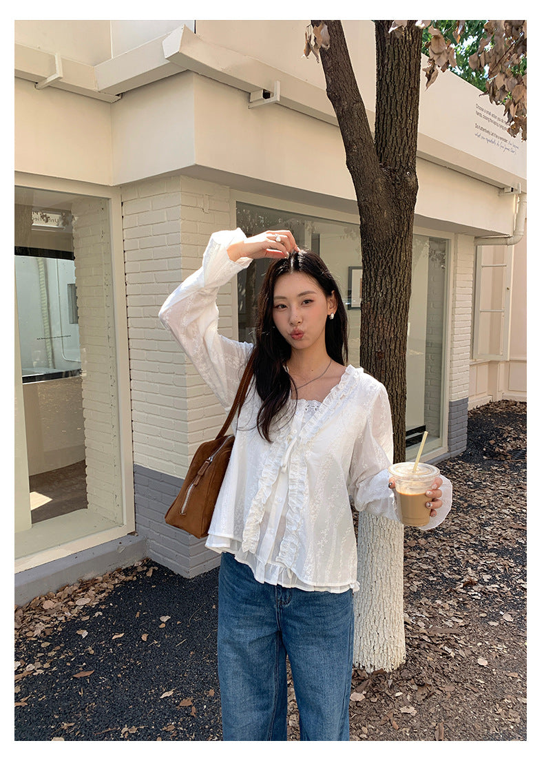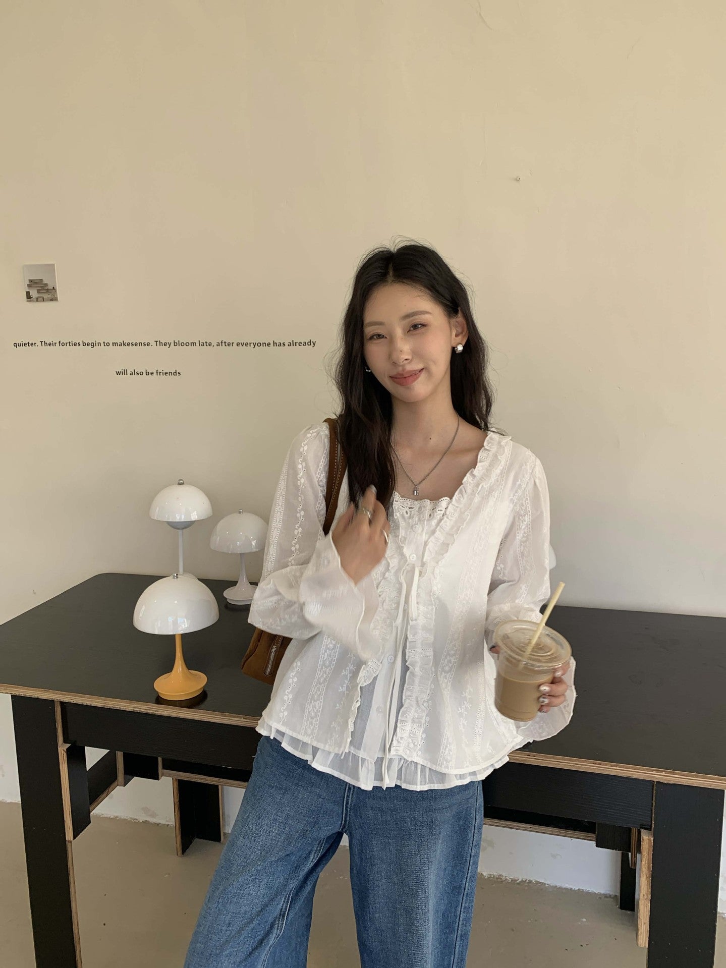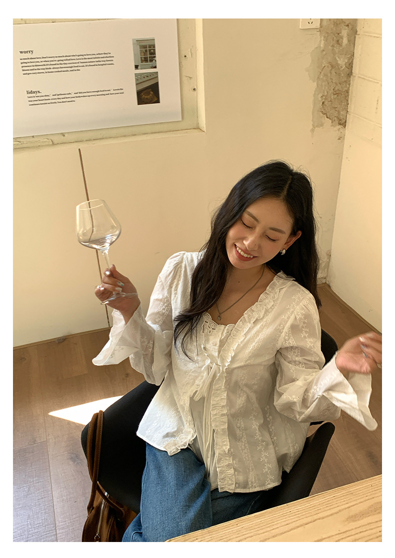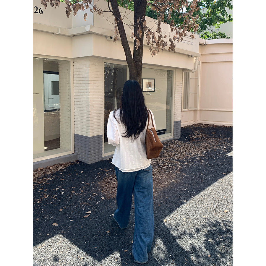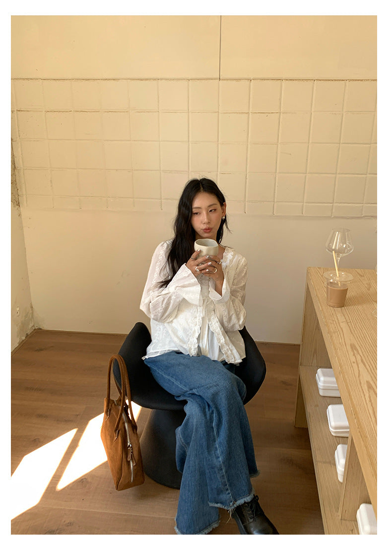 【H5421】實拍早秋氣質小荷葉刺繡棉質襯衫250909