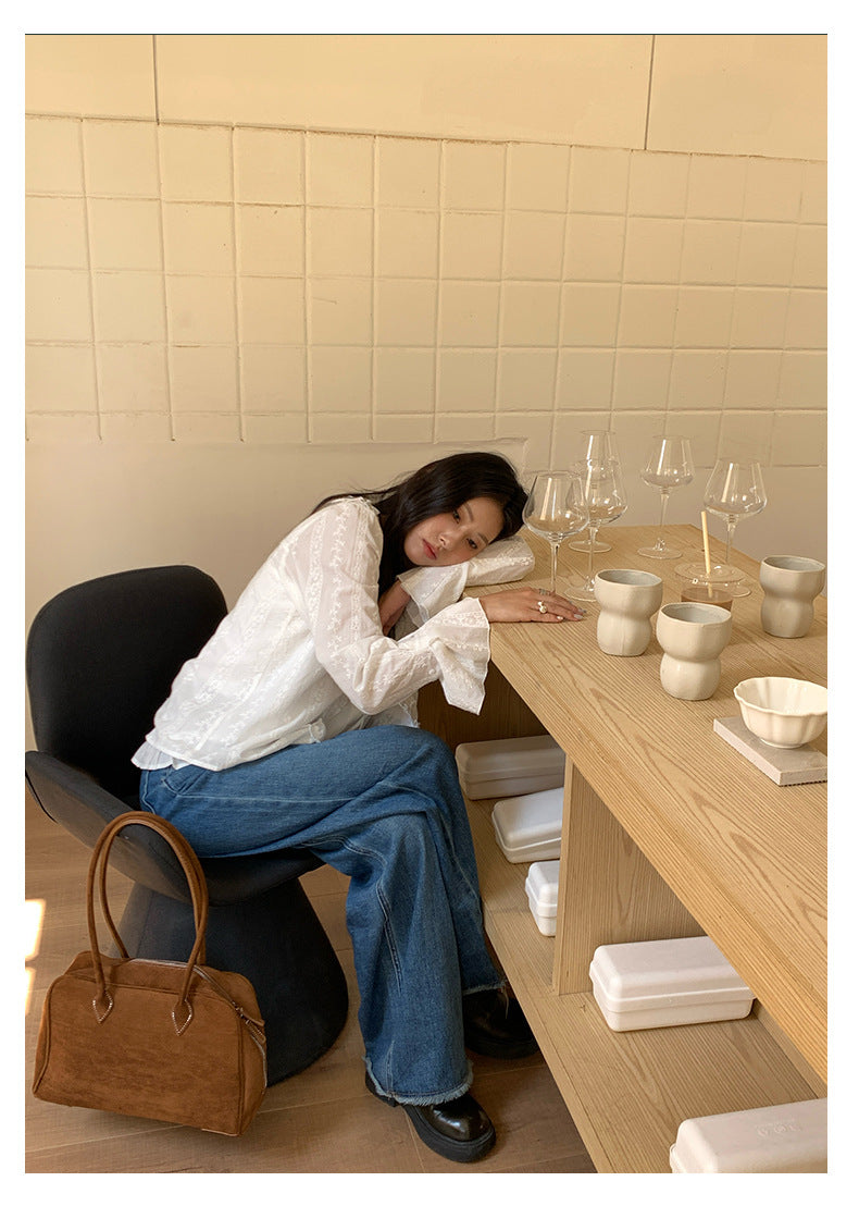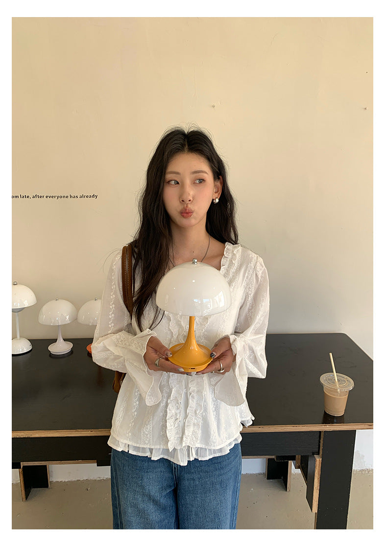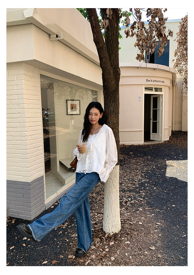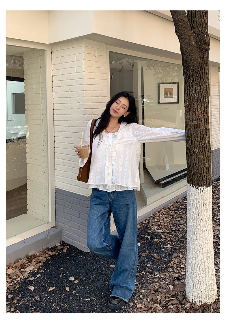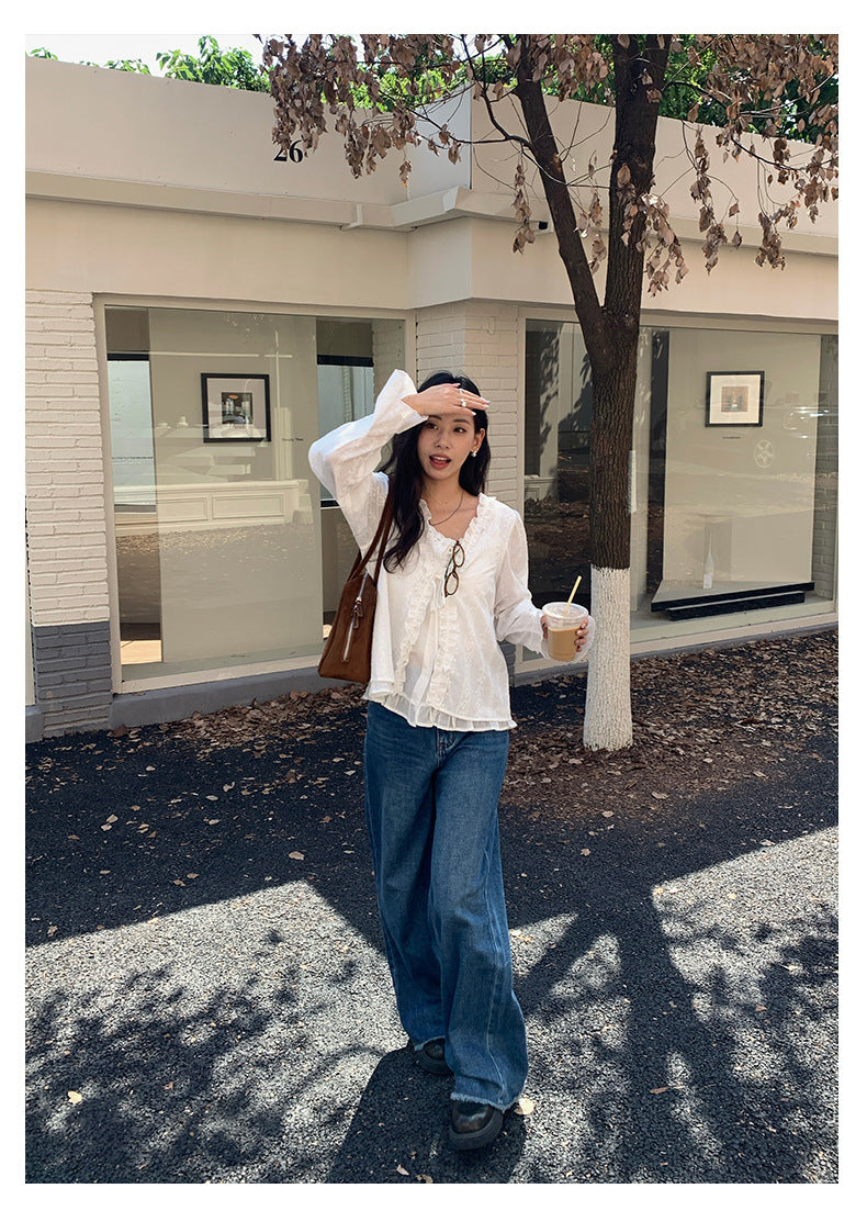 【H5421】實拍早秋氣質小荷葉刺繡棉質襯衫250909