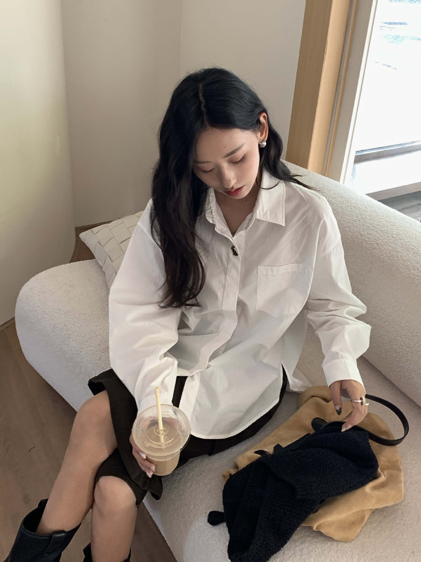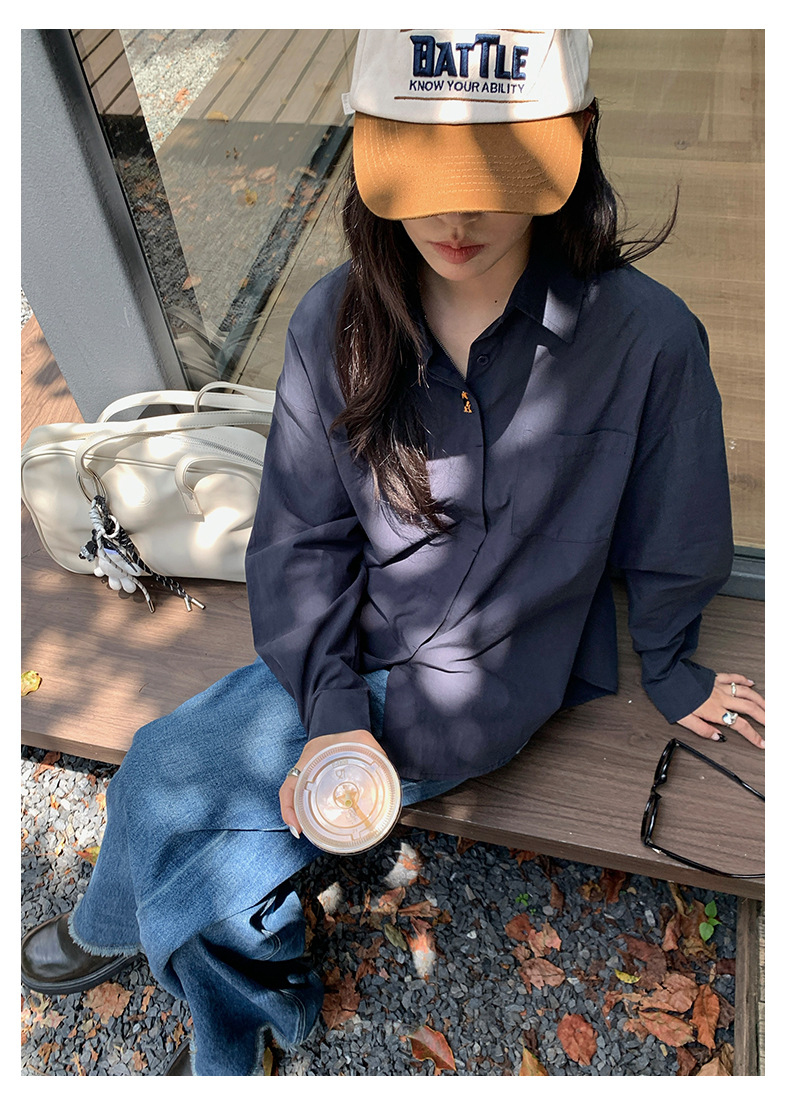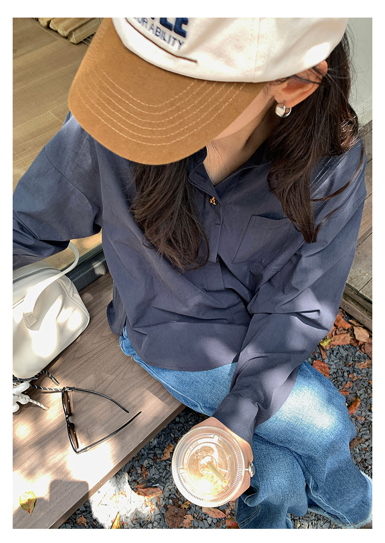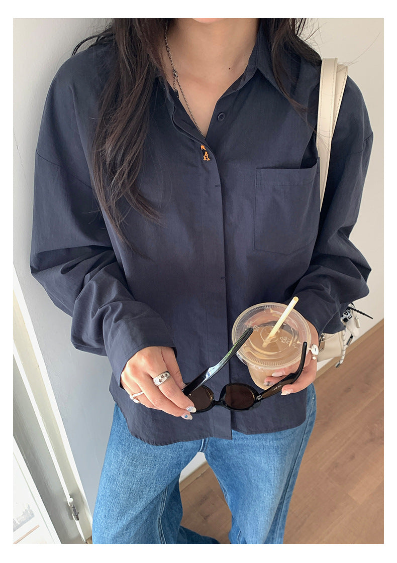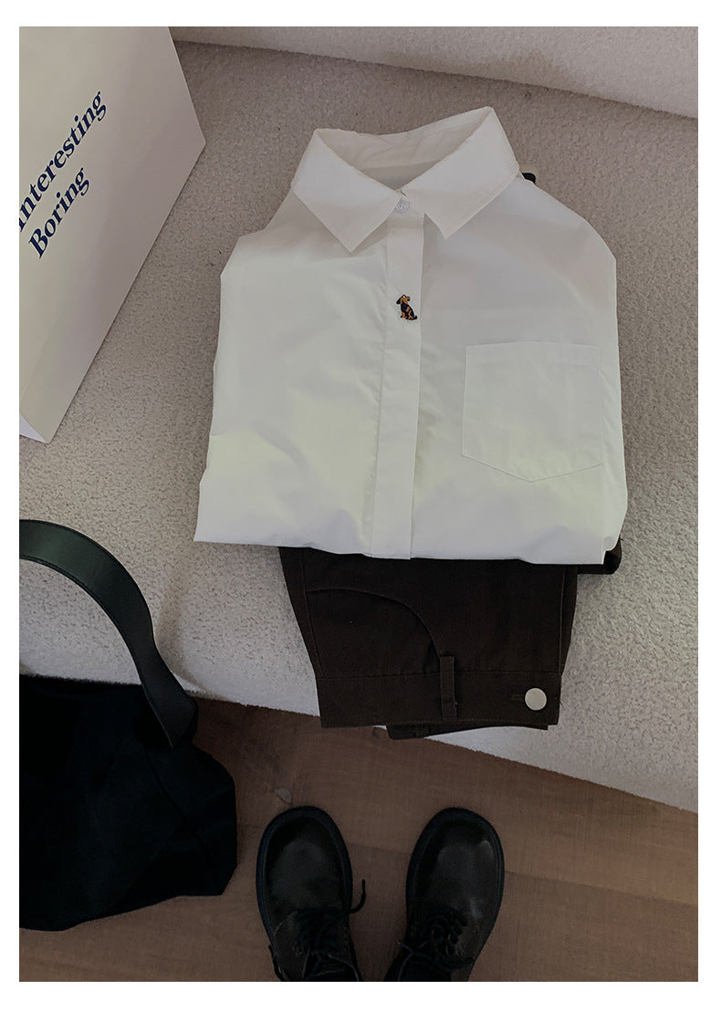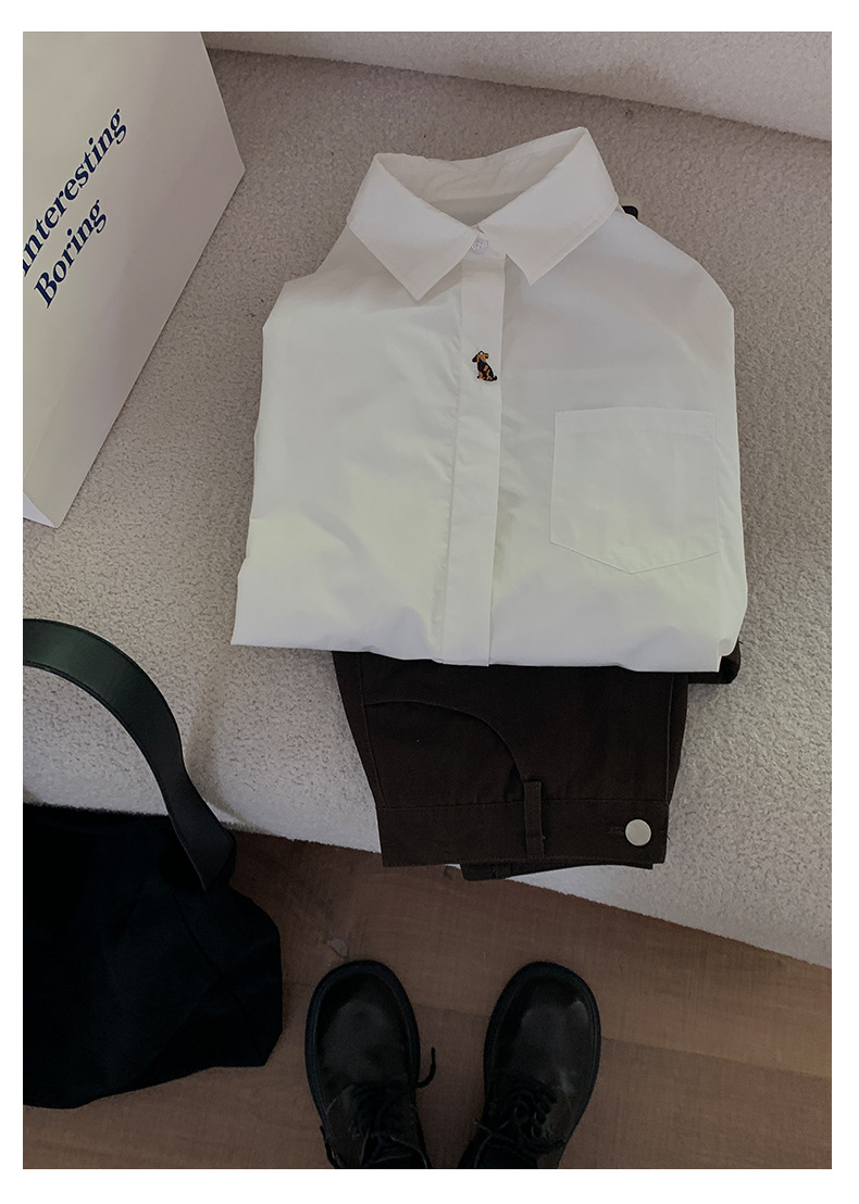 【H5422】實拍法式前襟小刺繡長袖襯衫250909