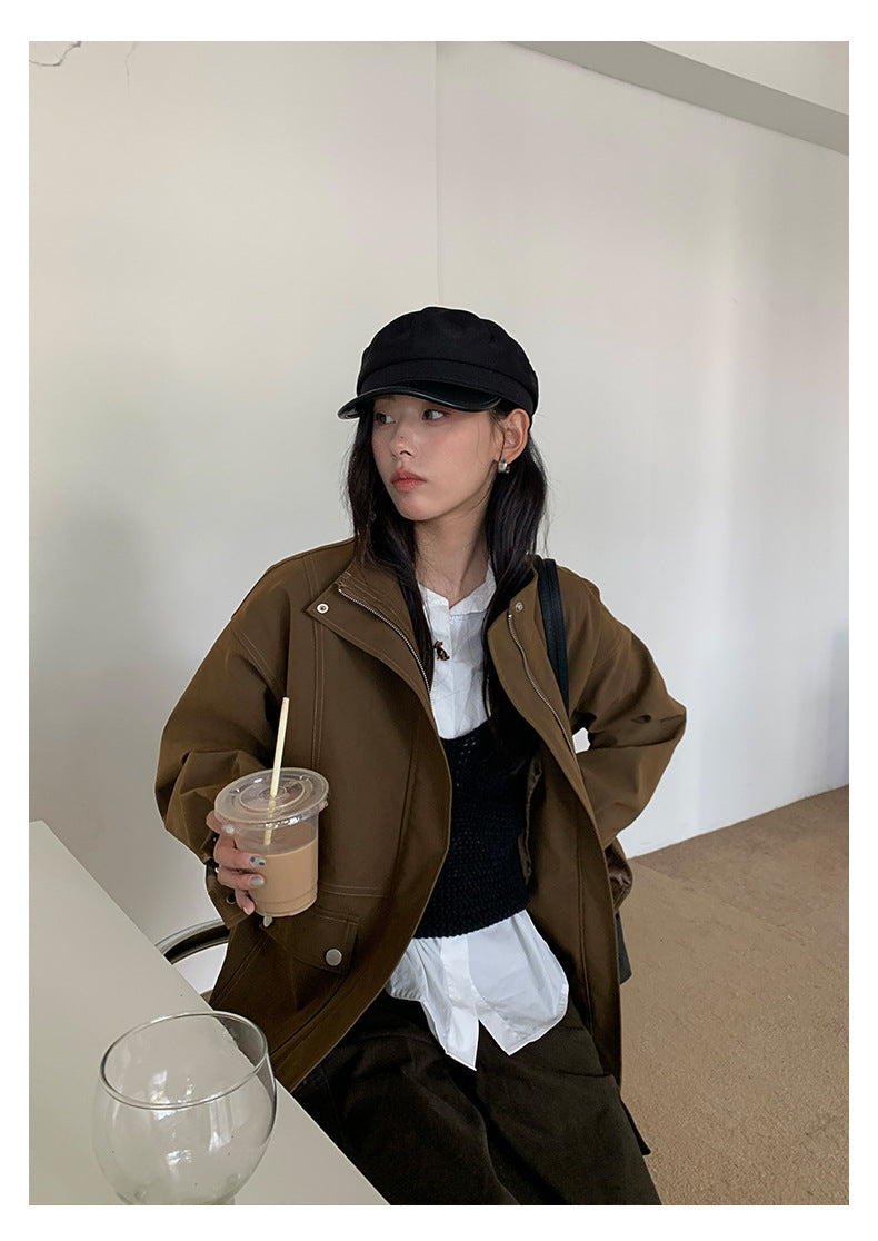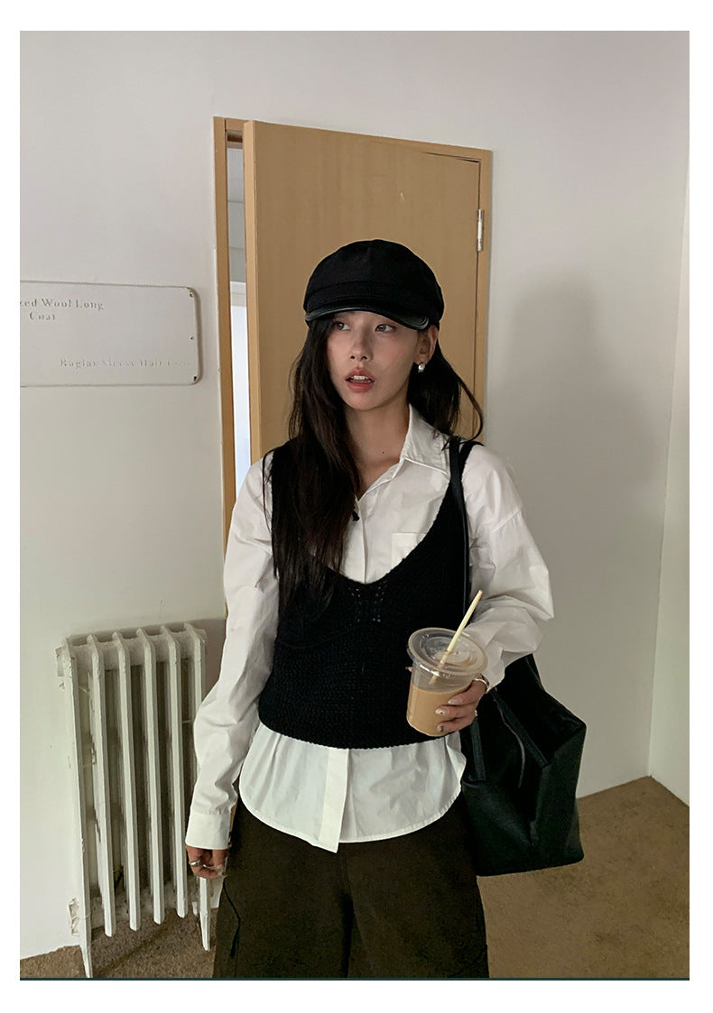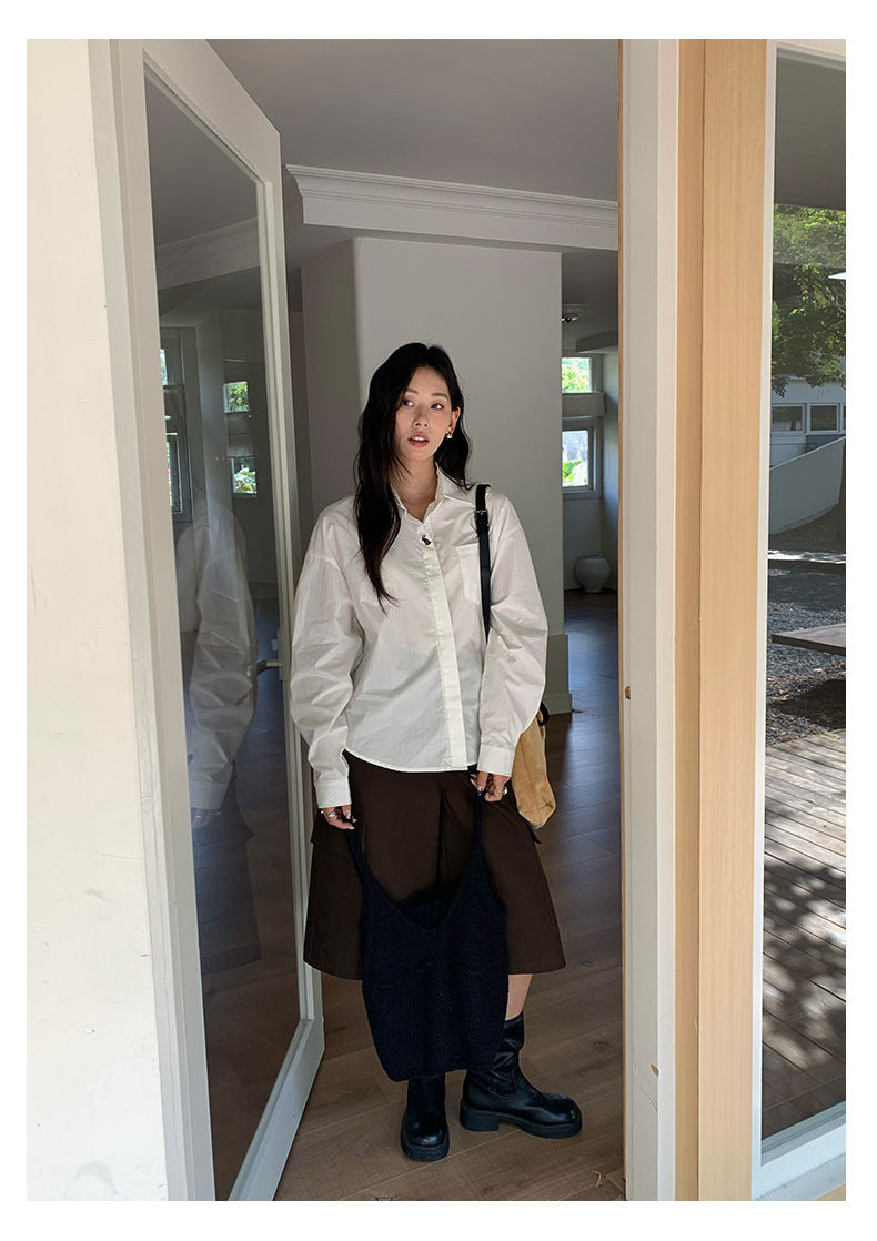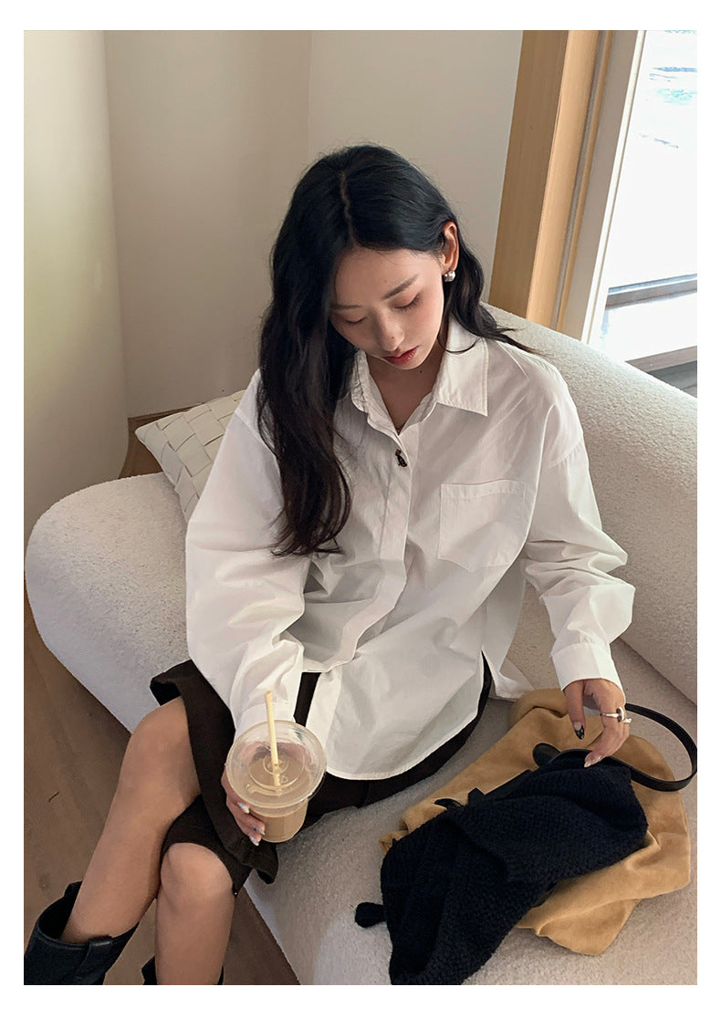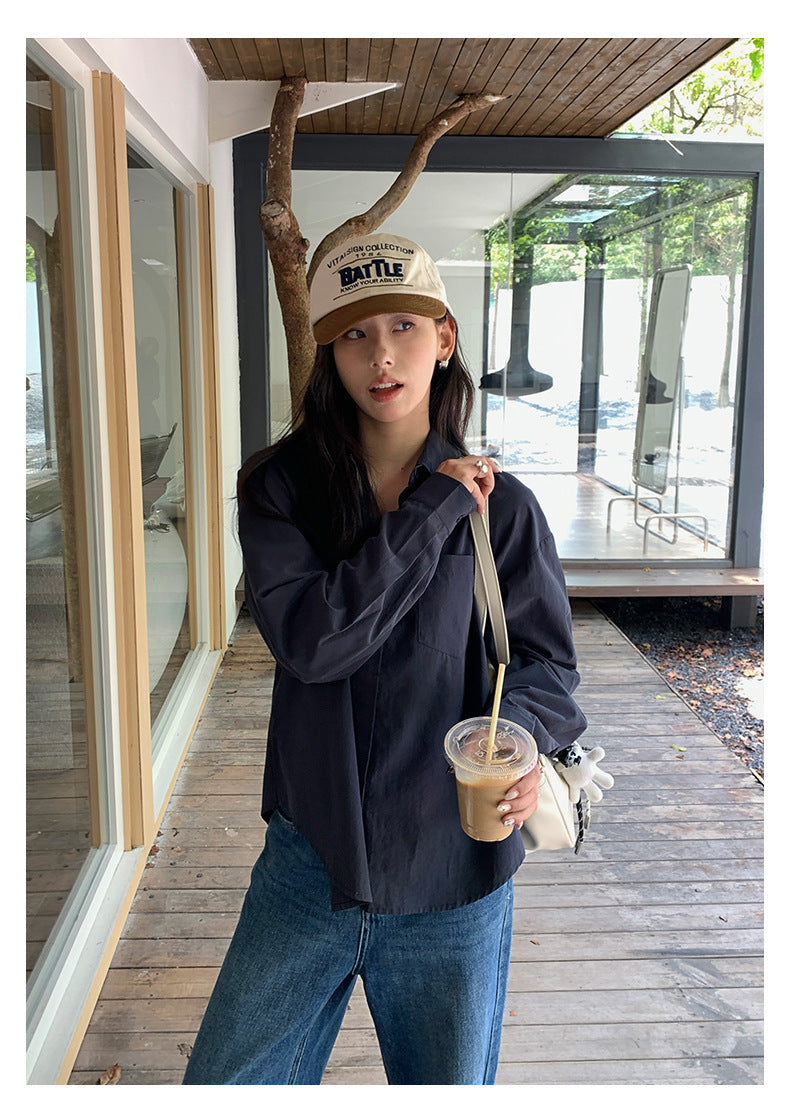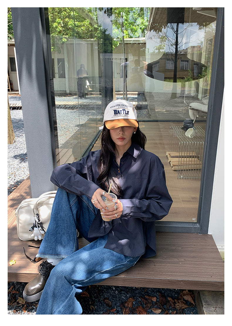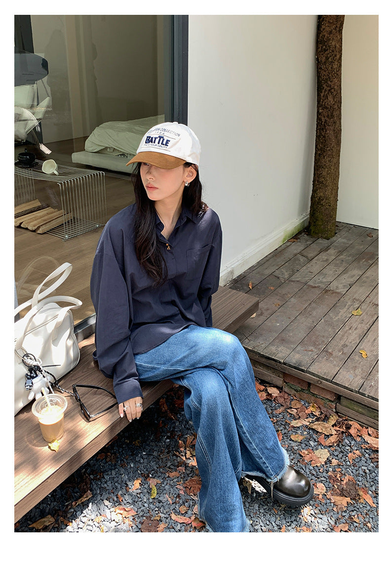 【H5422】實拍法式前襟小刺繡長袖襯衫250909