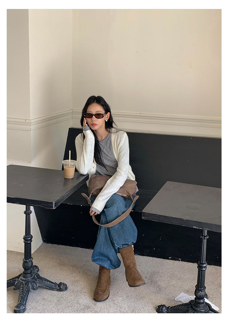 【H5423】實拍細緻雙色針織毛衣外套250909