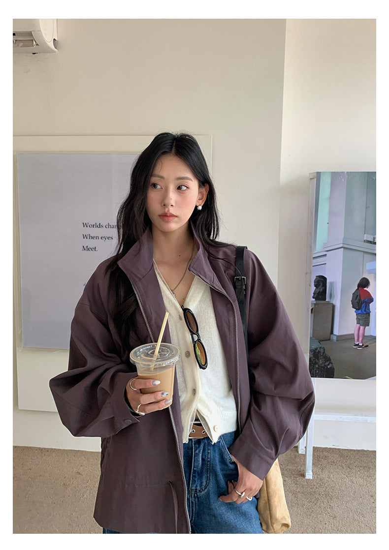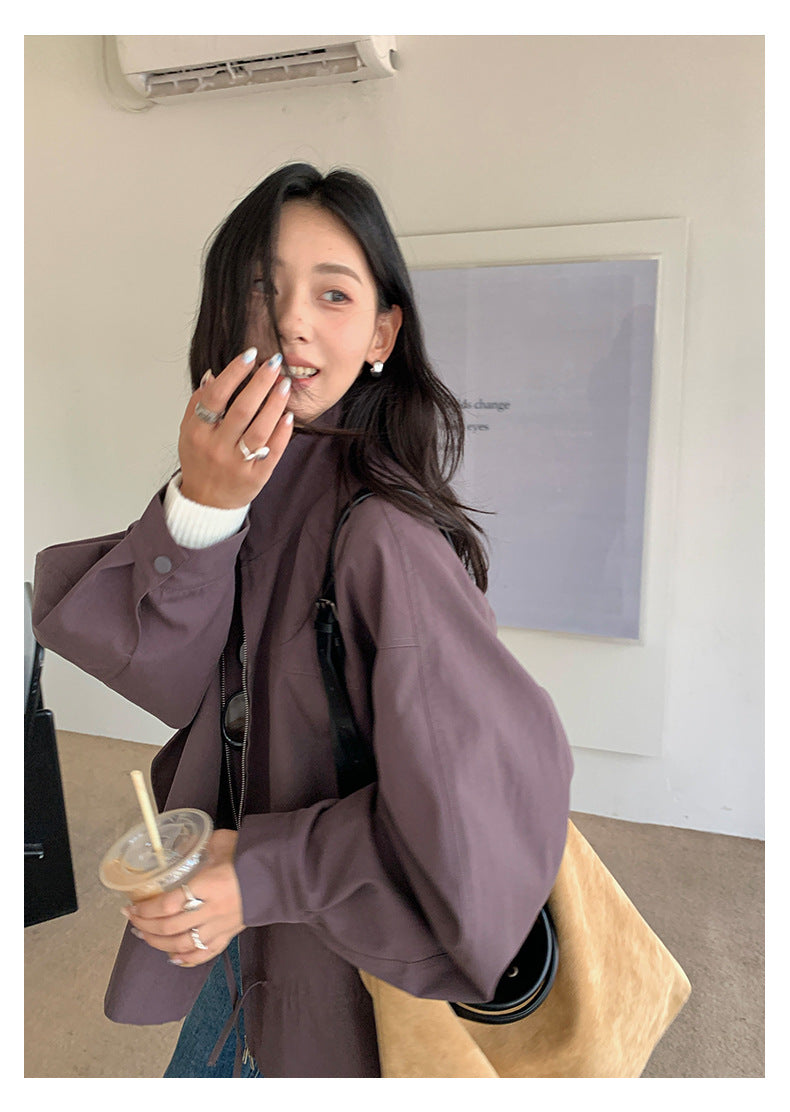 【H5424】實拍早秋韓版立領風衣外套250909