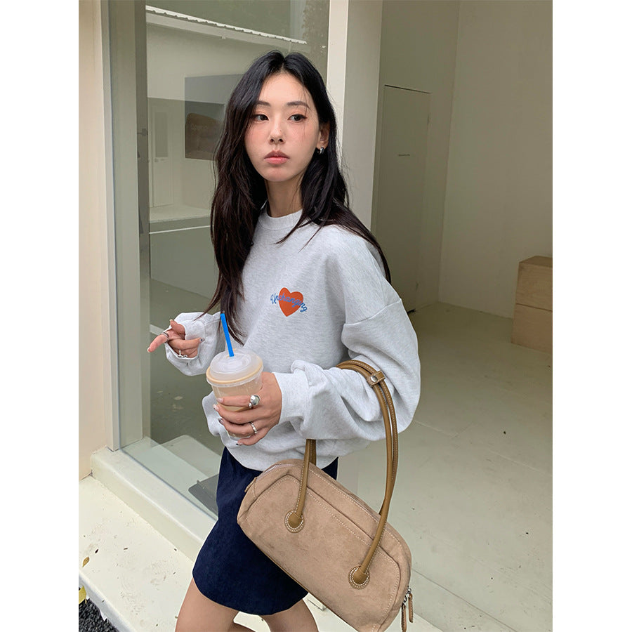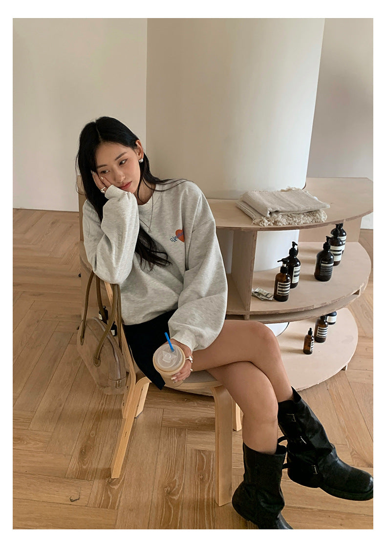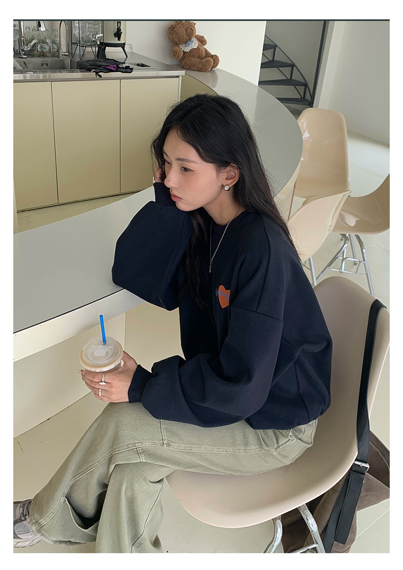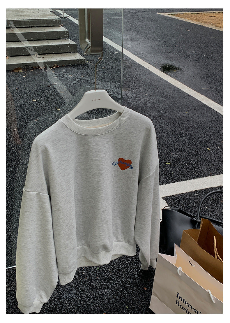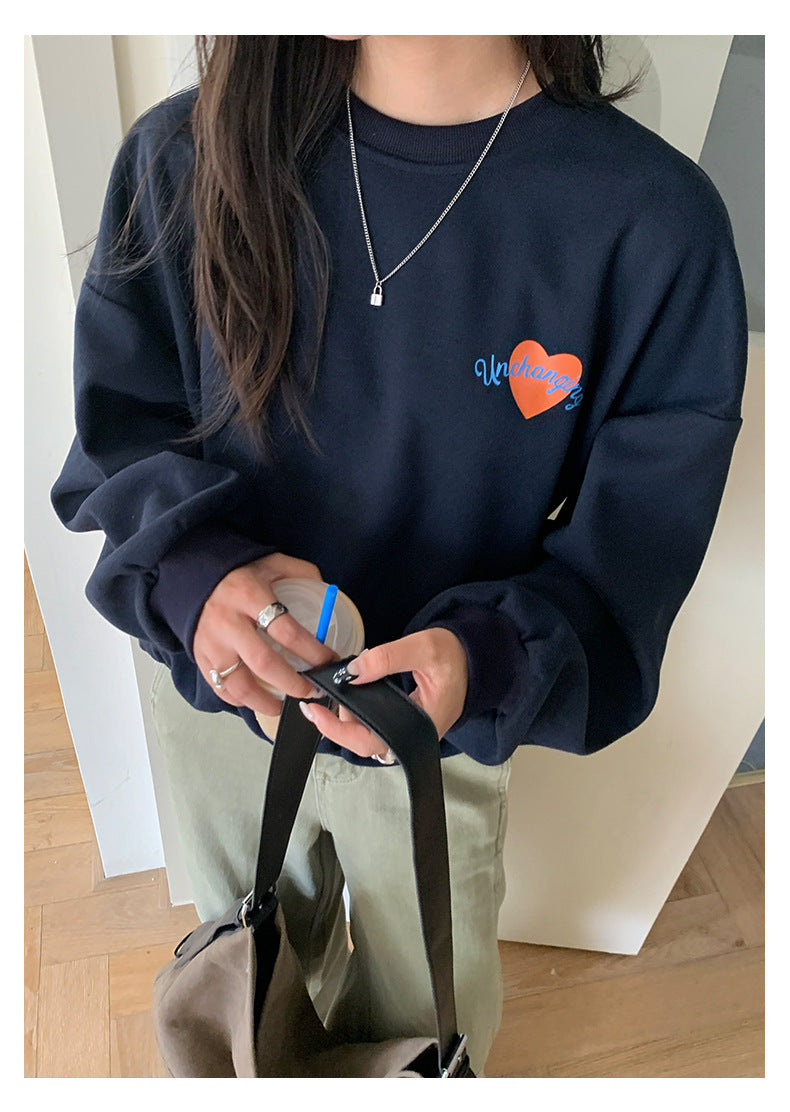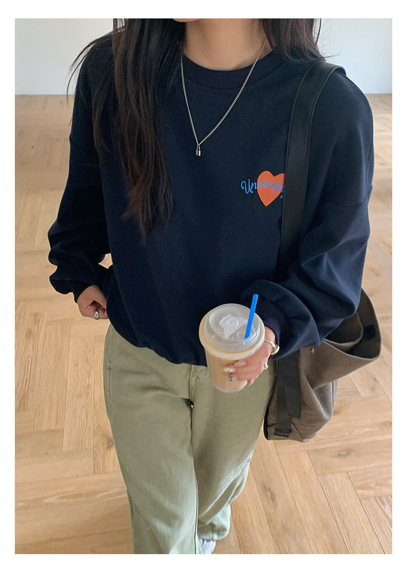 【H5433】實拍韓系愛心印花圓領長袖衞衣250916