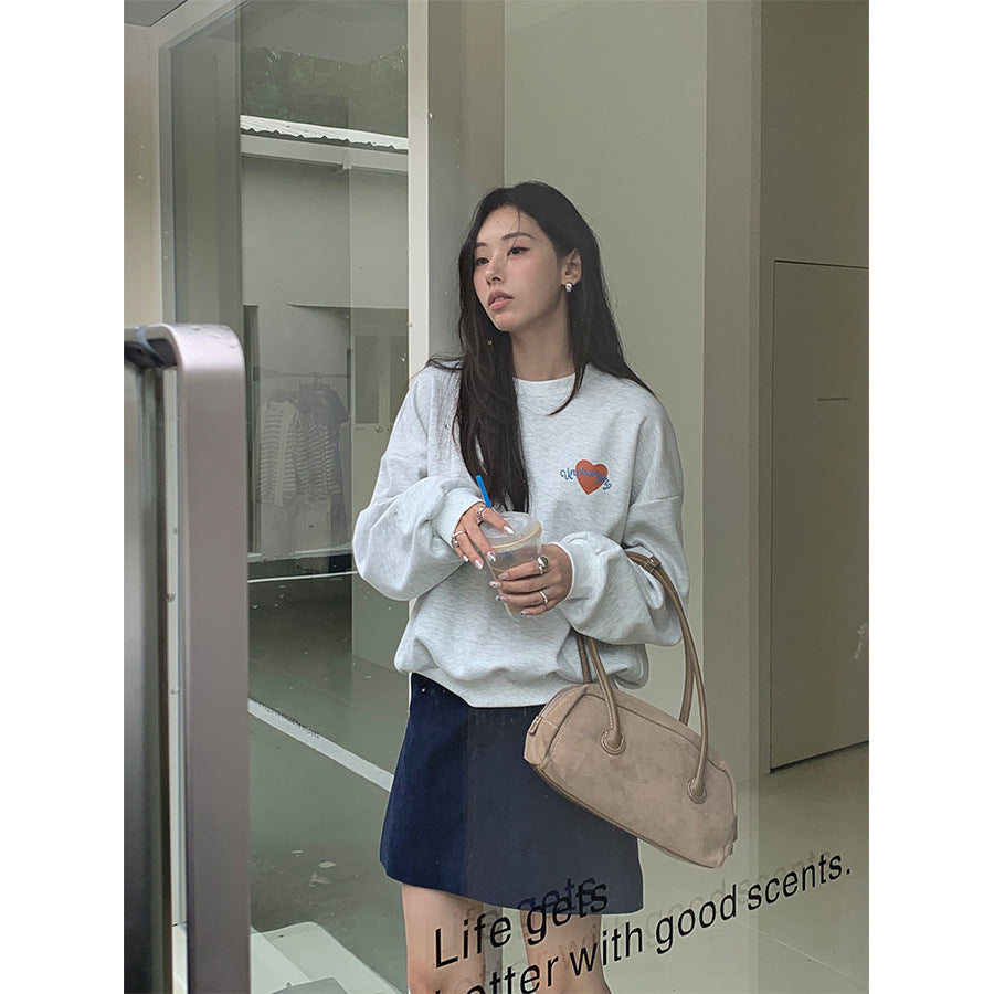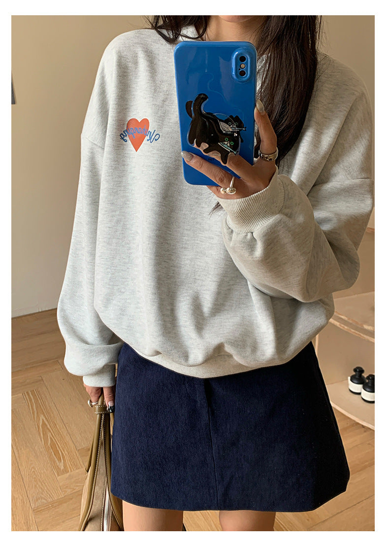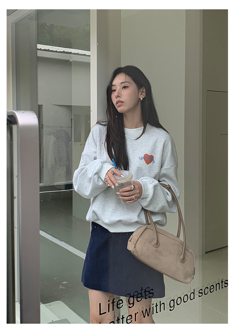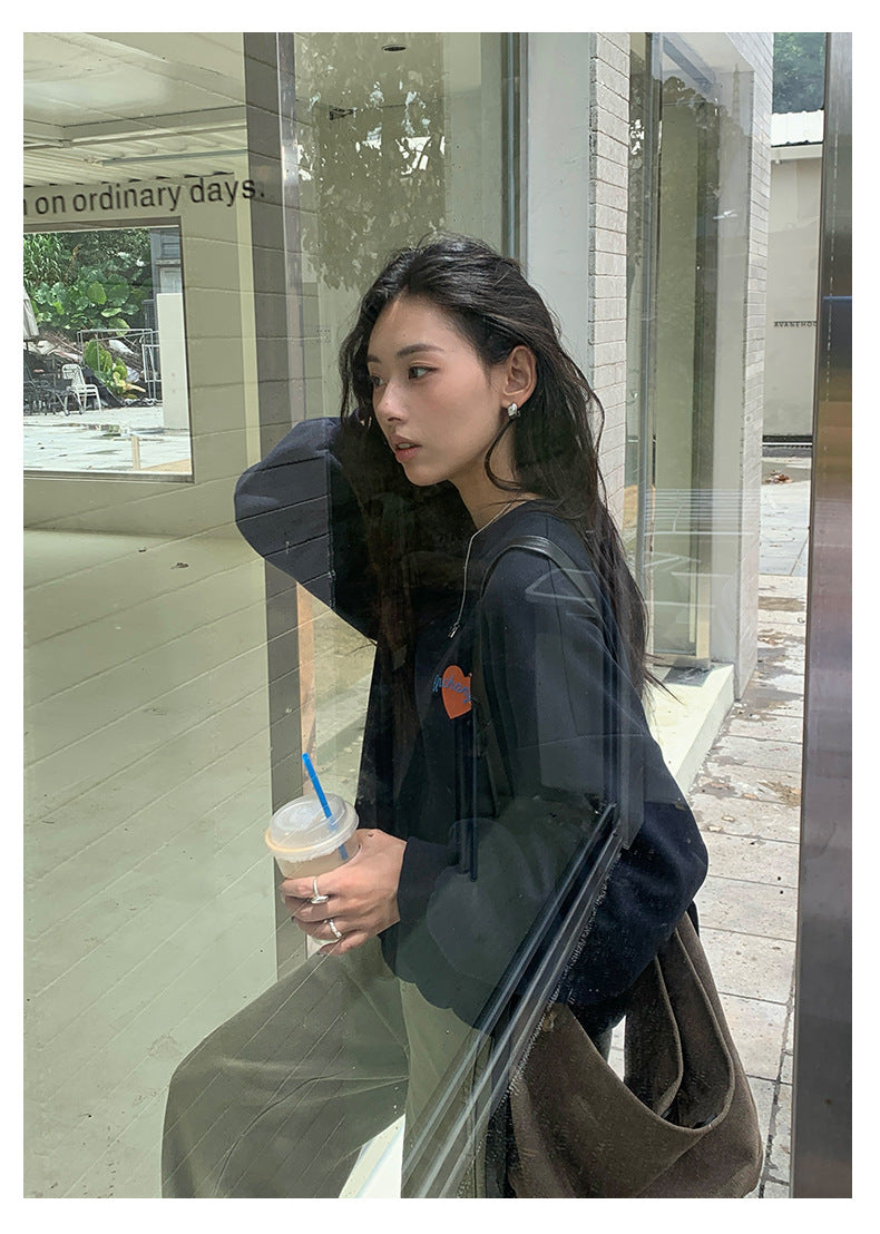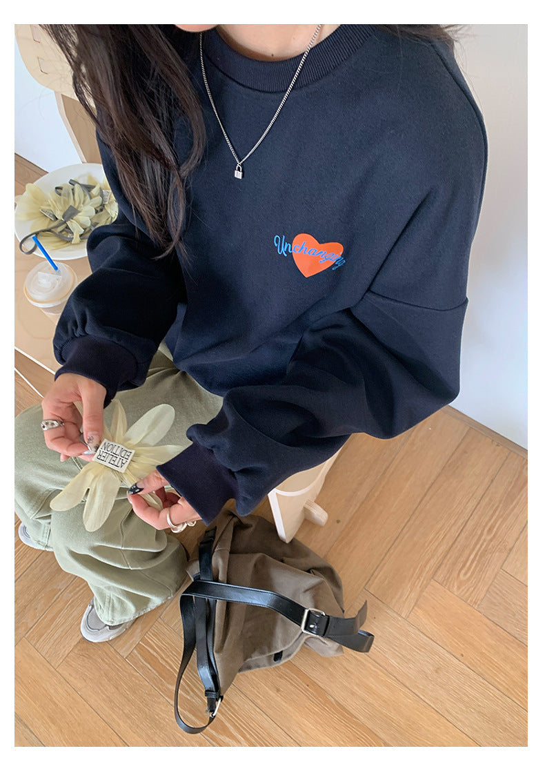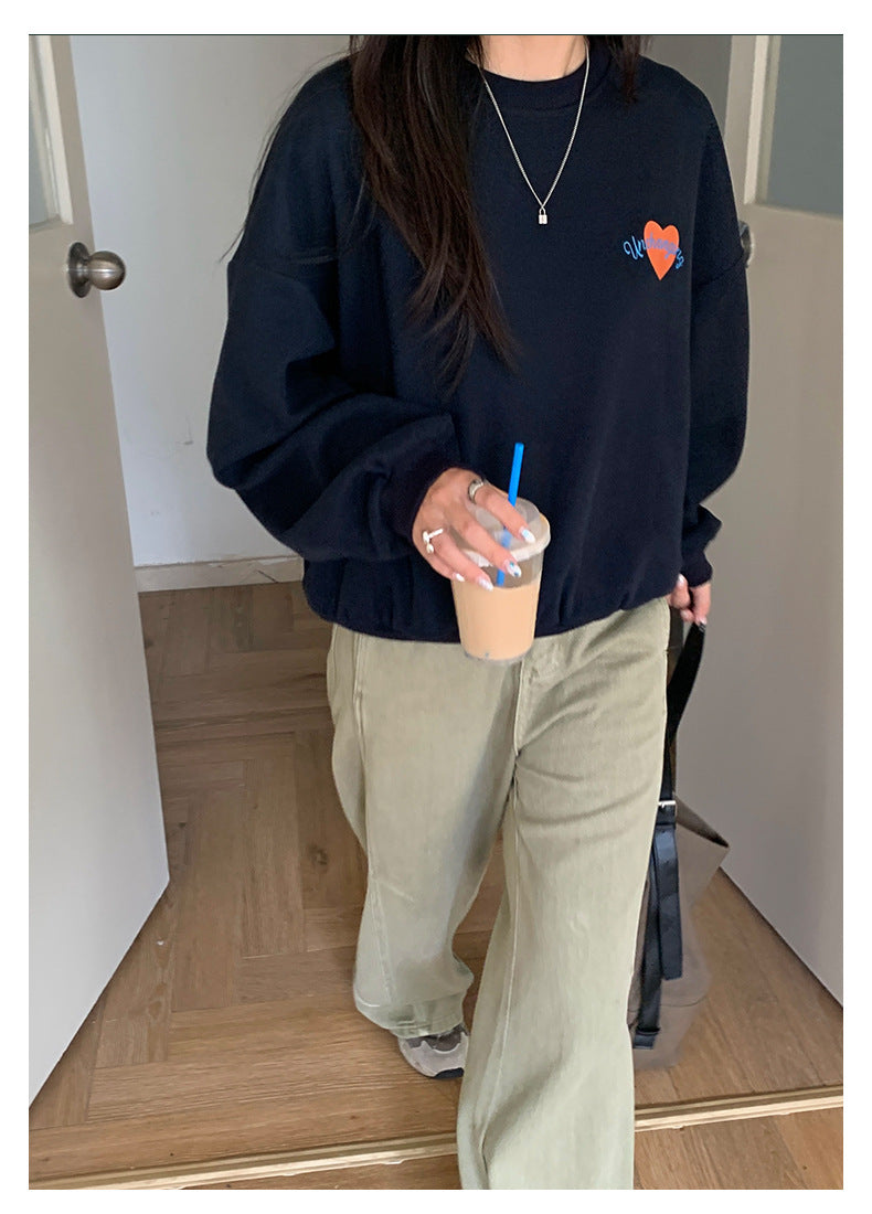 【H5433】實拍韓系愛心印花圓領長袖衞衣250916