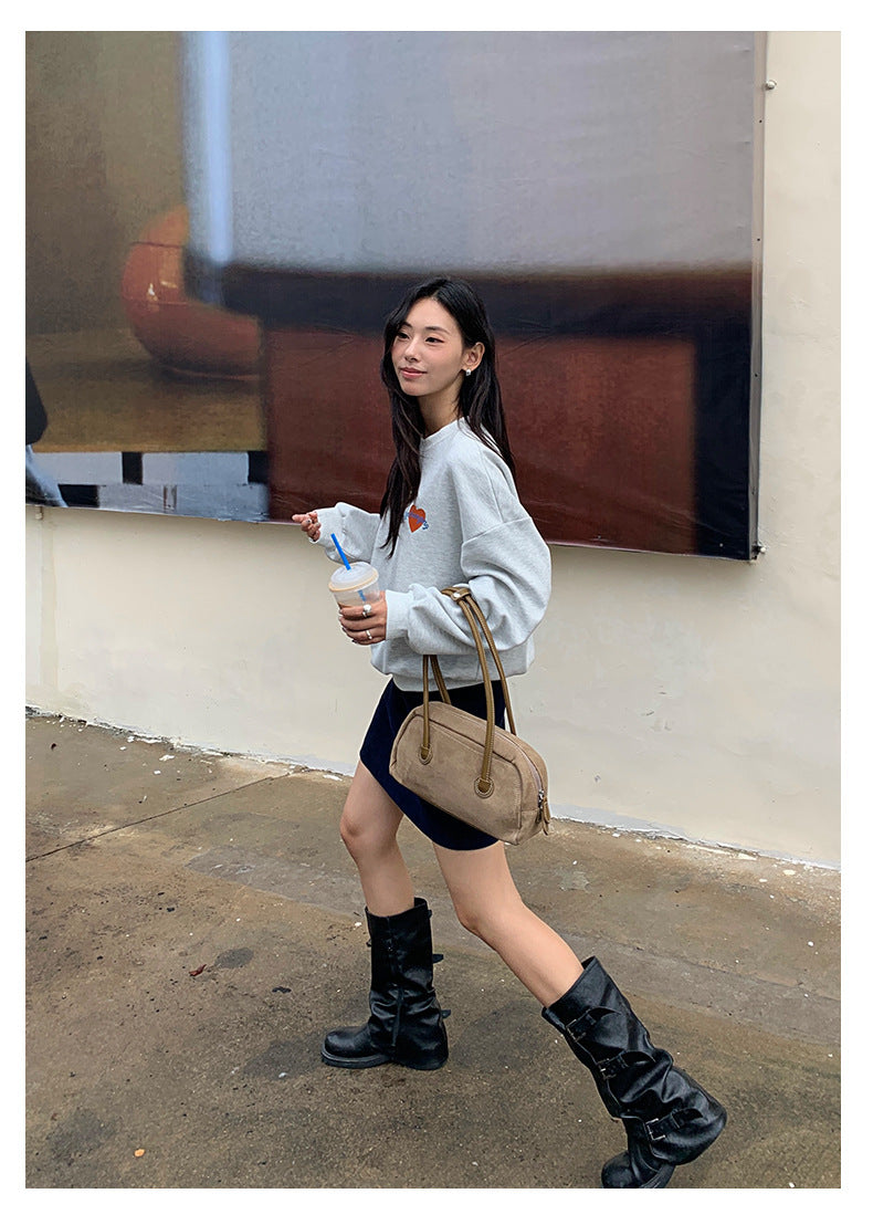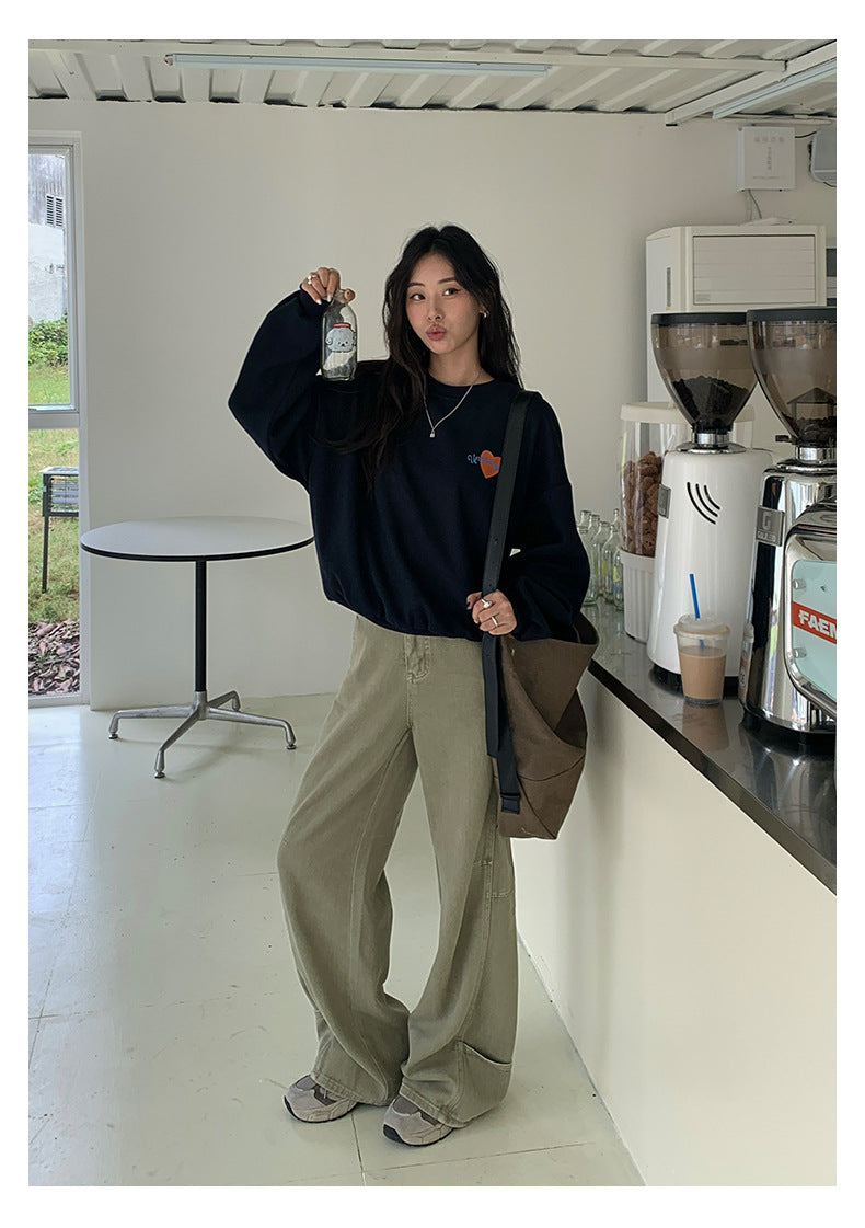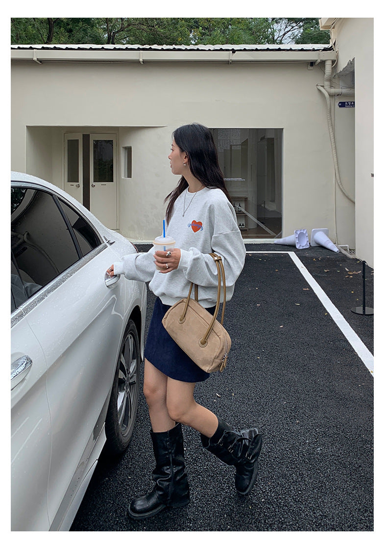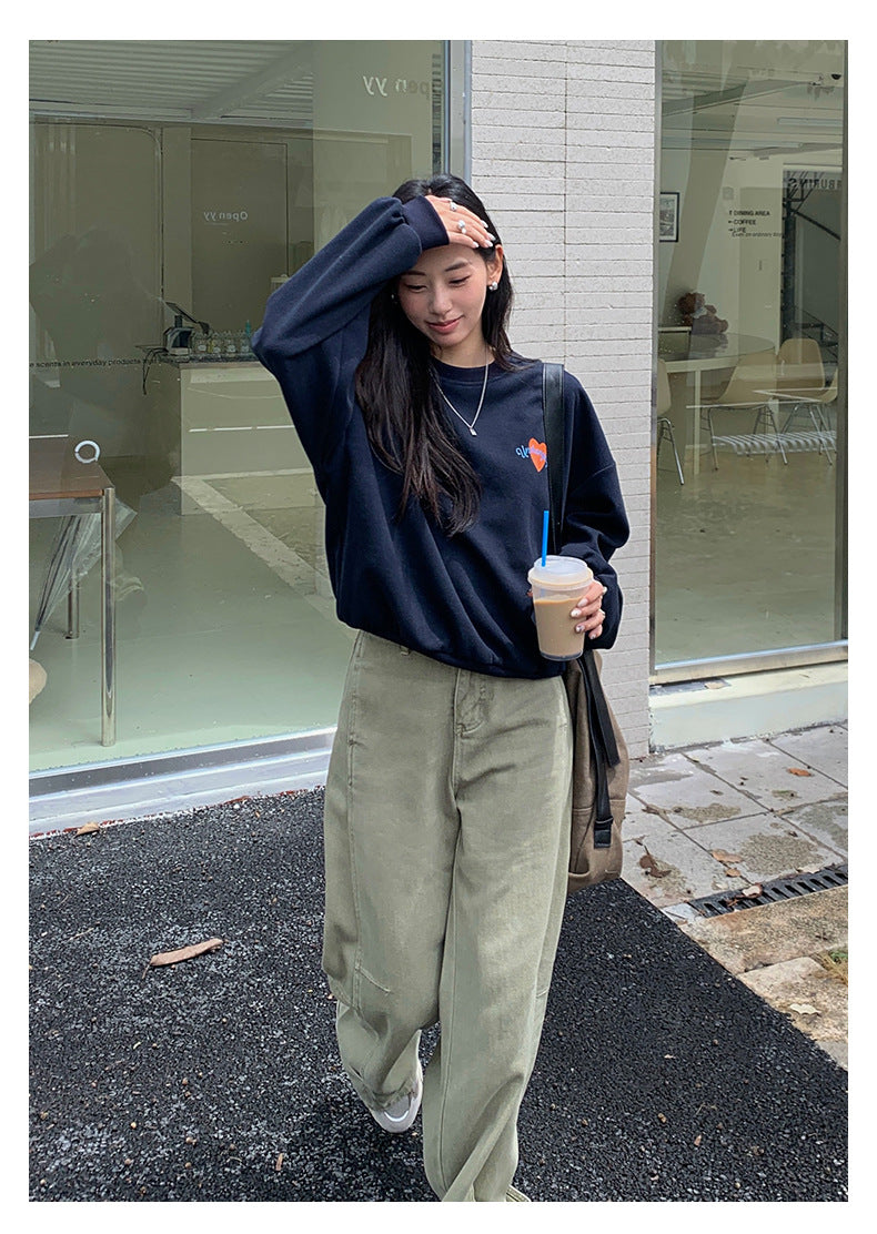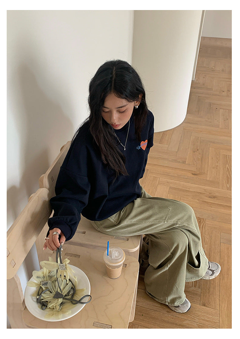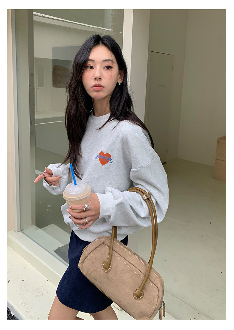 【H5433】實拍韓系愛心印花圓領長袖衞衣250916