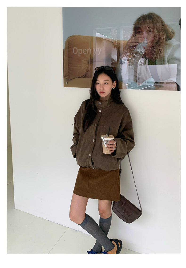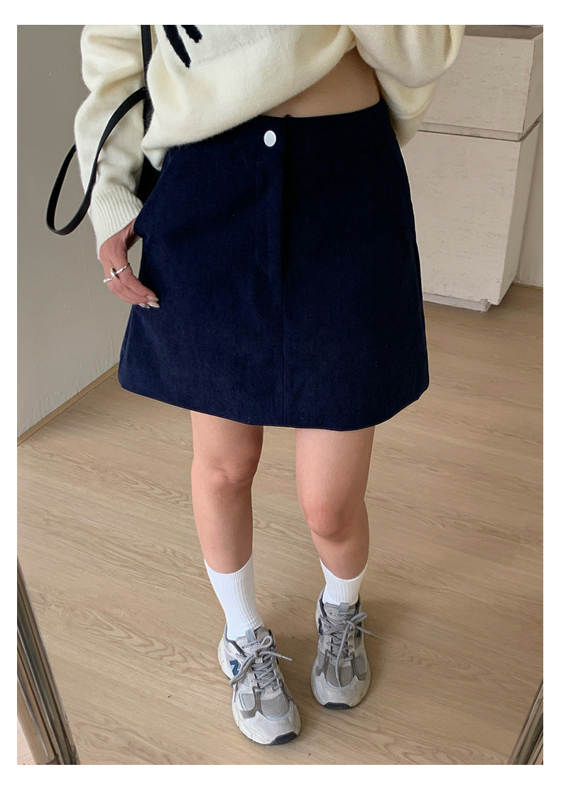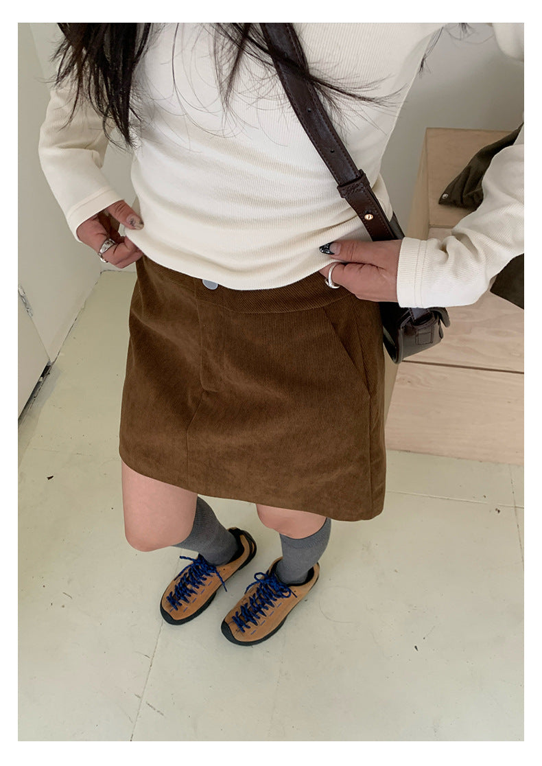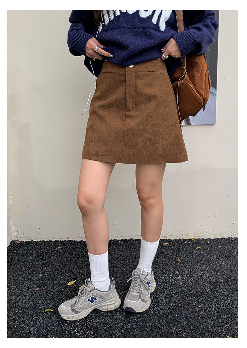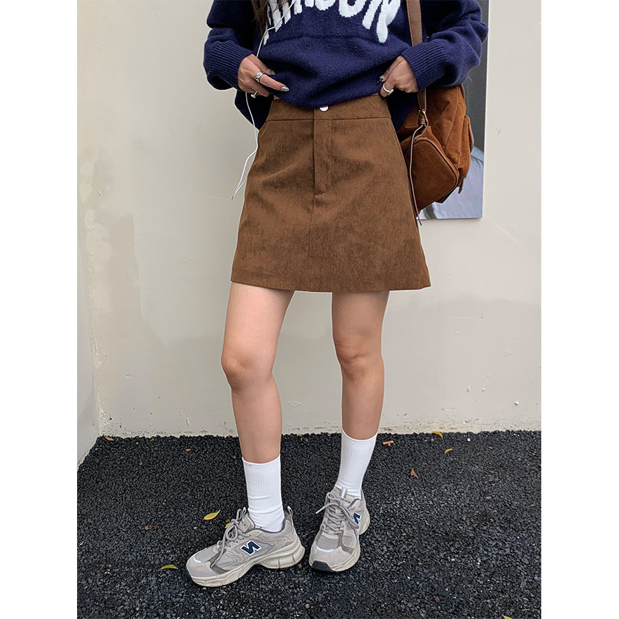 【H5435】實拍秋冬燈芯絨復古簡約A字裙250916