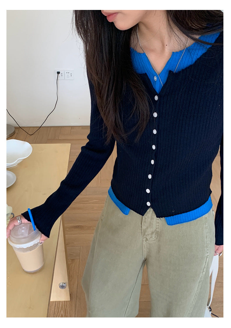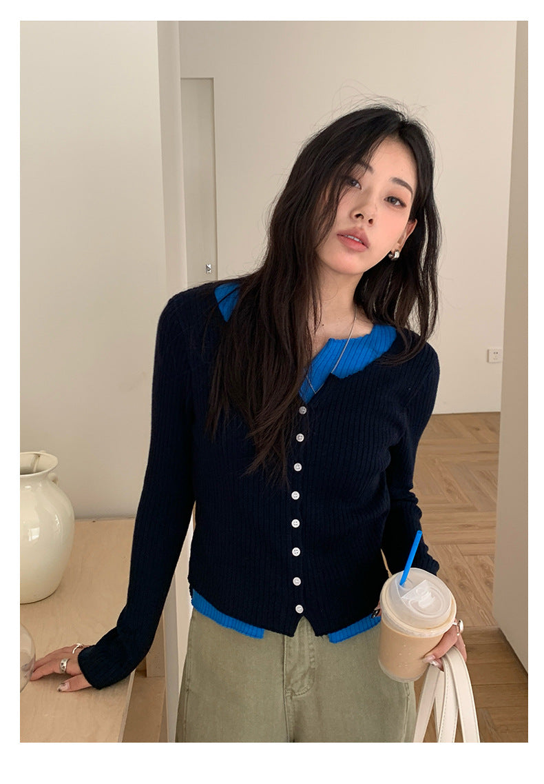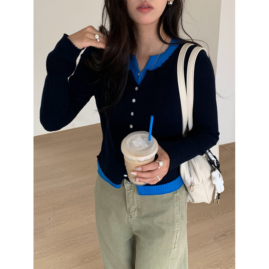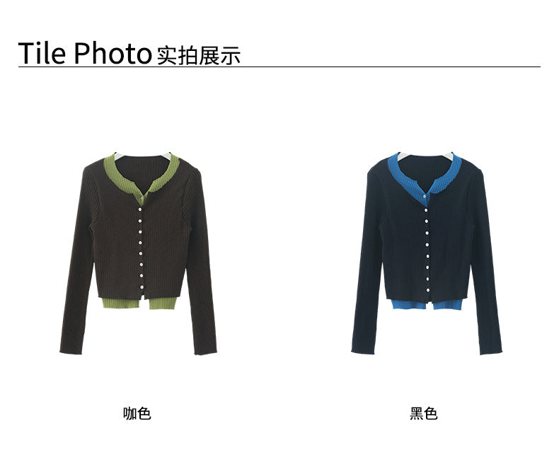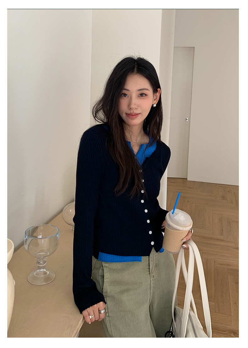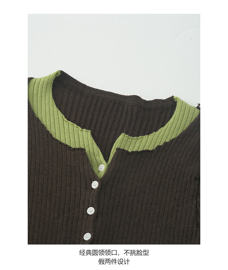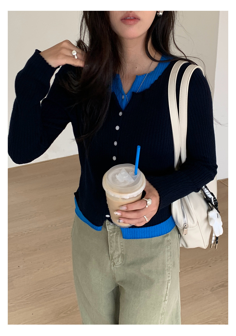 【H5439】實拍假兩件拼色針織外套250916