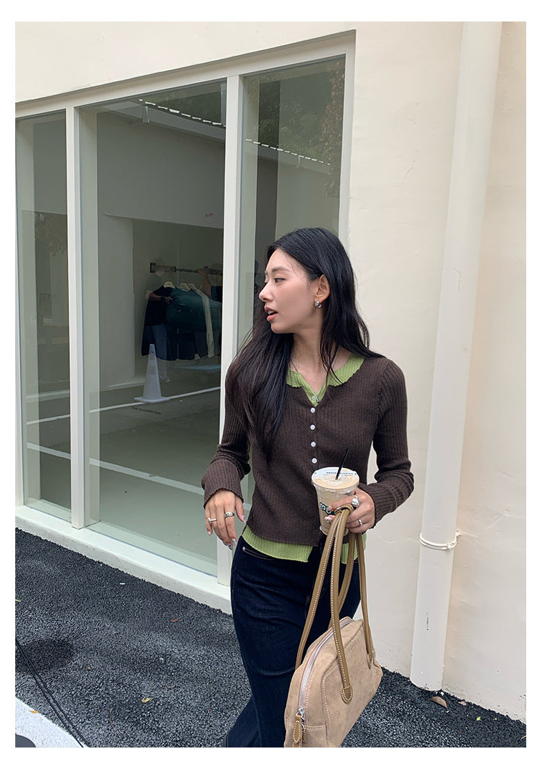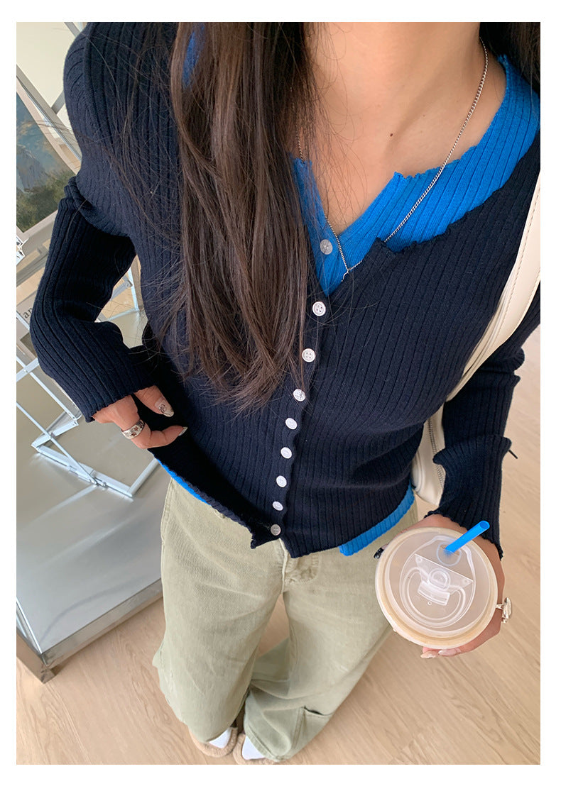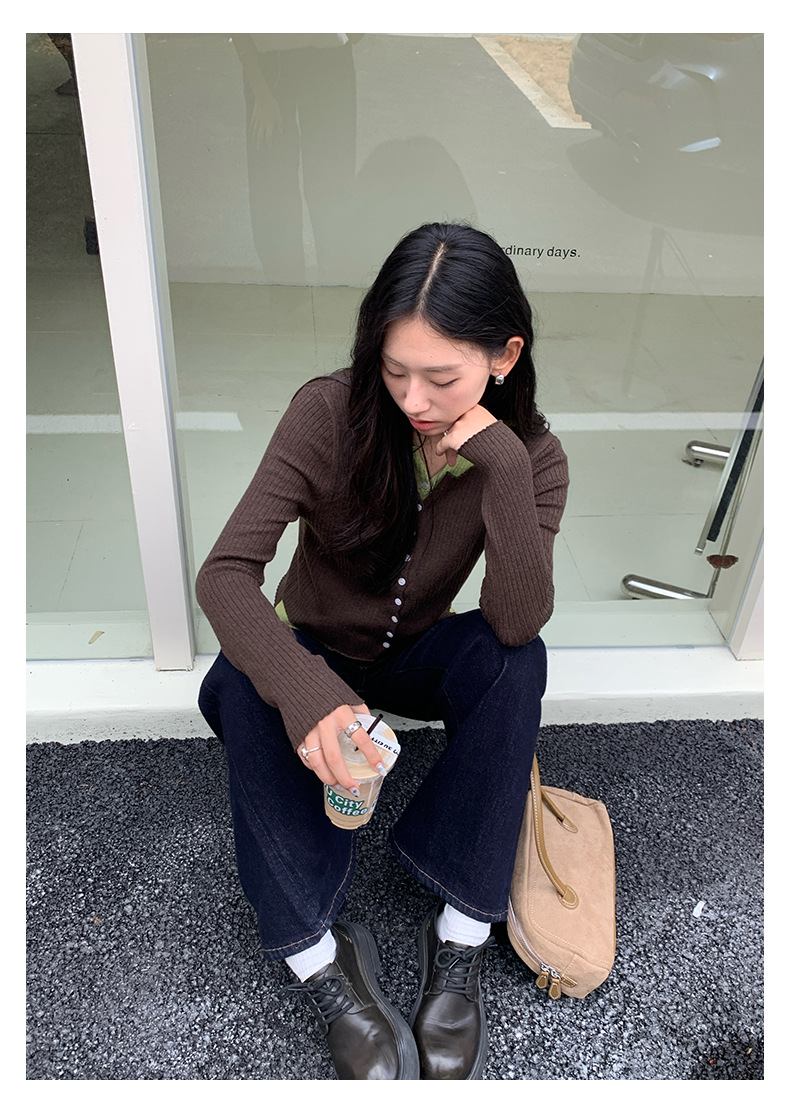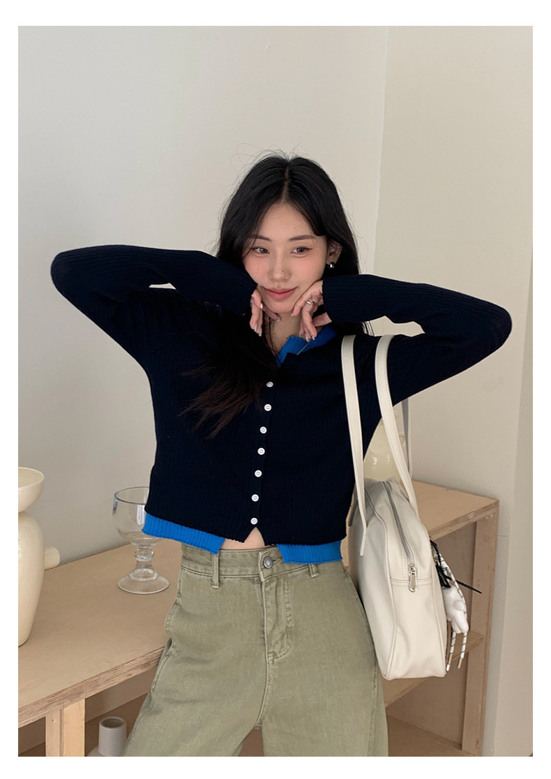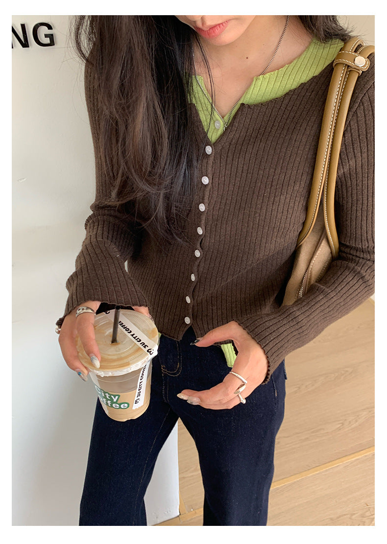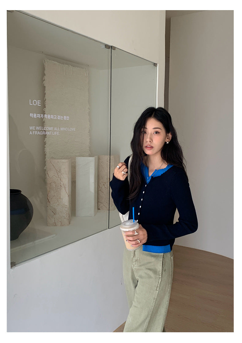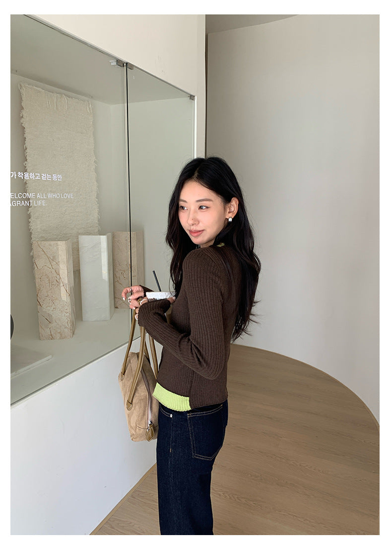 【H5439】實拍假兩件拼色針織外套250916
