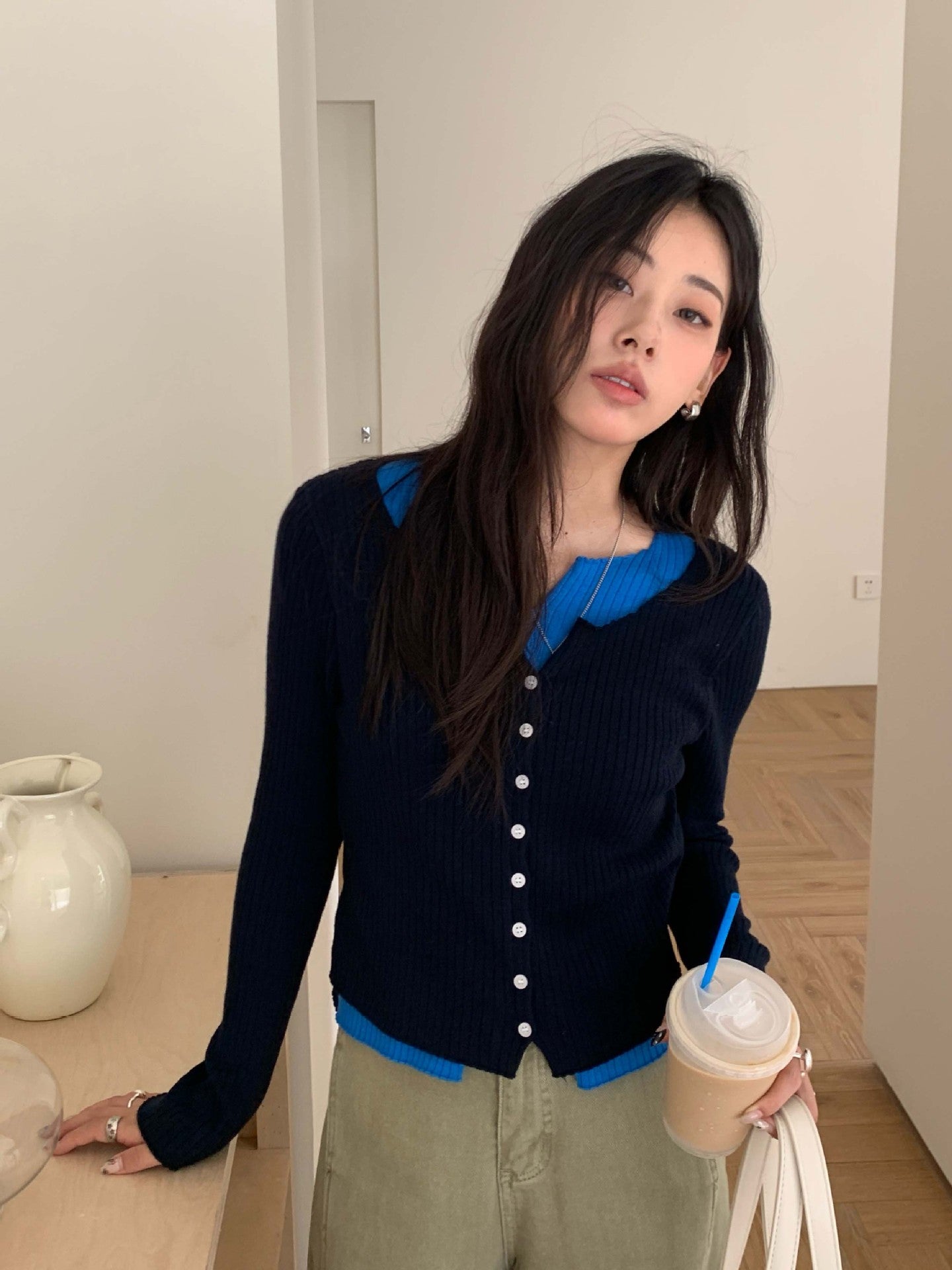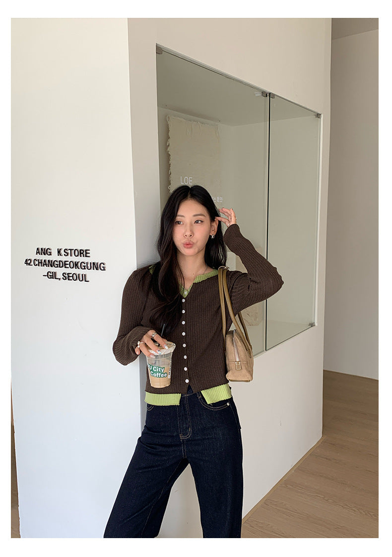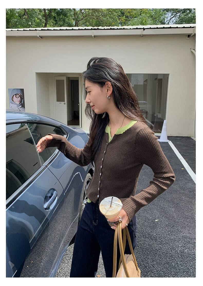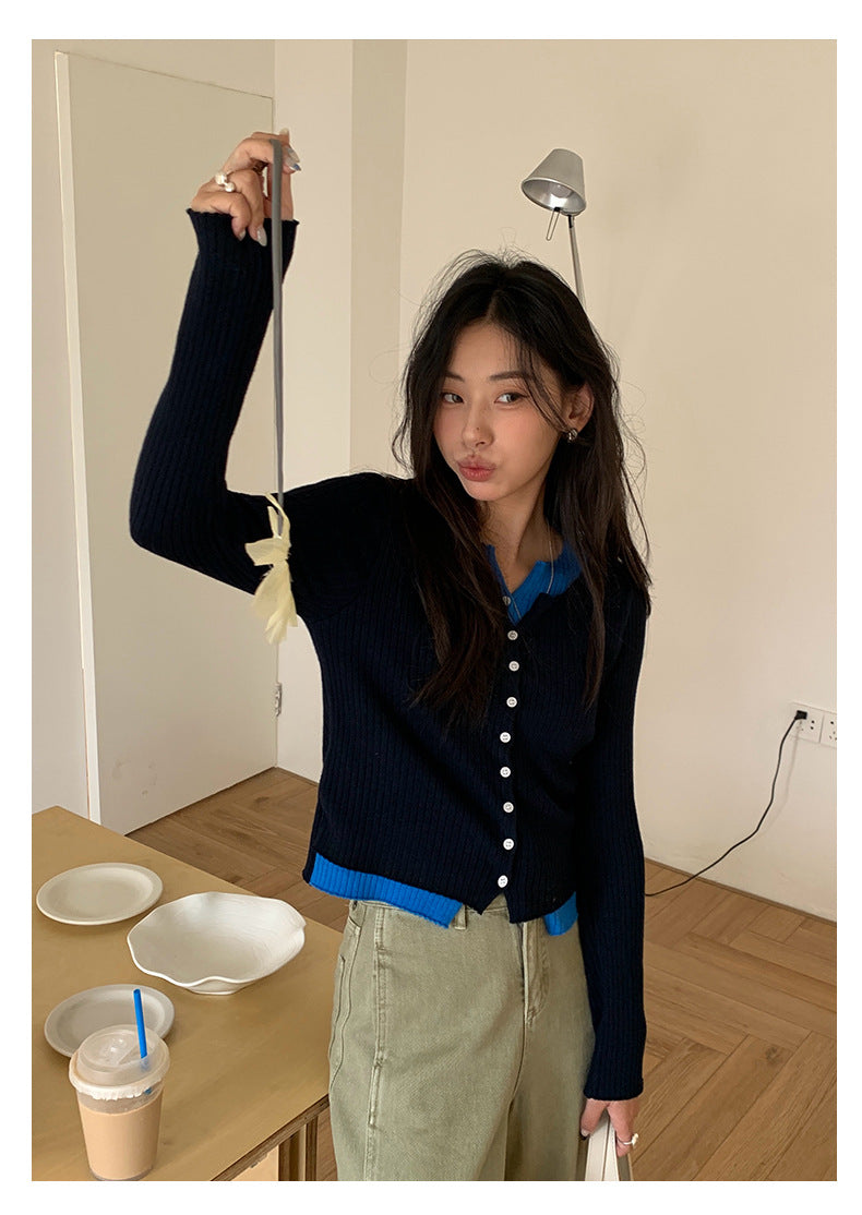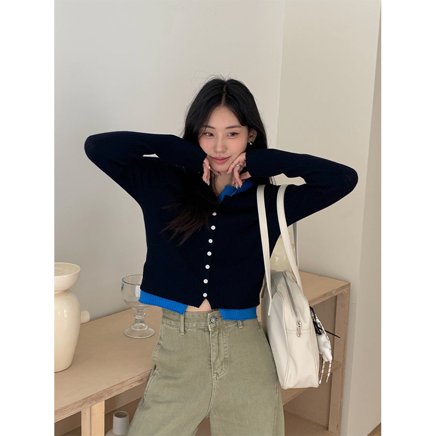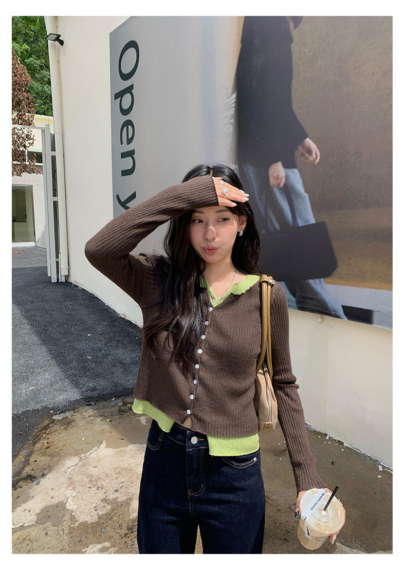 【H5439】實拍假兩件拼色針織外套250916