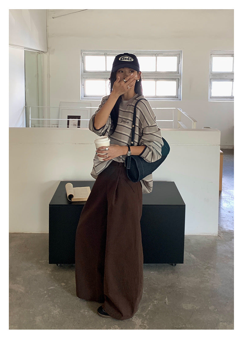 【H5443】實拍復古美拉德高腰彎刀休閒褲250923
