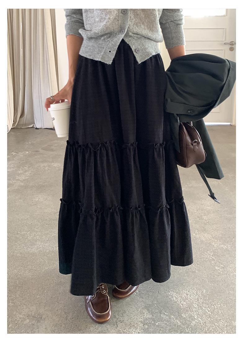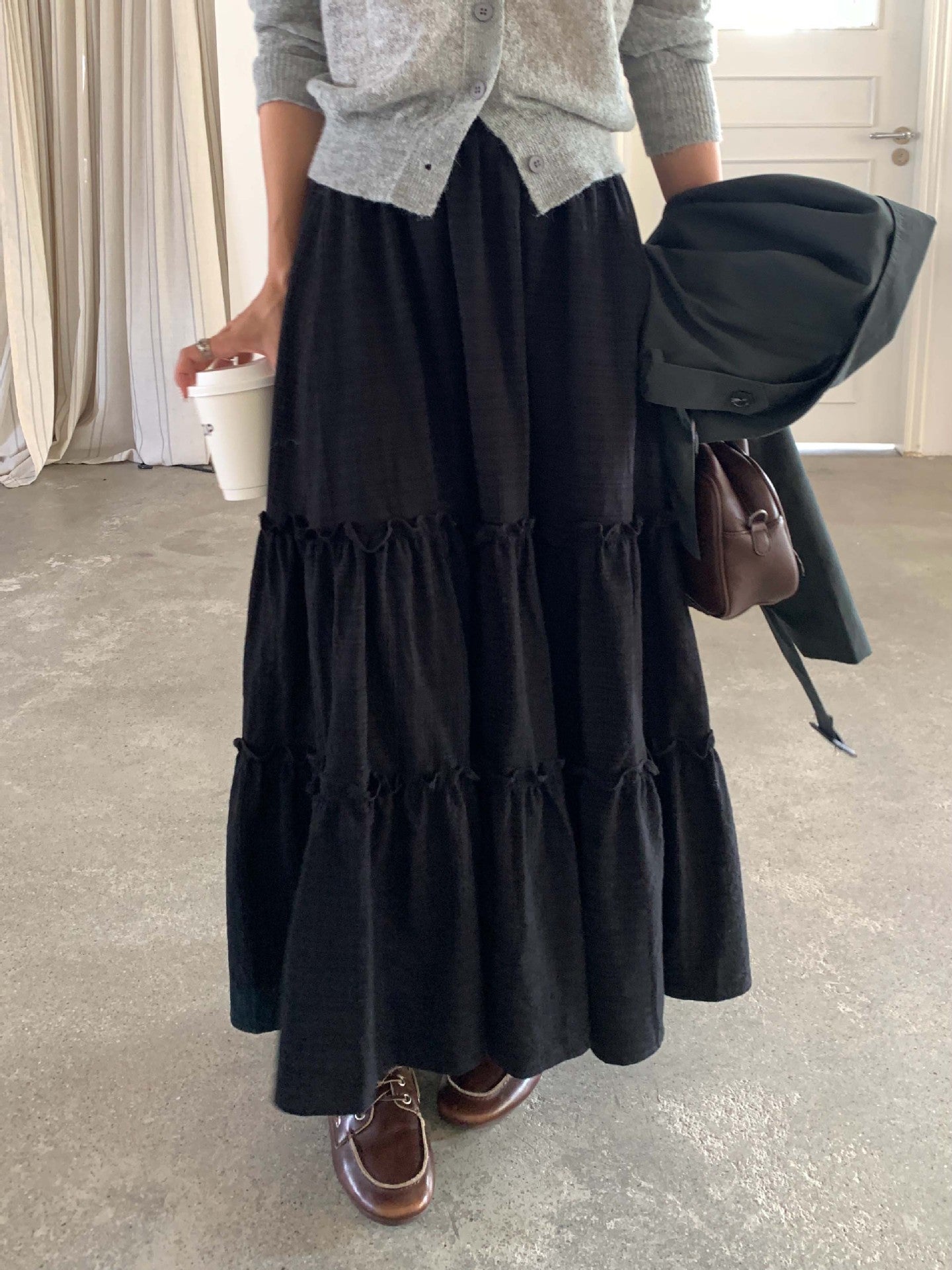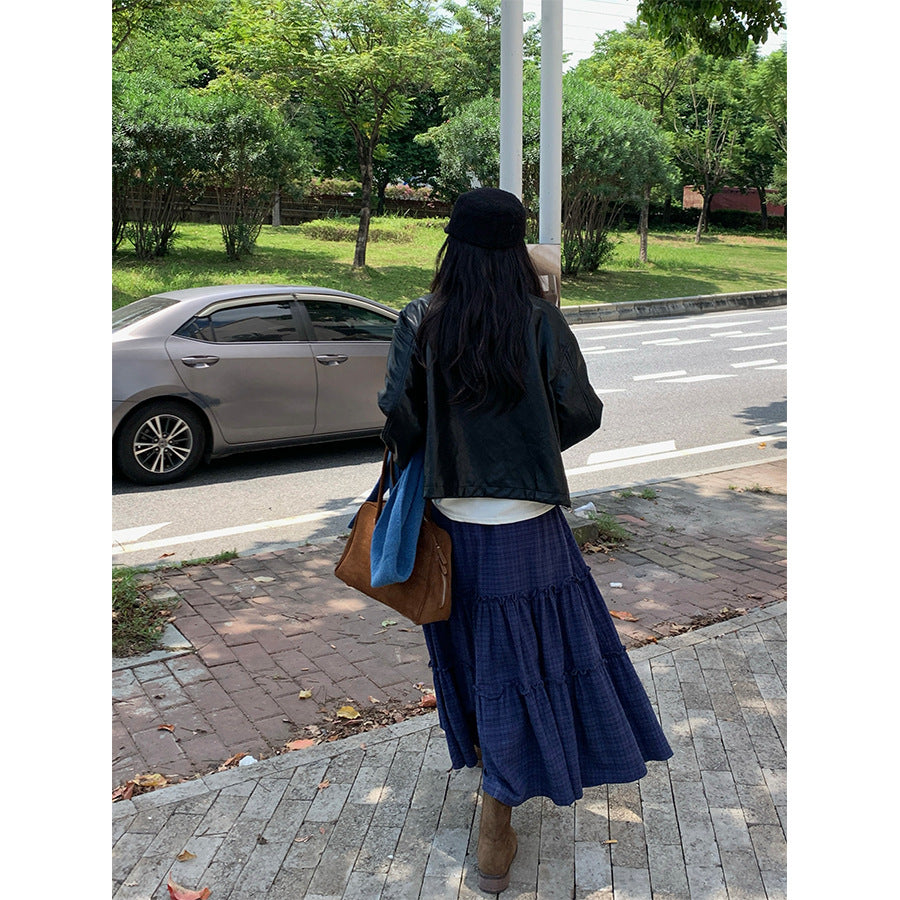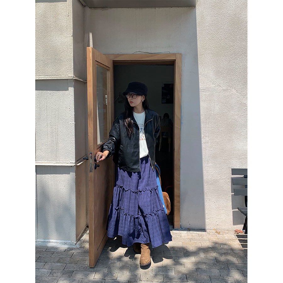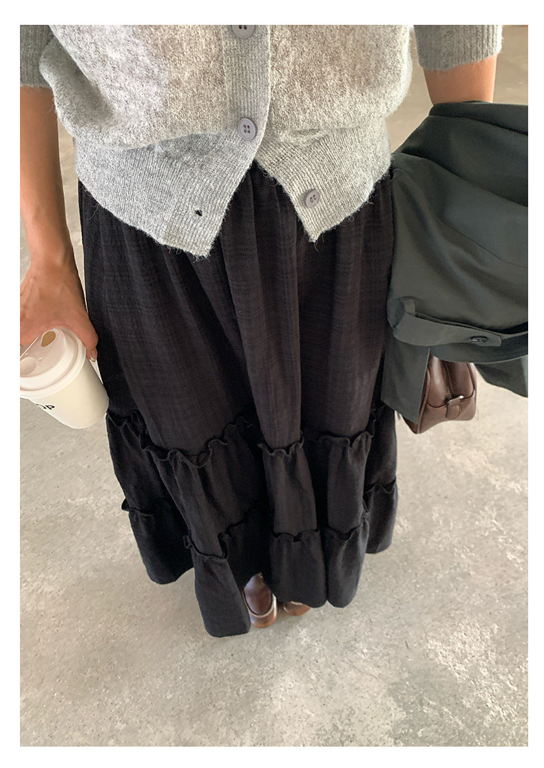 【H5444】實拍鬆緊腰垂感小荷葉蛋糕裙250923