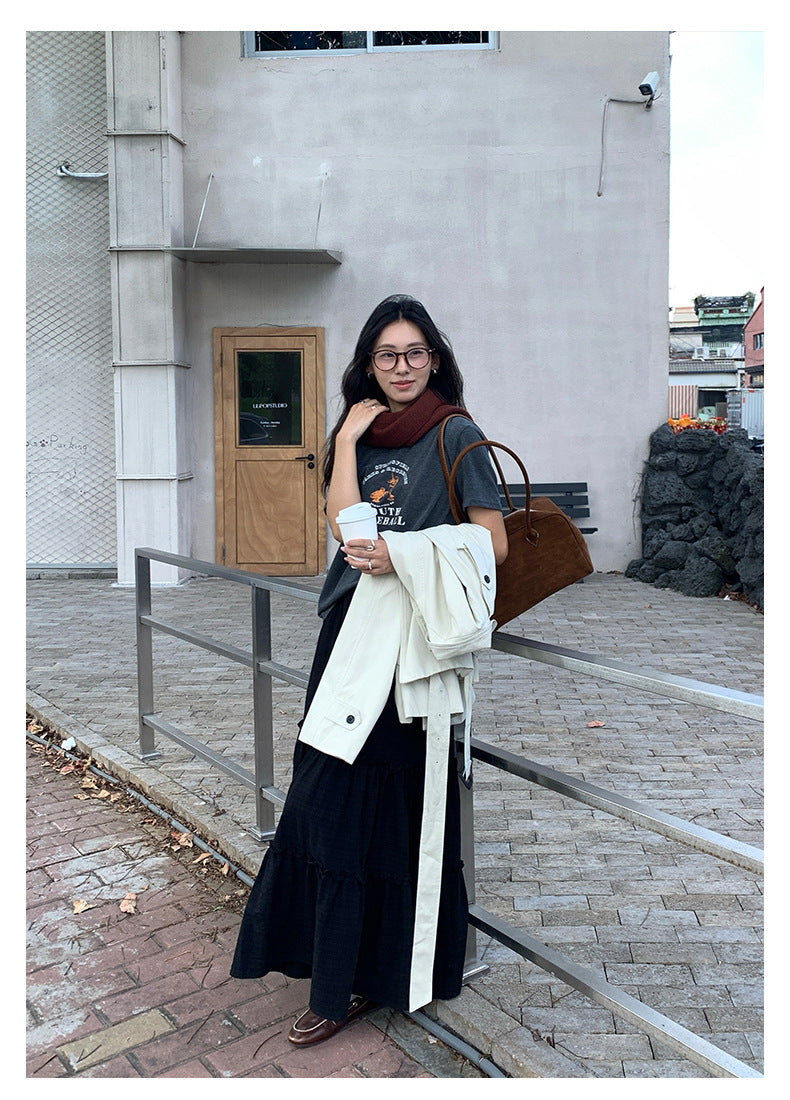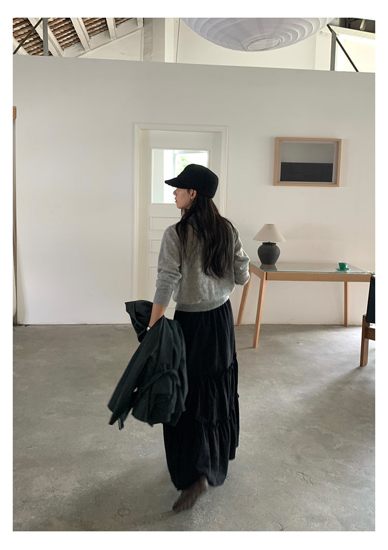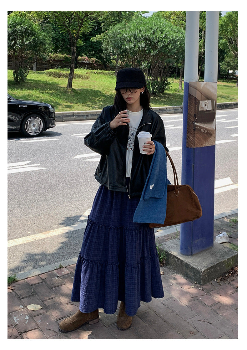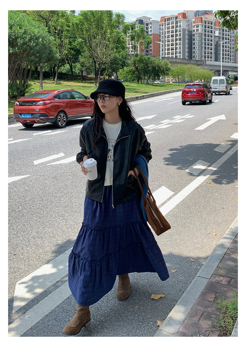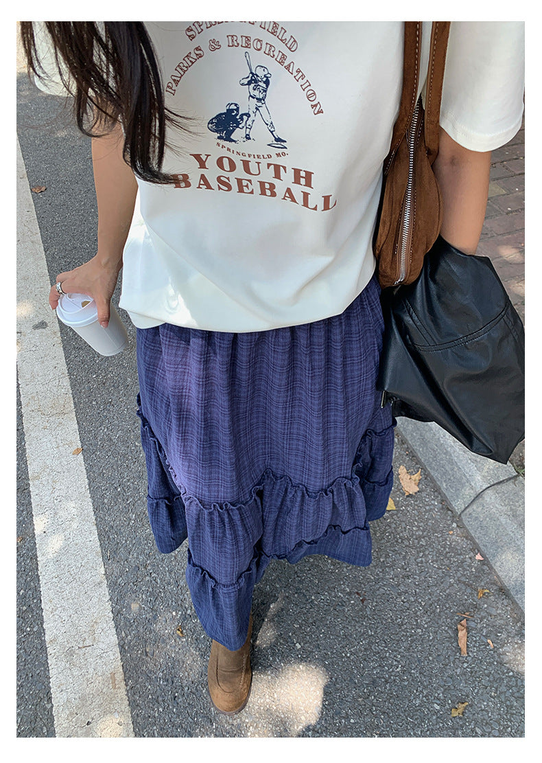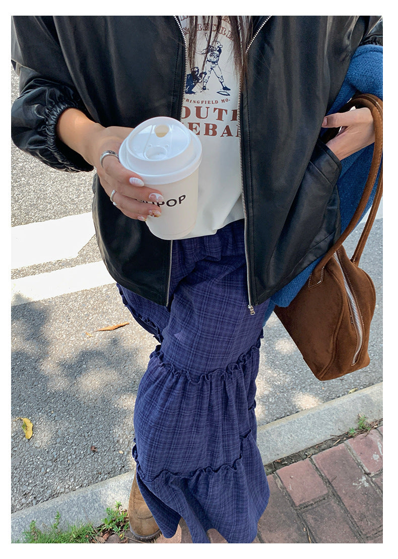 【H5444】實拍鬆緊腰垂感小荷葉蛋糕裙250923