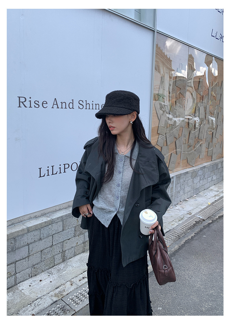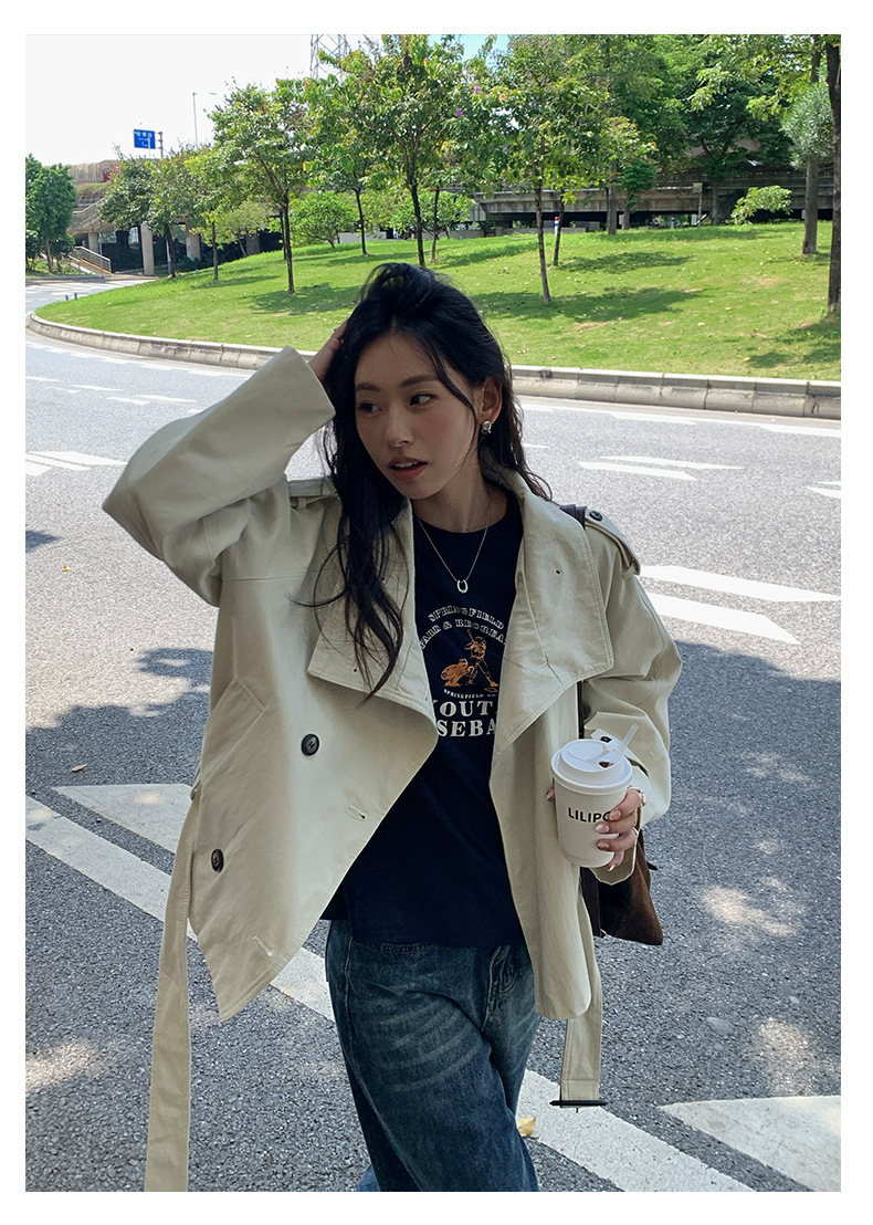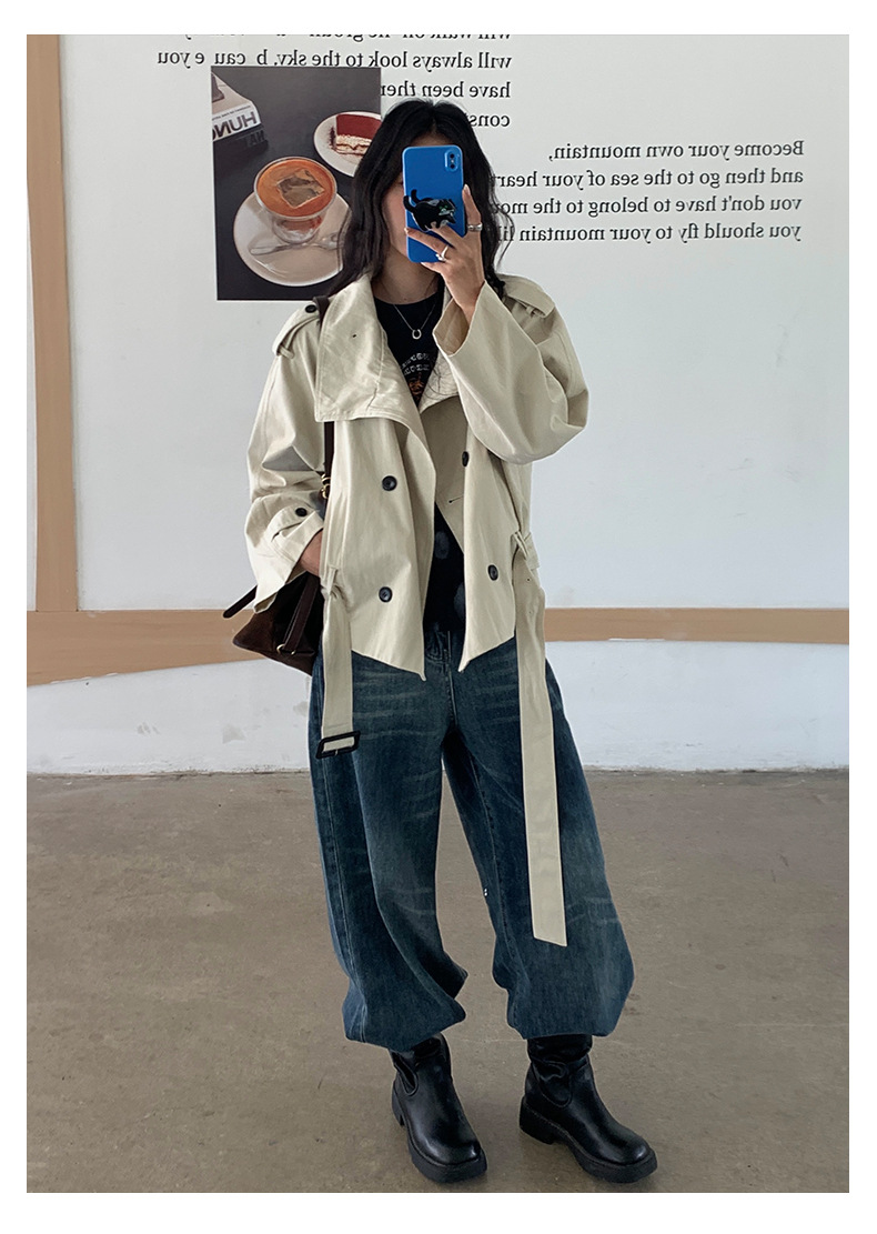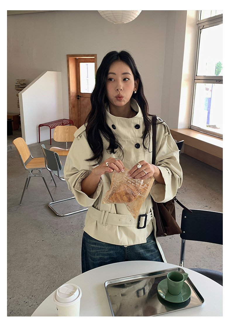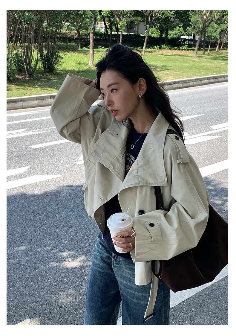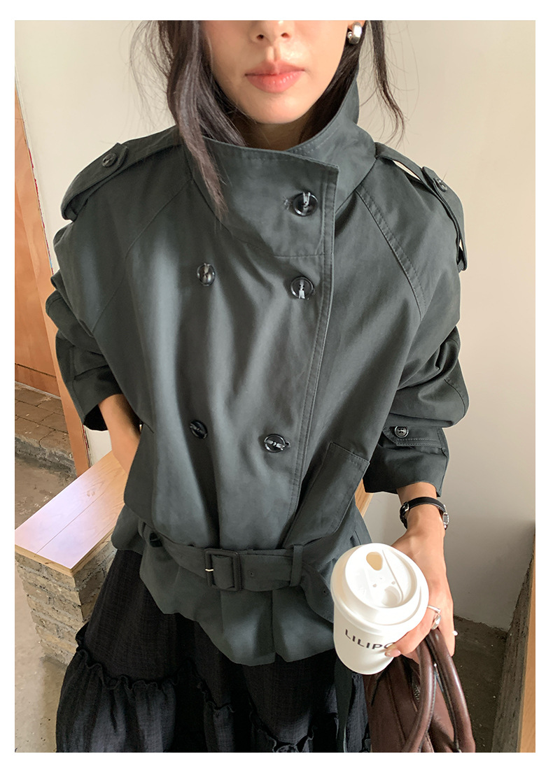 【H5446】實拍設計感立領雙排扣短版風衣外套250923