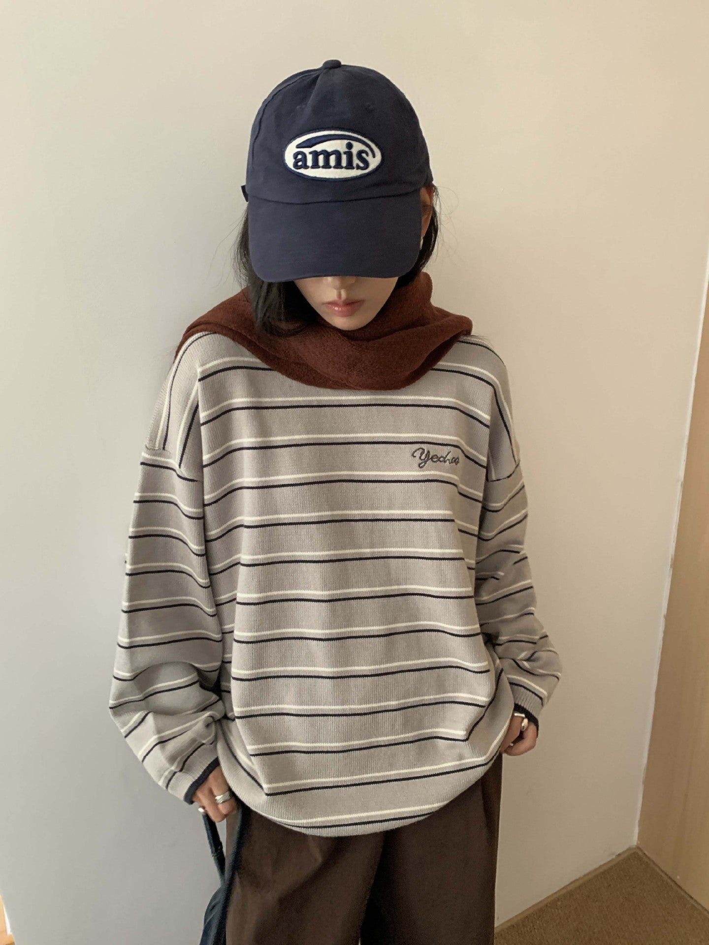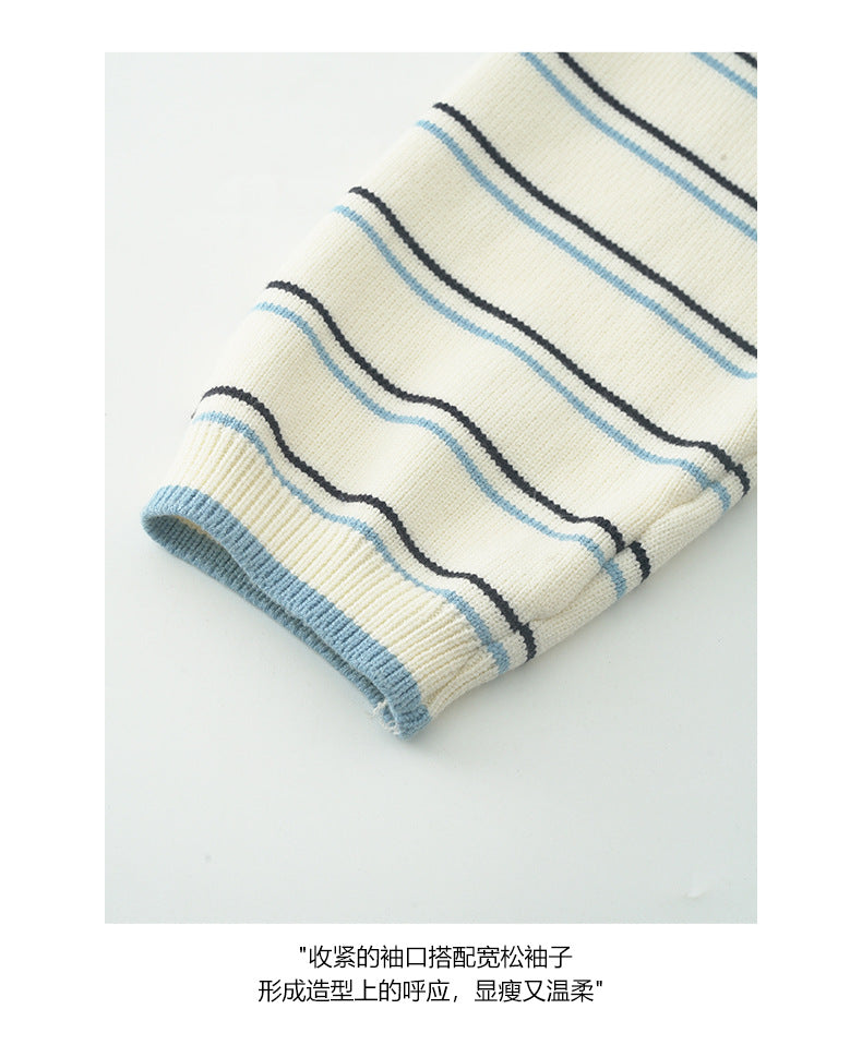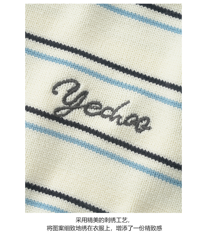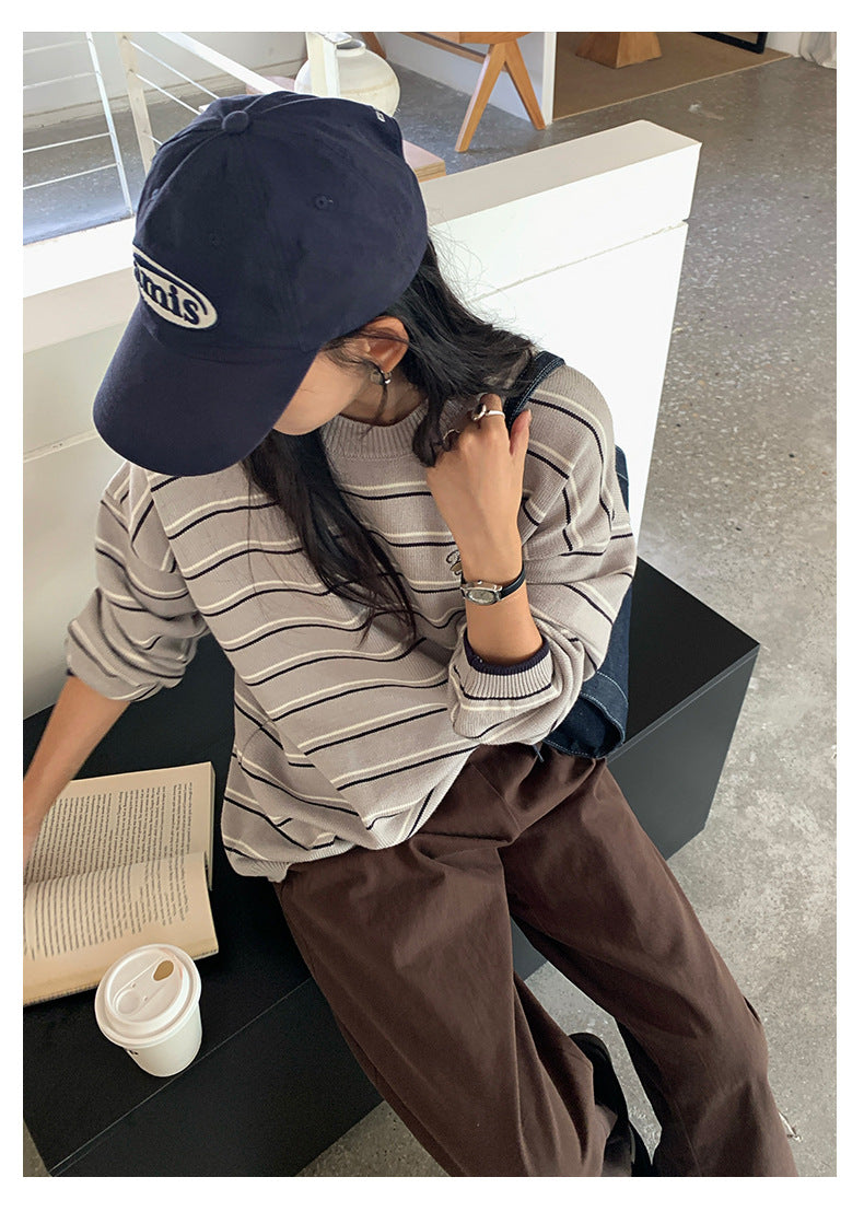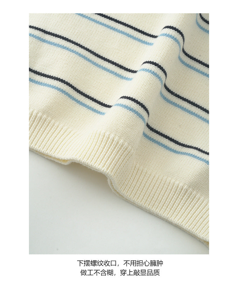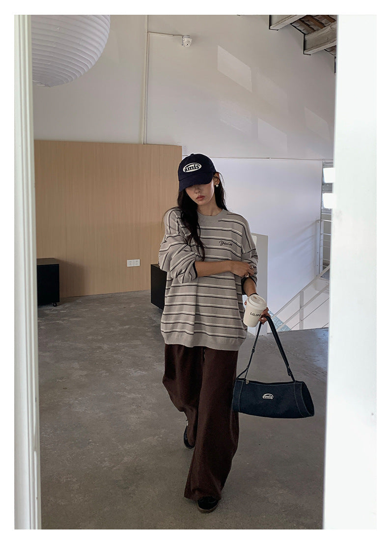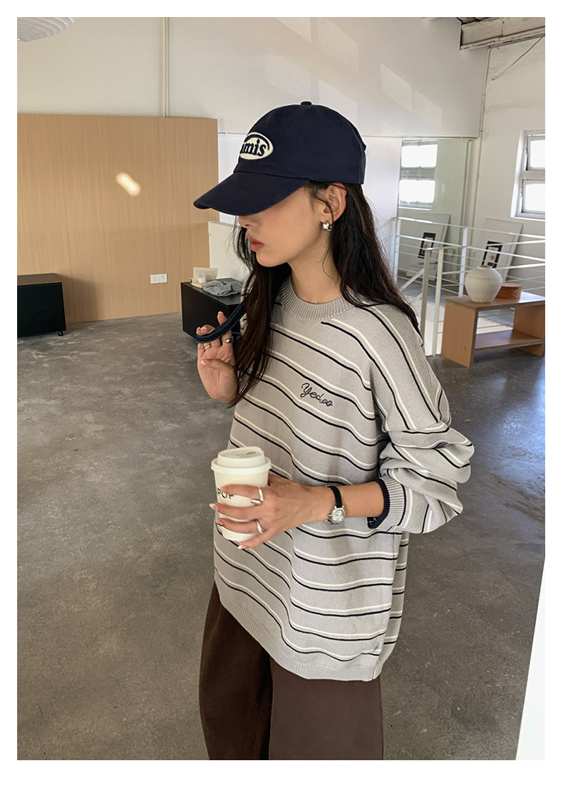 【H5454】實拍復古鬆弛感條紋刺繡針織毛衣250923