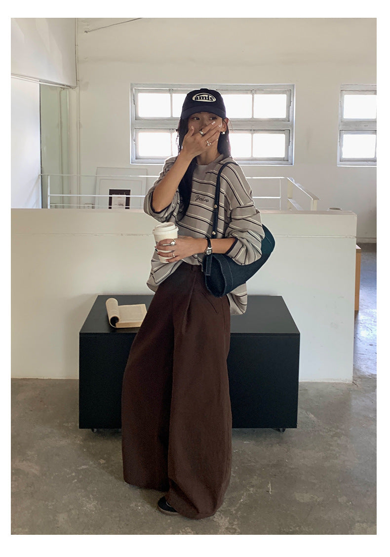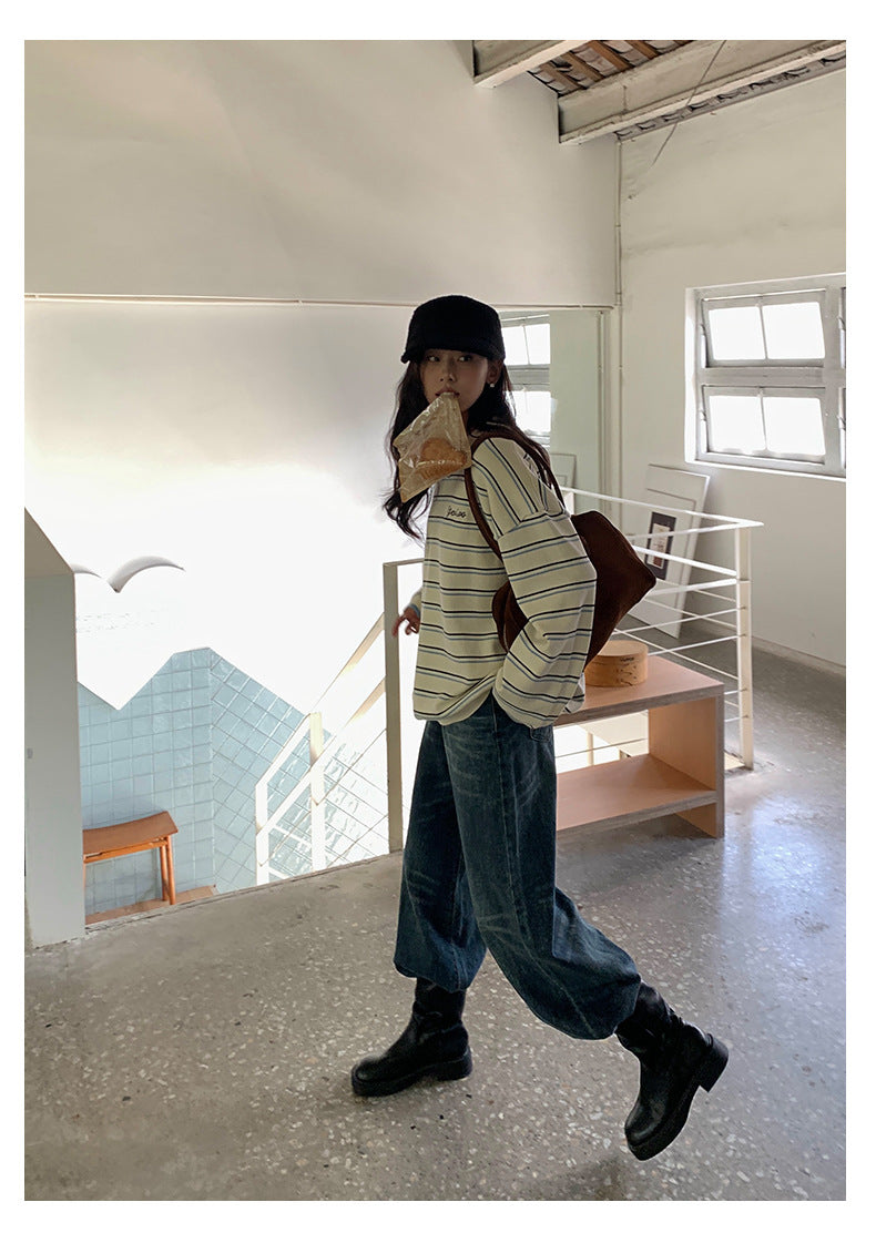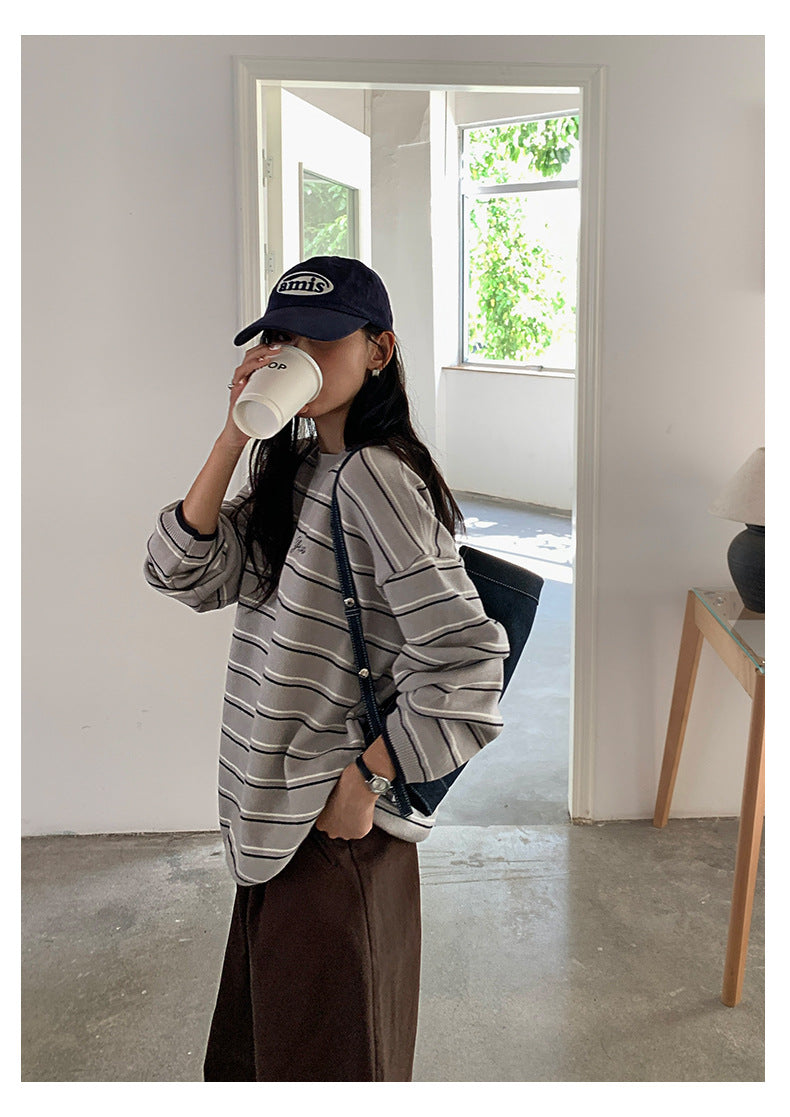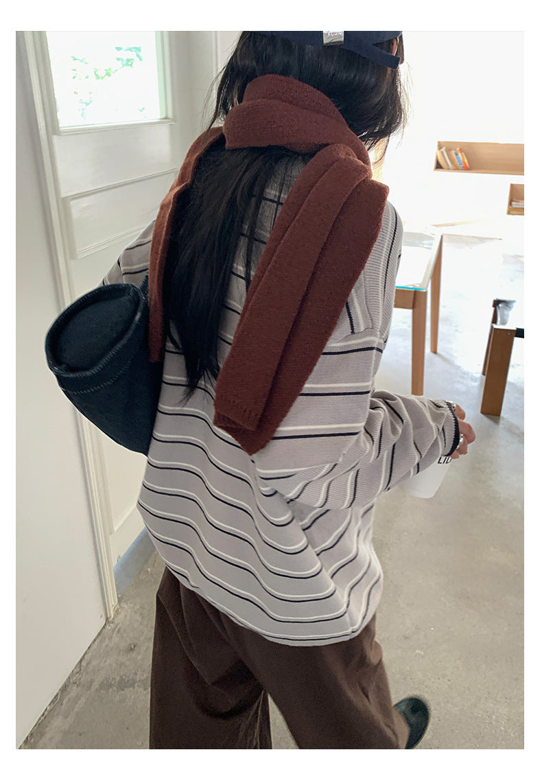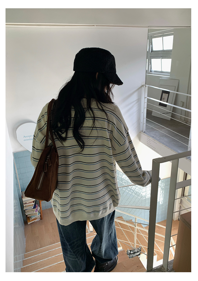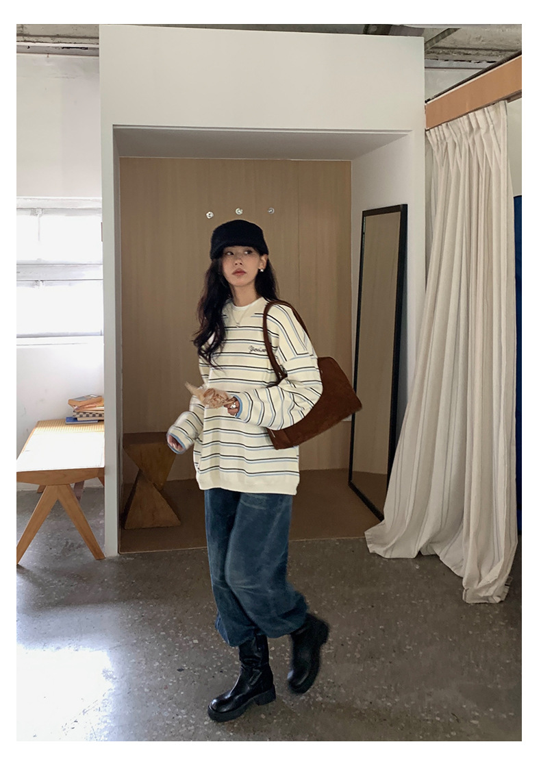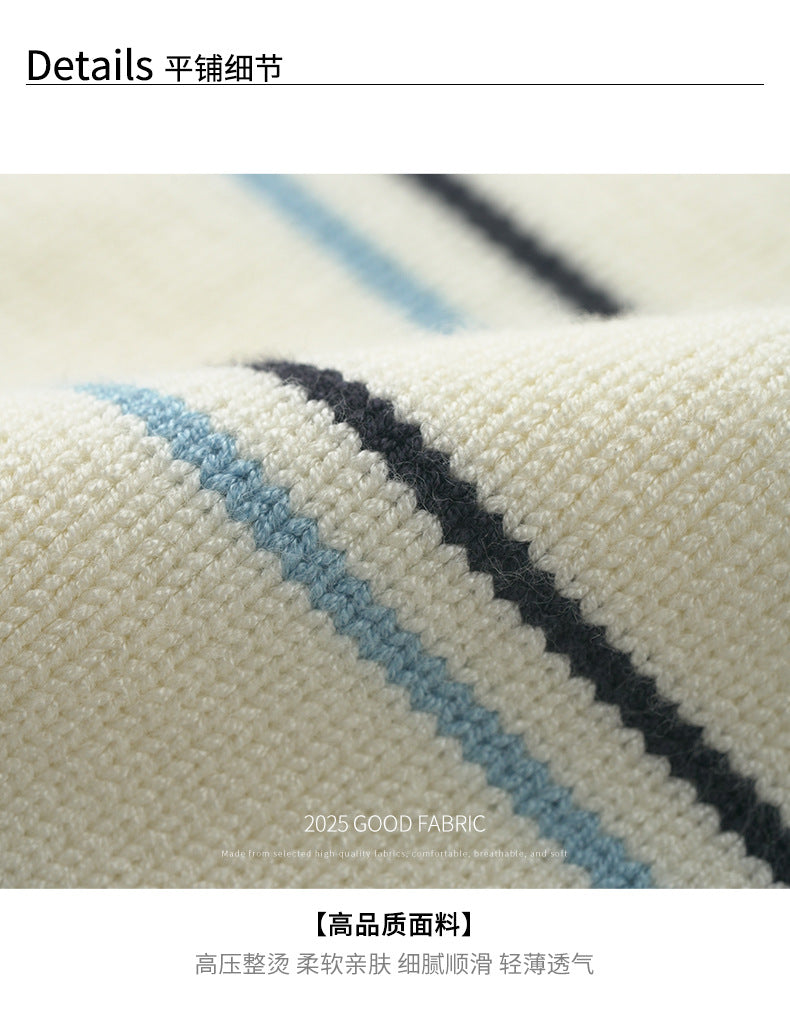 【H5454】實拍復古鬆弛感條紋刺繡針織毛衣250923