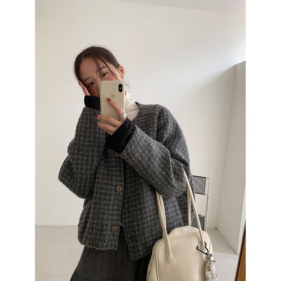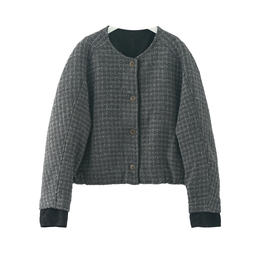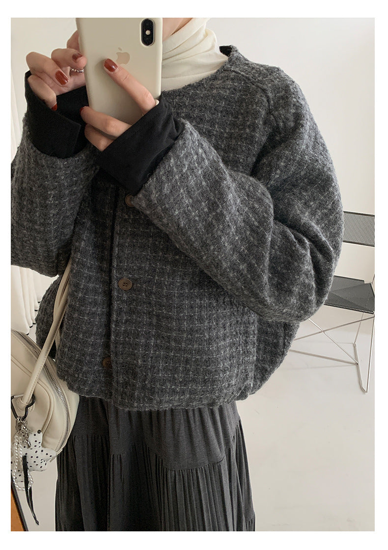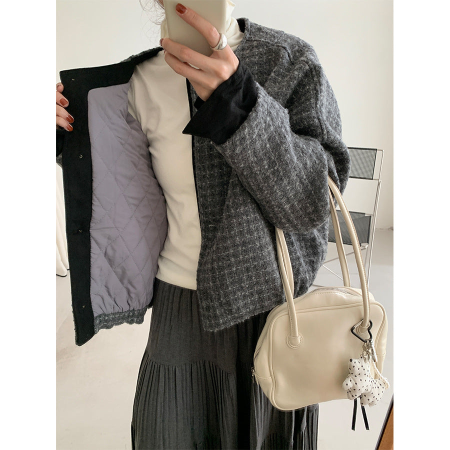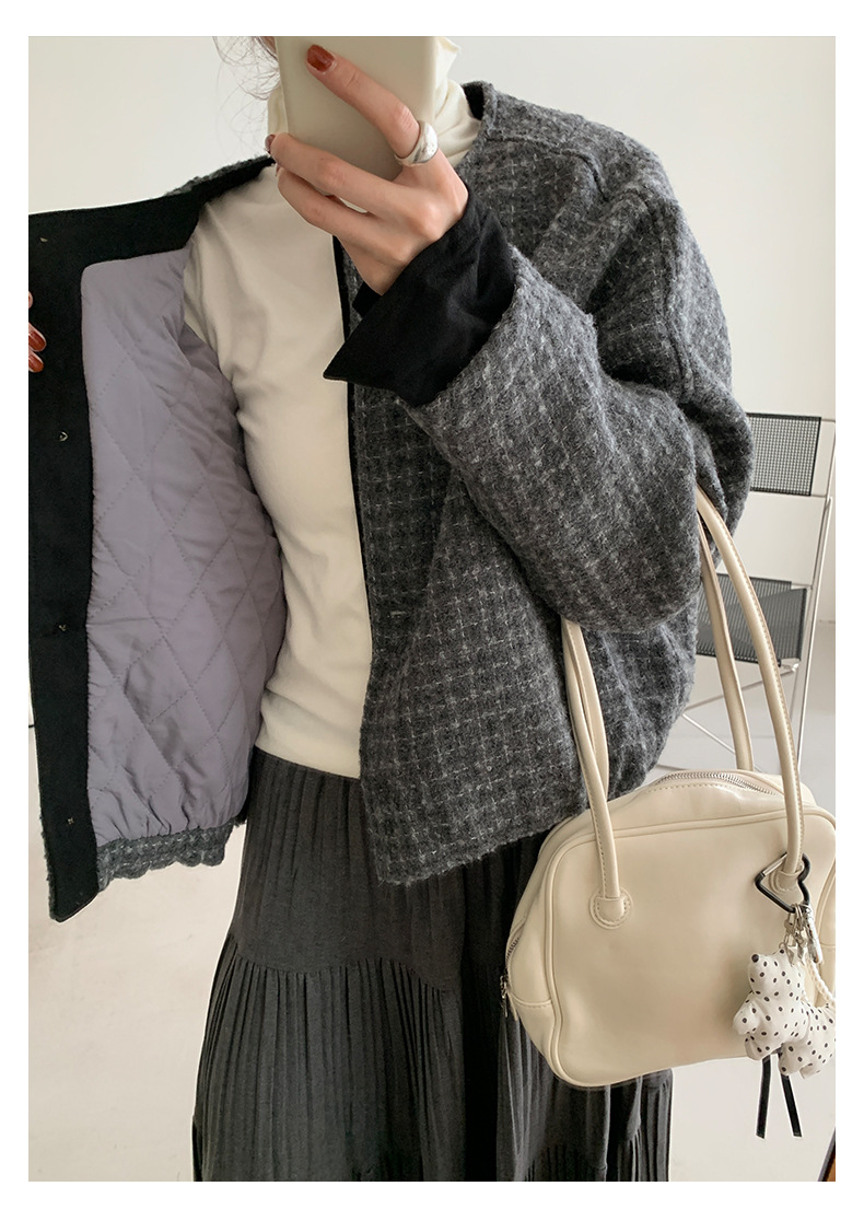 【H5475】實拍小香風粗花呢氣質保暖夾棉外套251109