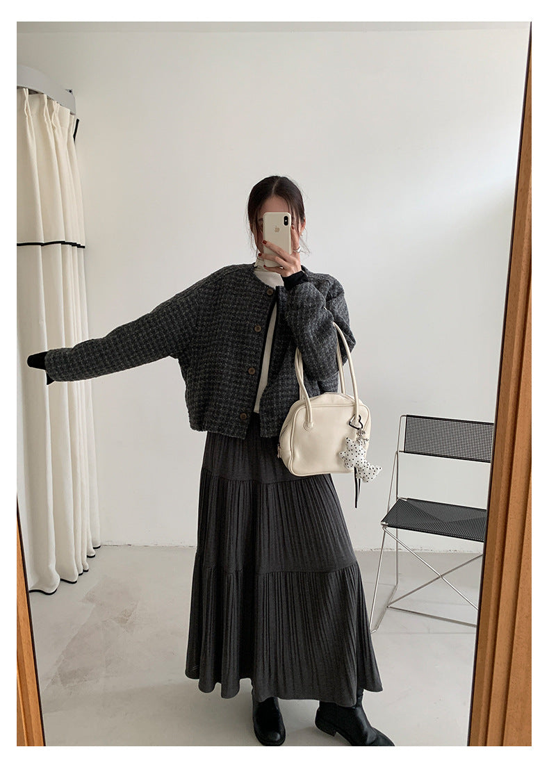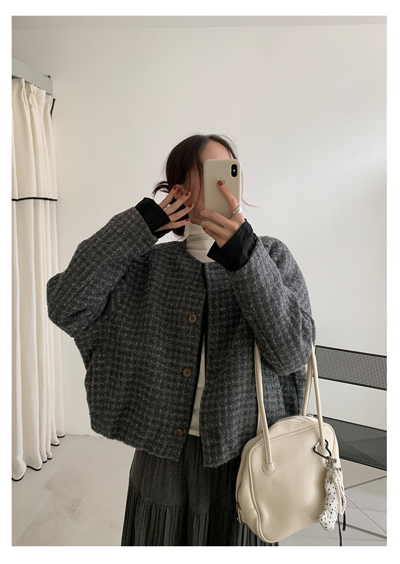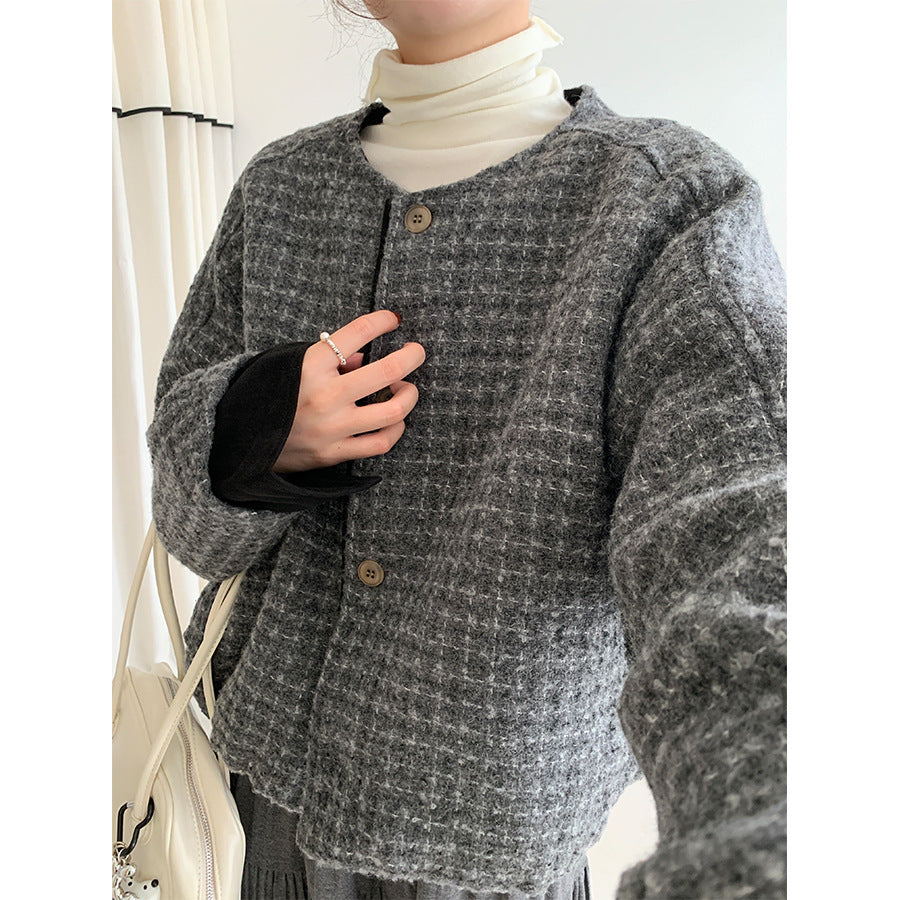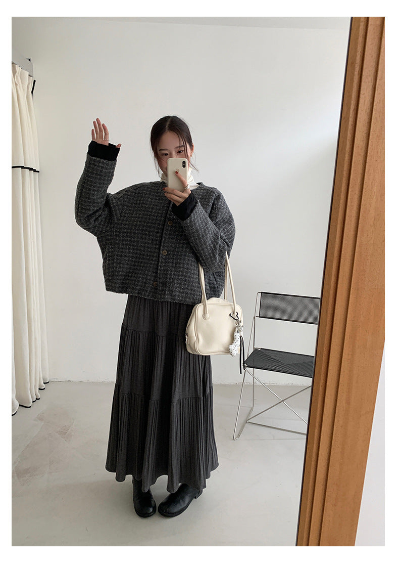 【H5475】實拍小香風粗花呢氣質保暖夾棉外套251109