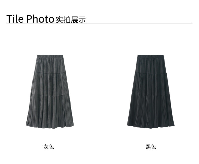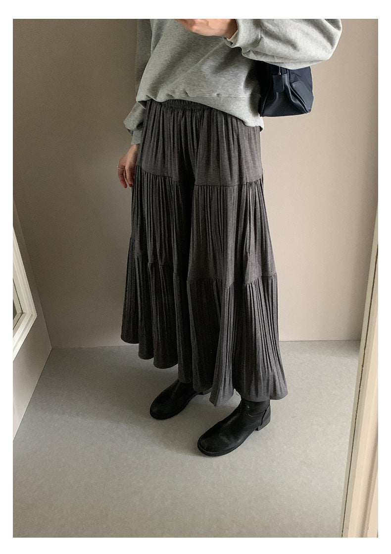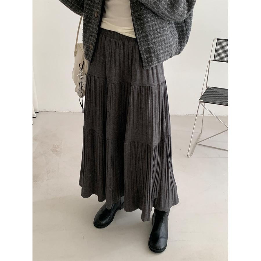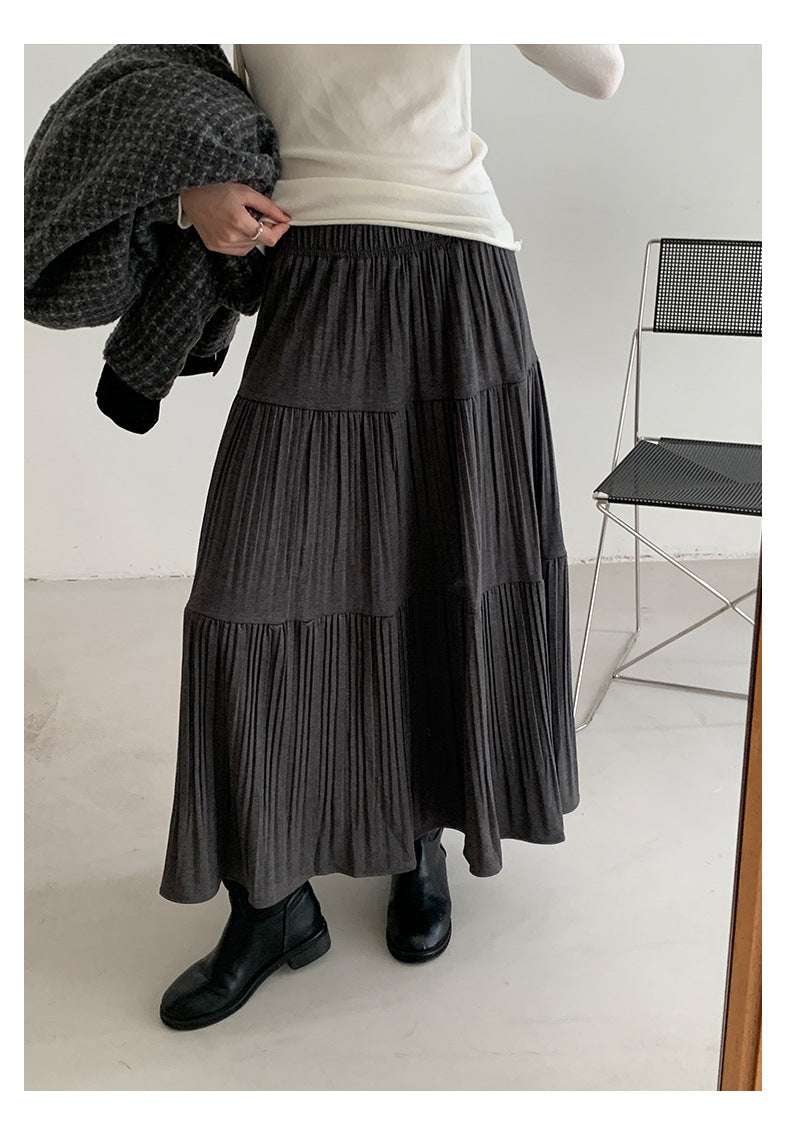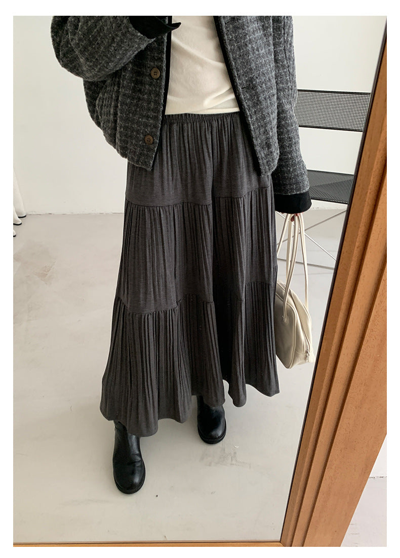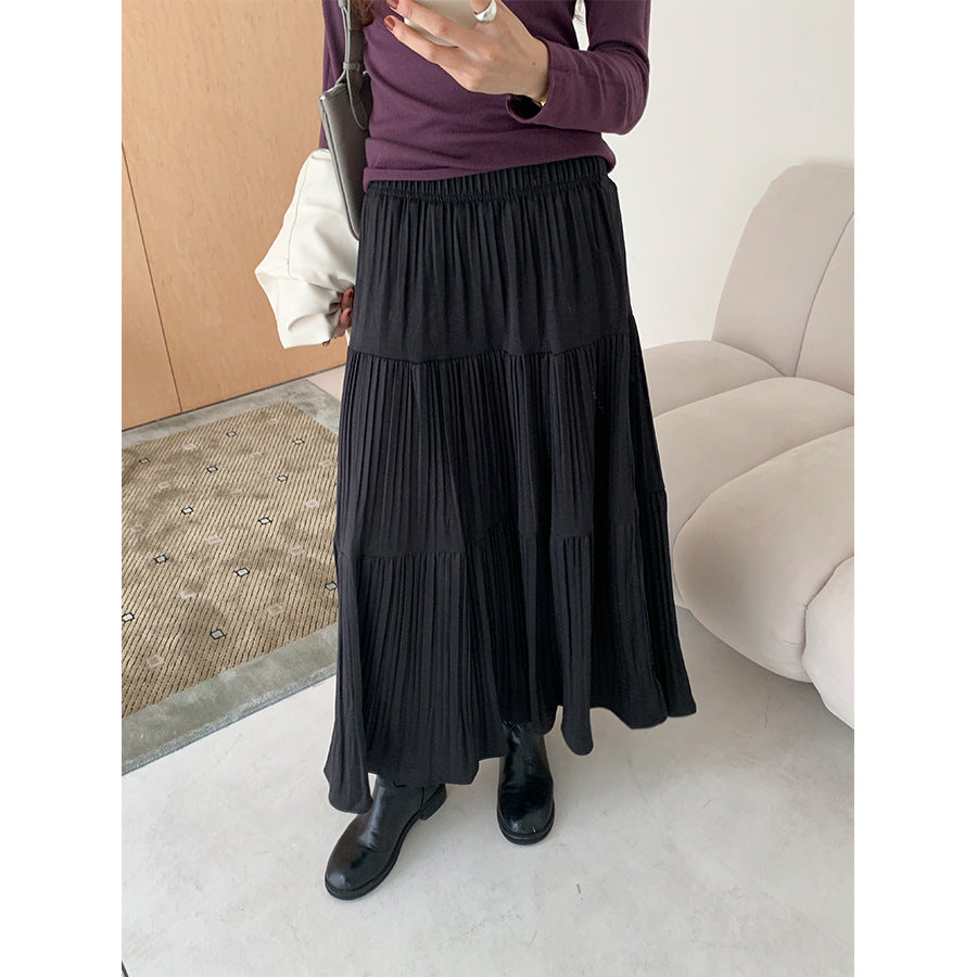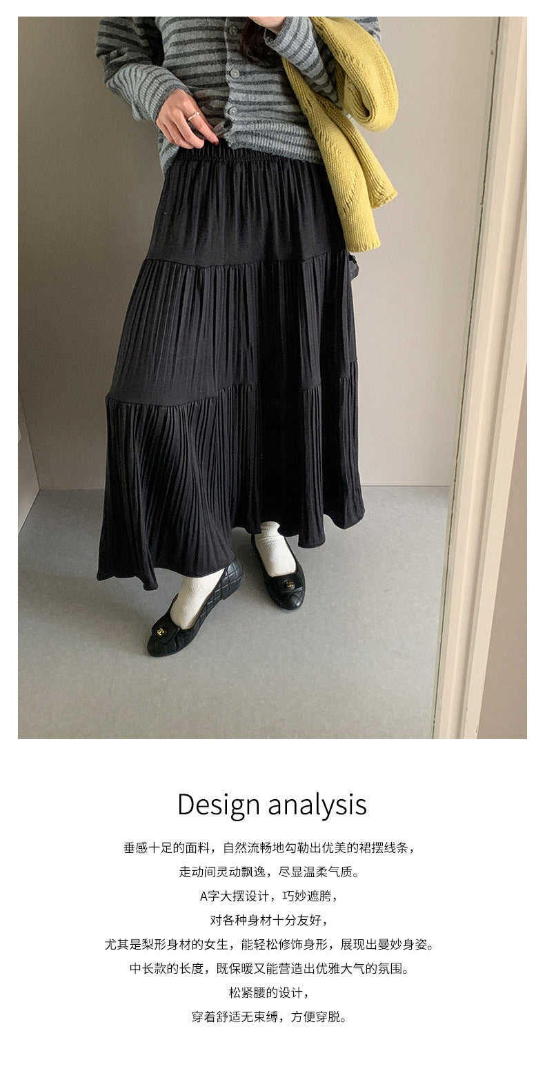 【H5476】實拍秋冬質感簡約細摺鬆緊腰a字傘裙251109