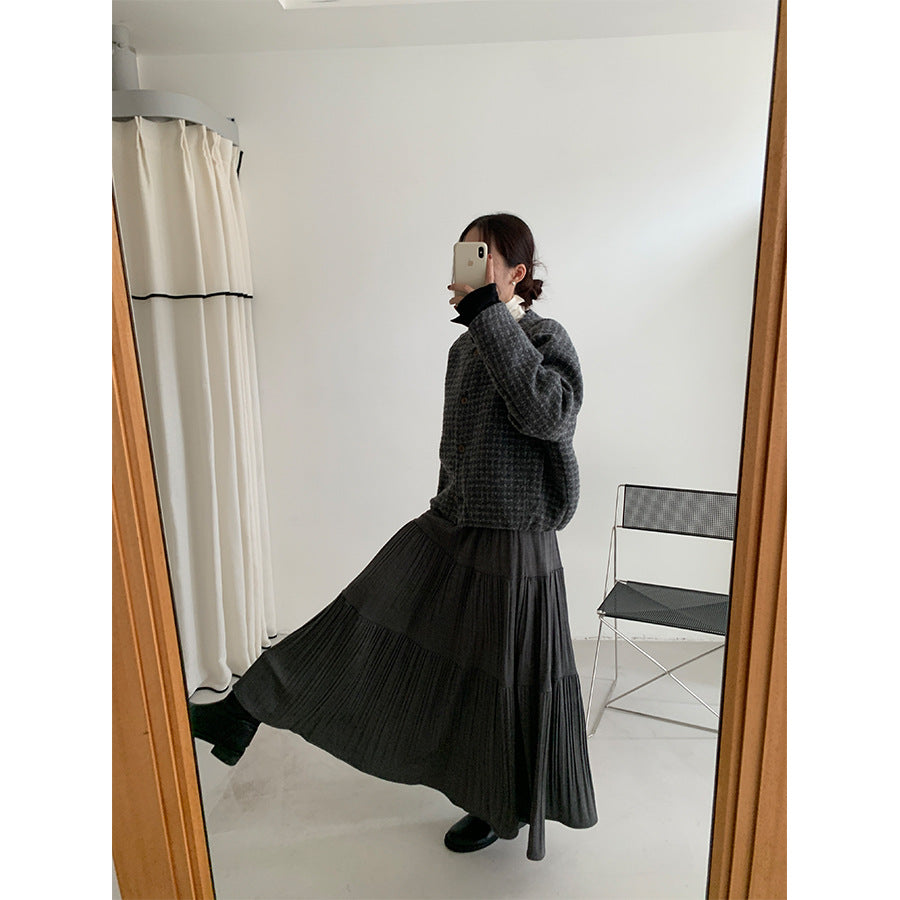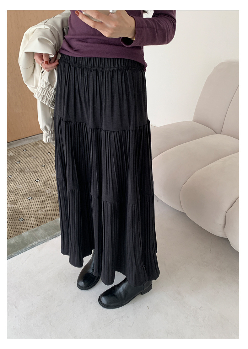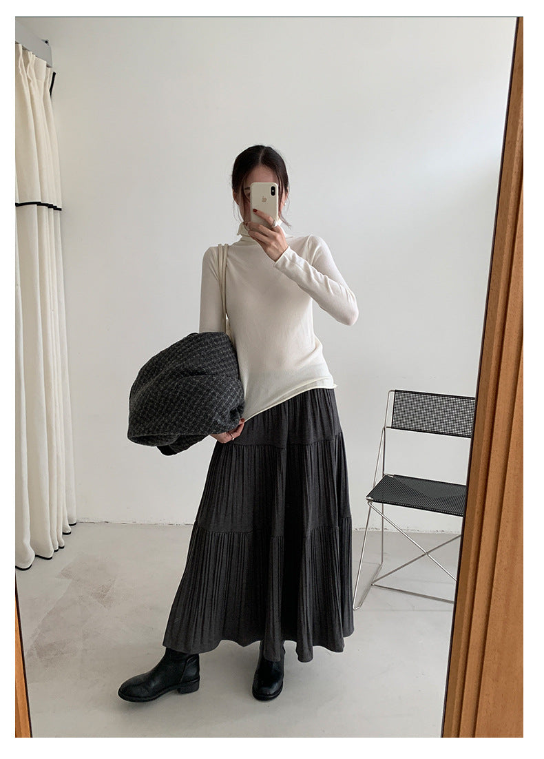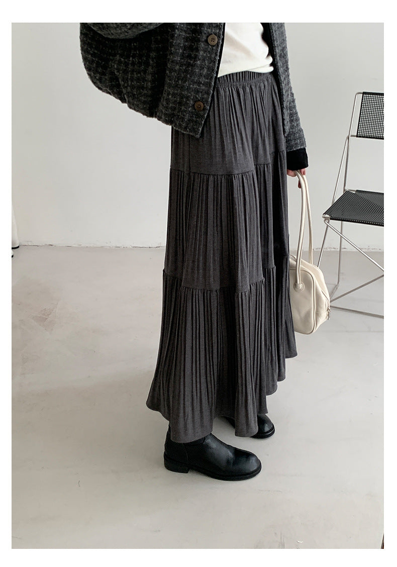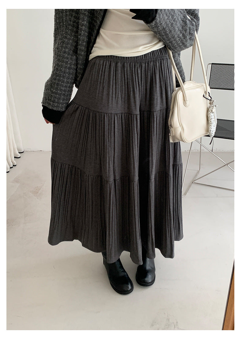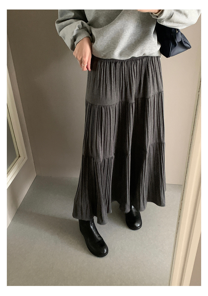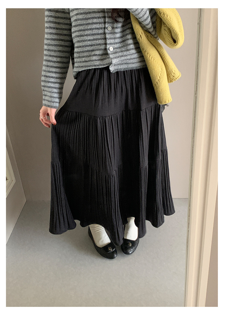 【H5476】實拍秋冬質感簡約細摺鬆緊腰a字傘裙251109