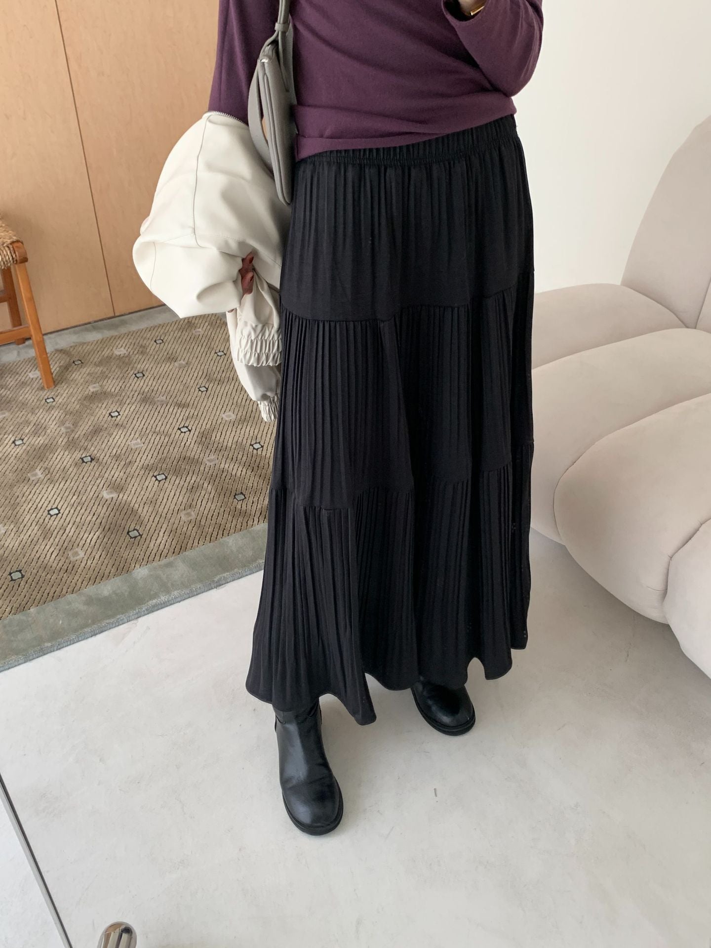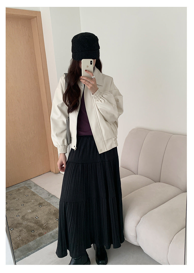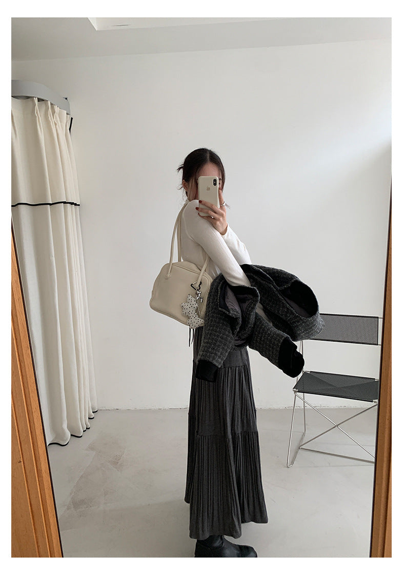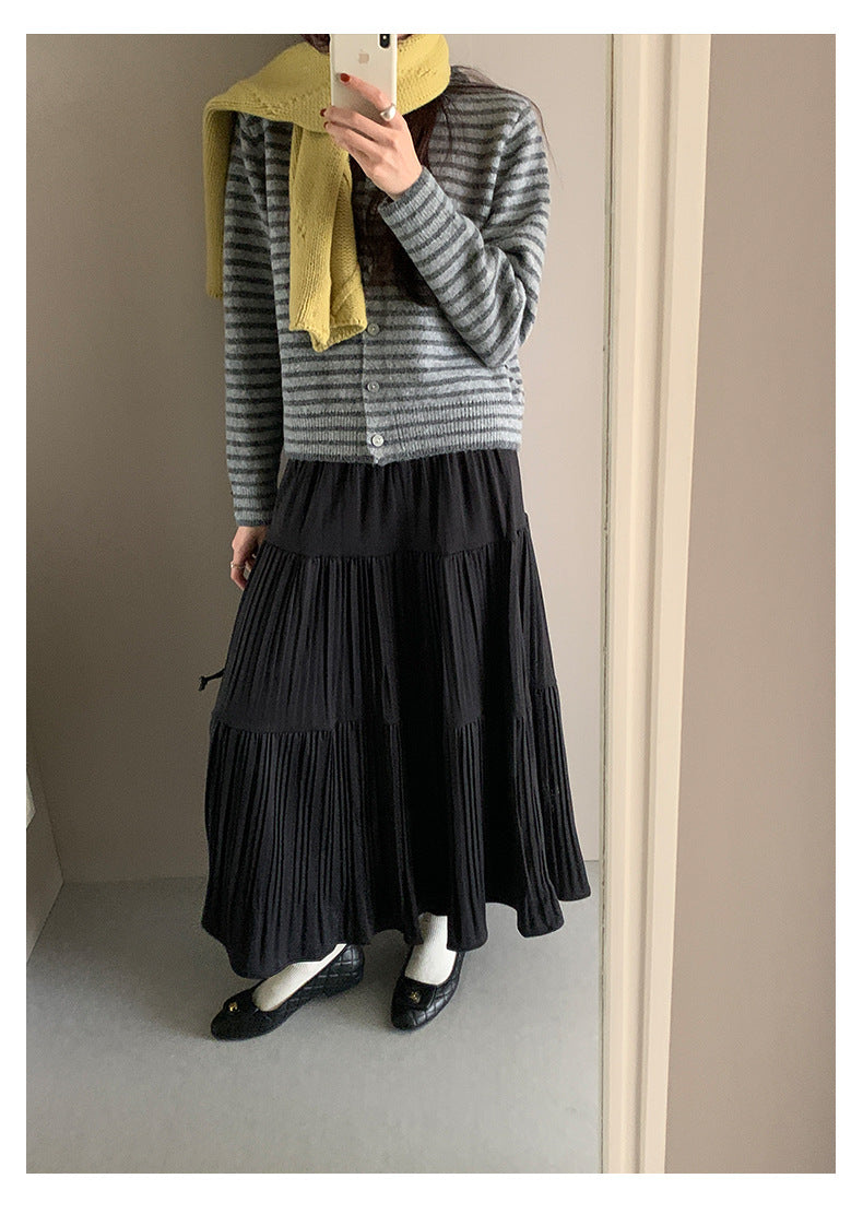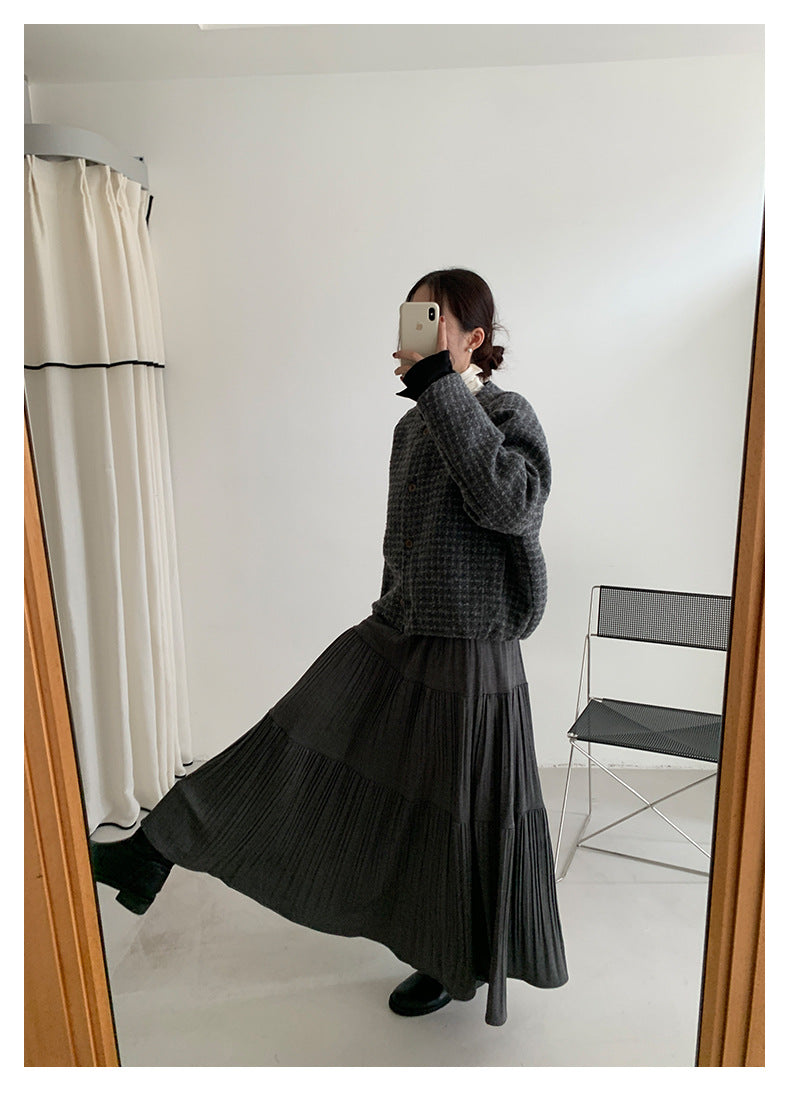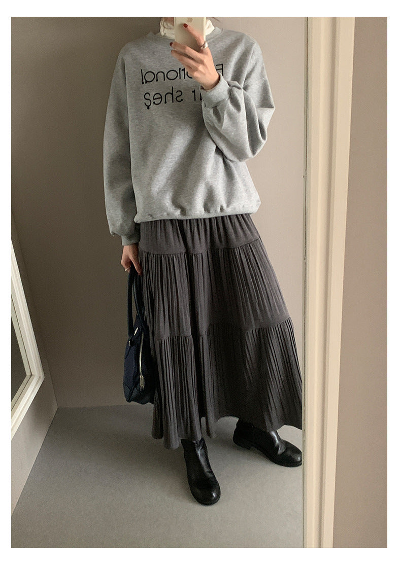 【H5476】實拍秋冬質感簡約細摺鬆緊腰a字傘裙251109