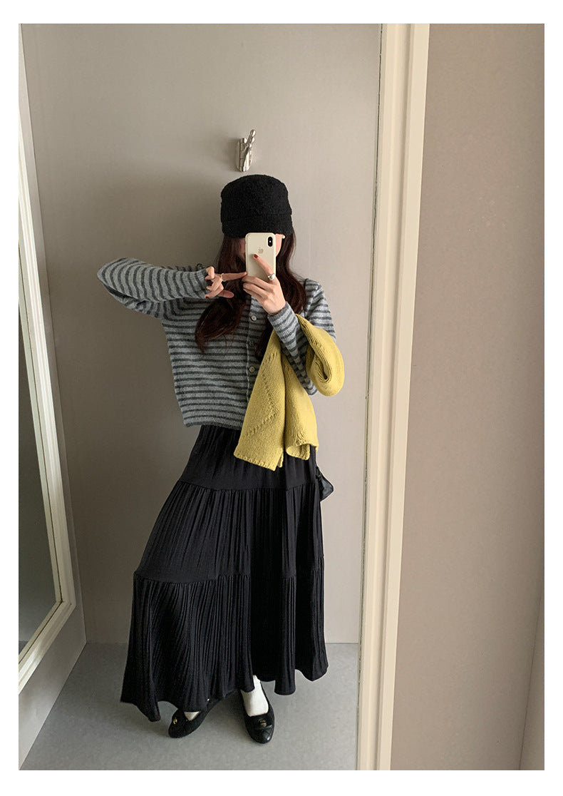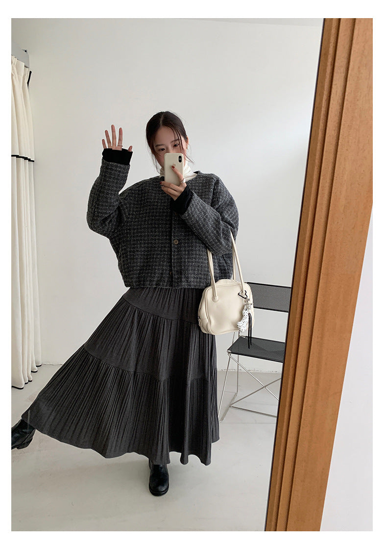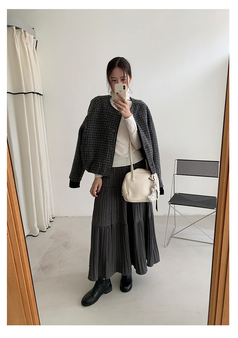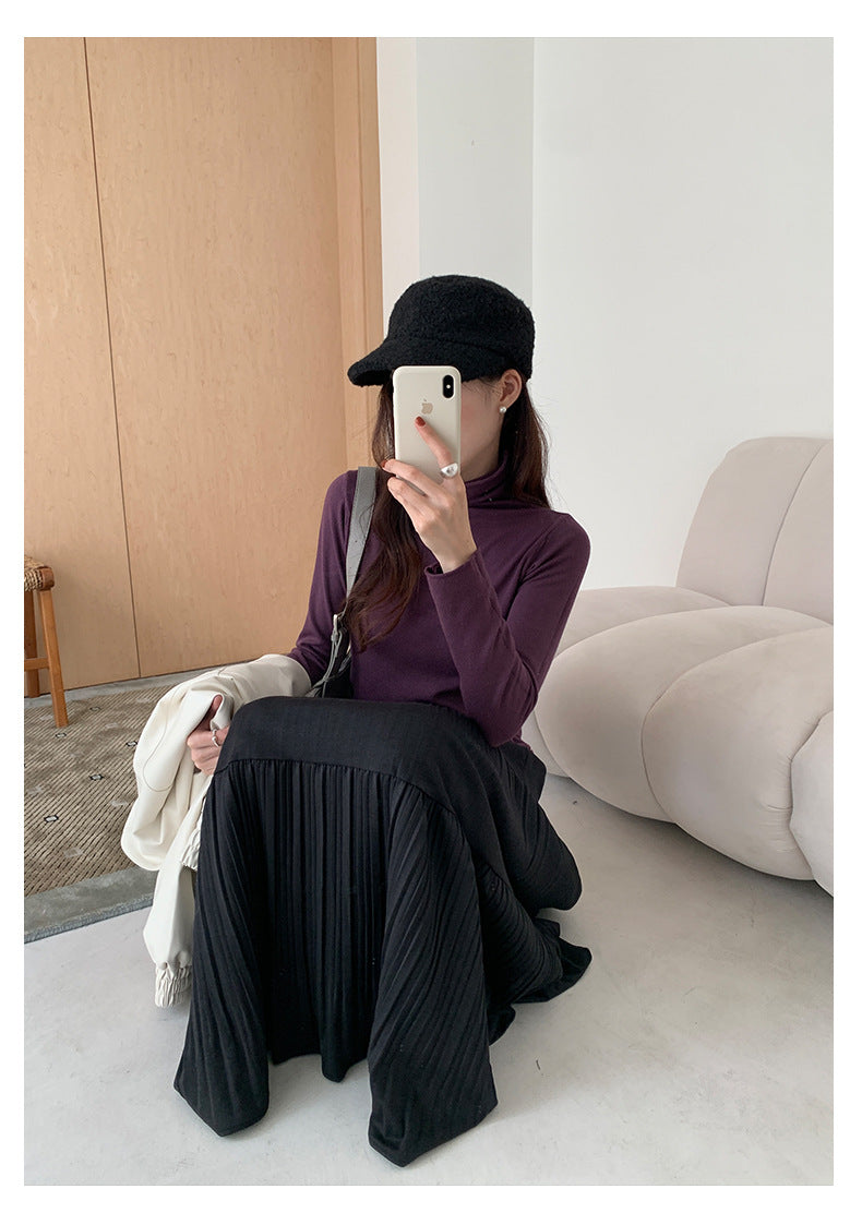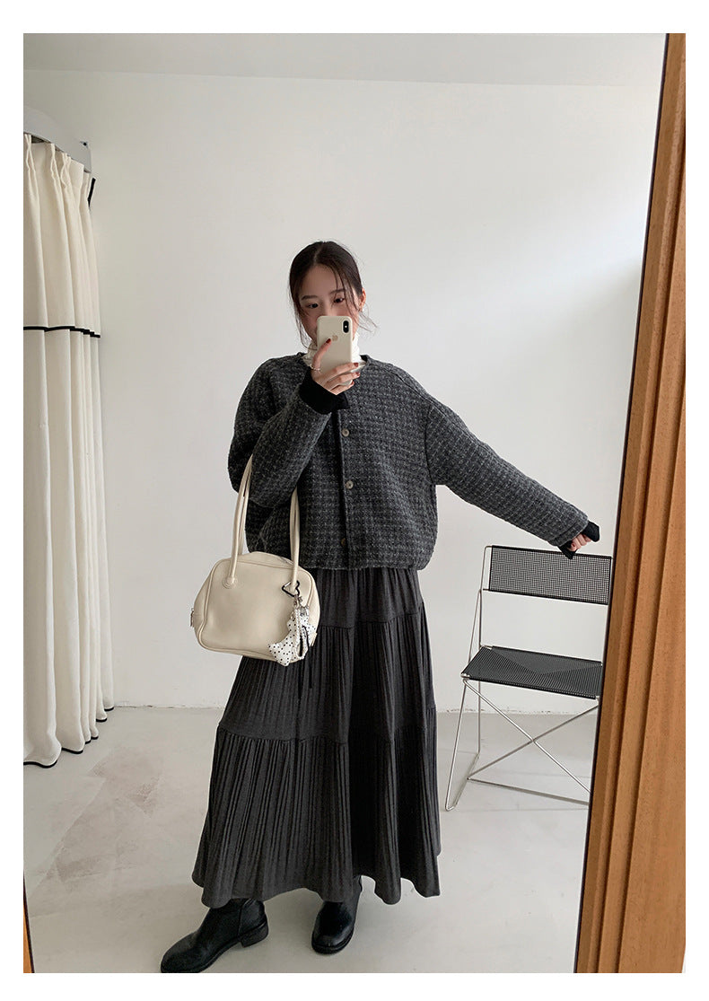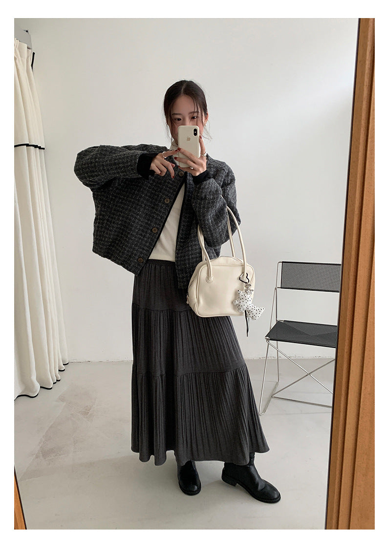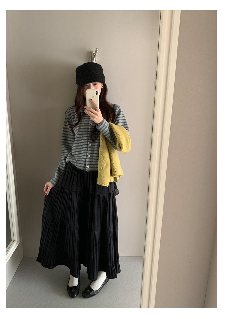 【H5476】實拍秋冬質感簡約細摺鬆緊腰a字傘裙251109