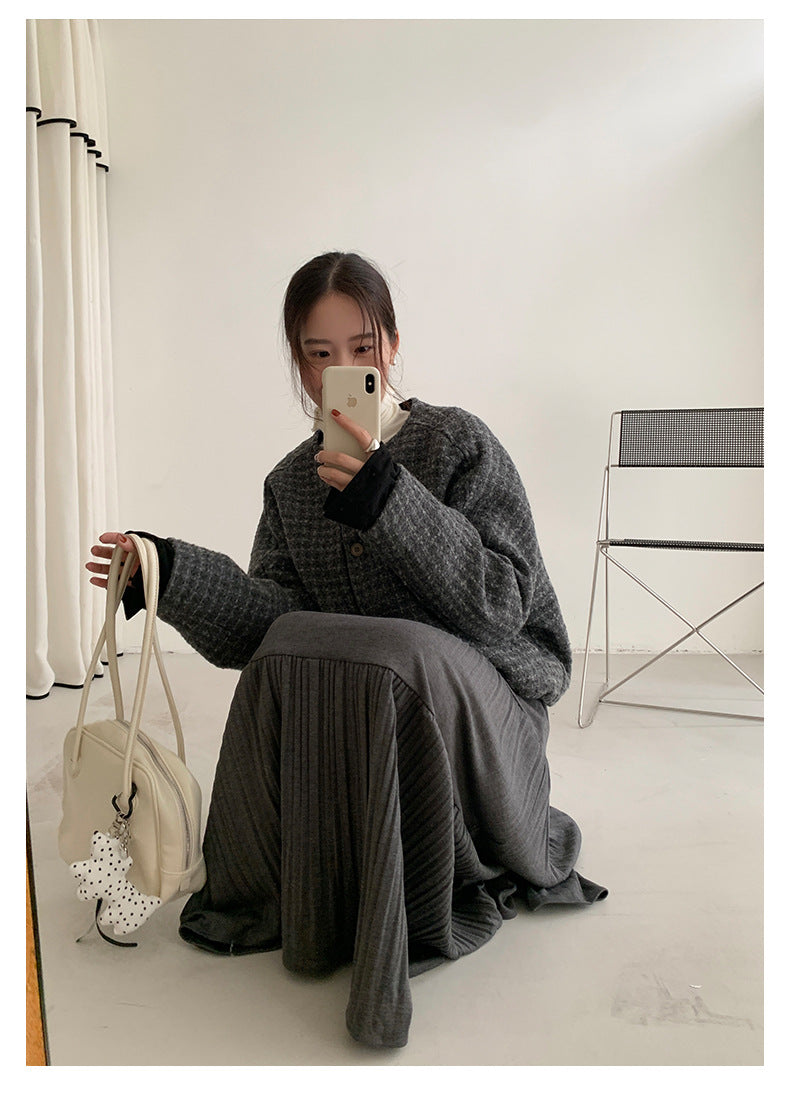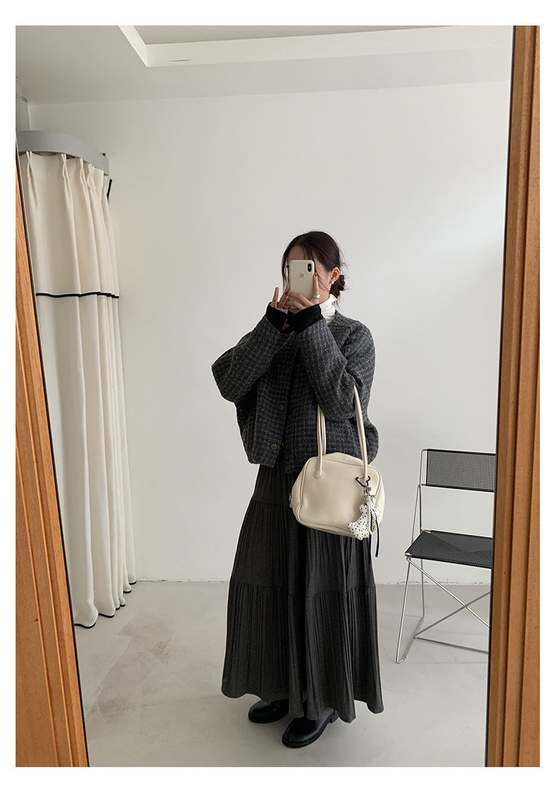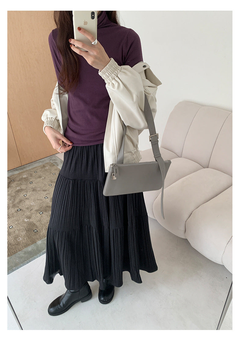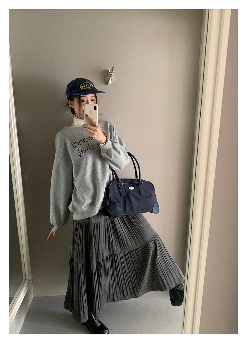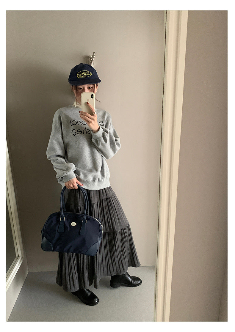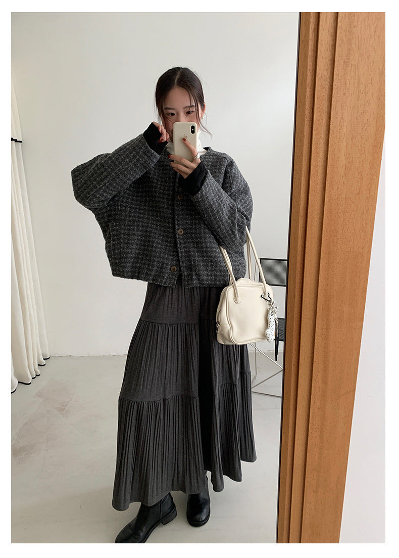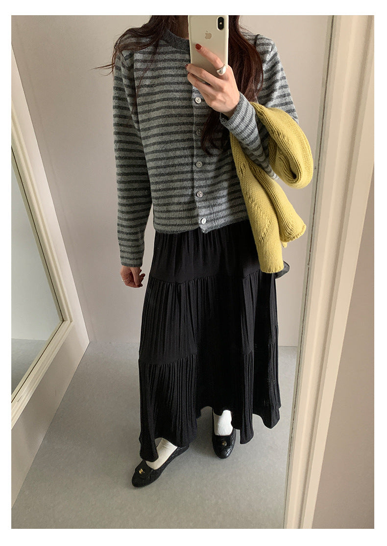 【H5476】實拍秋冬質感簡約細摺鬆緊腰a字傘裙251109