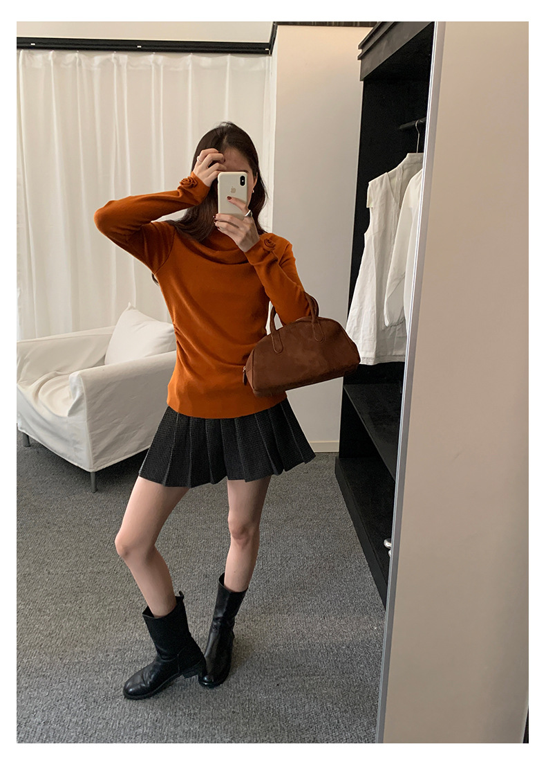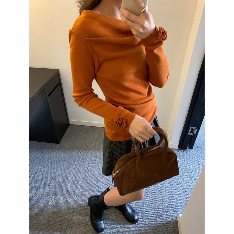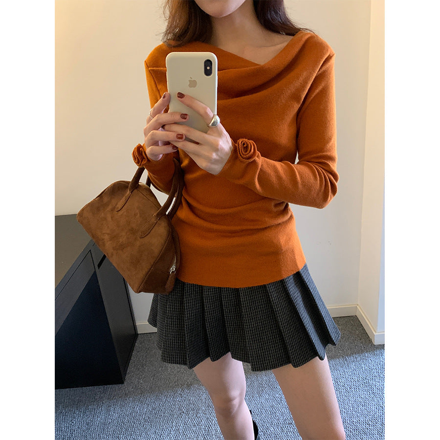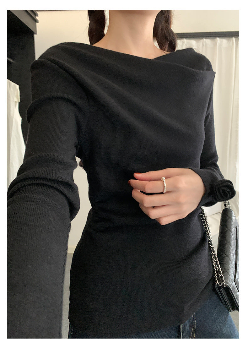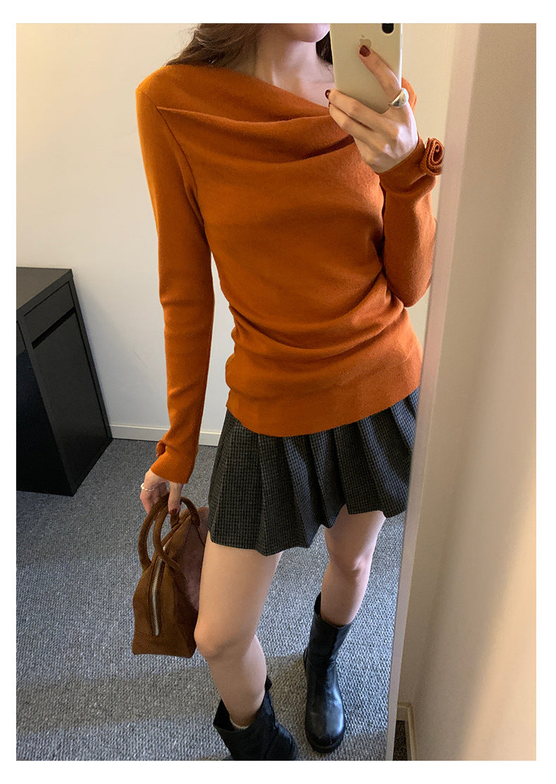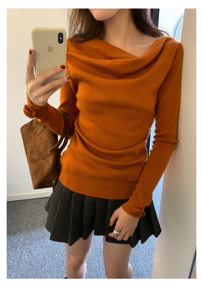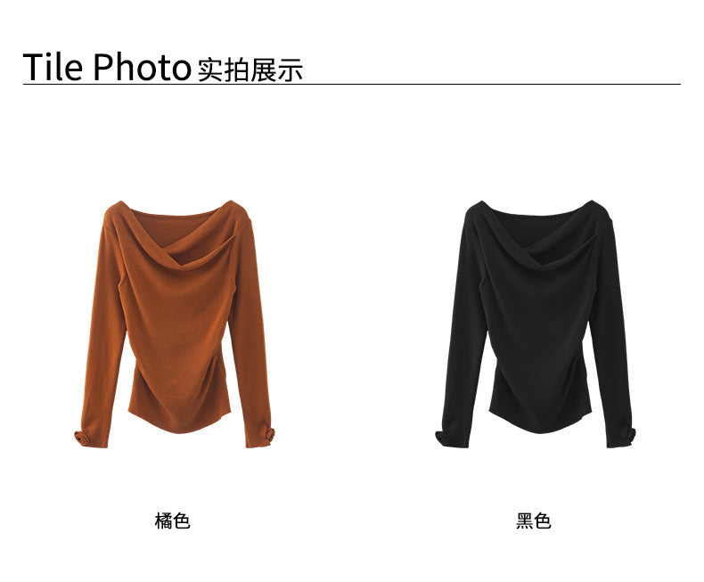【H5487】實拍秋冬褶皺露肩針織衫251109