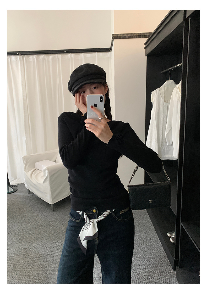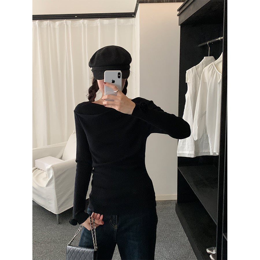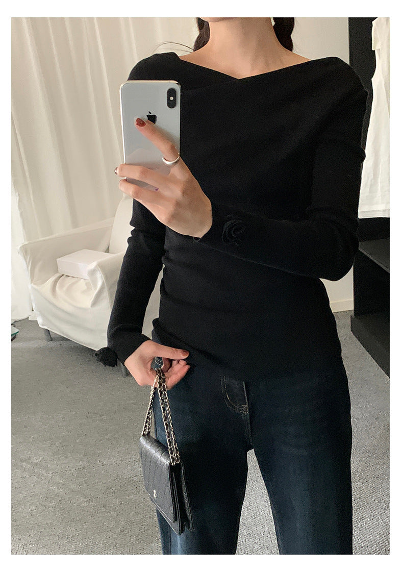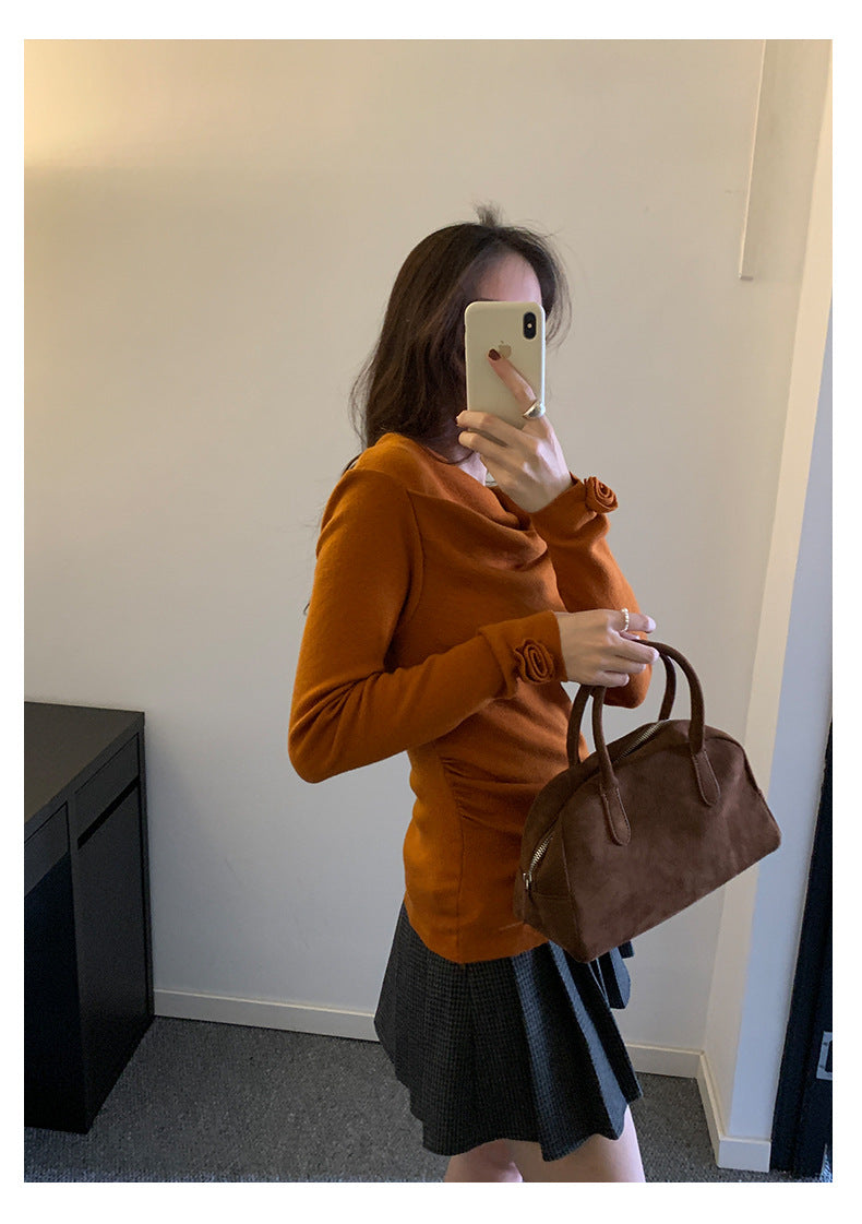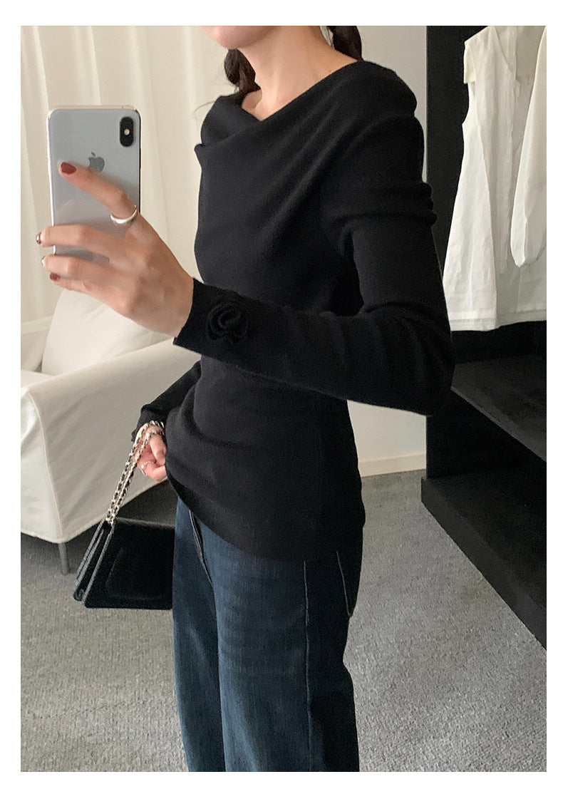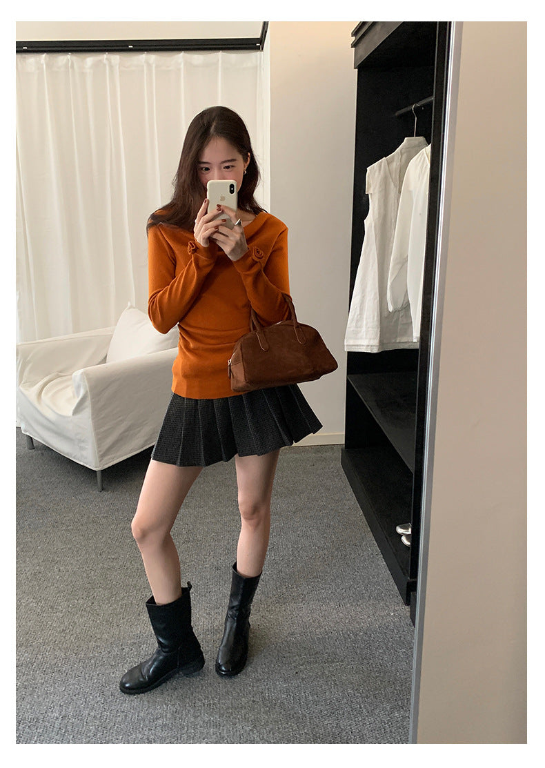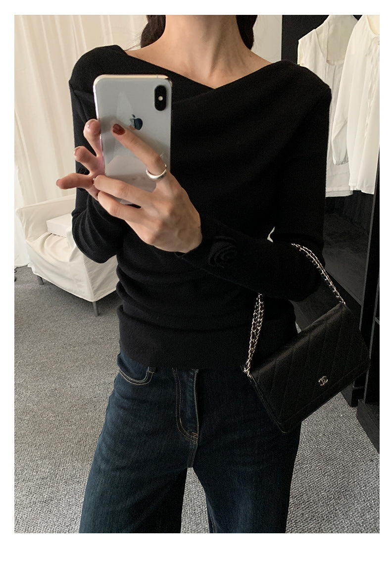 【H5487】實拍秋冬褶皺露肩針織衫251109