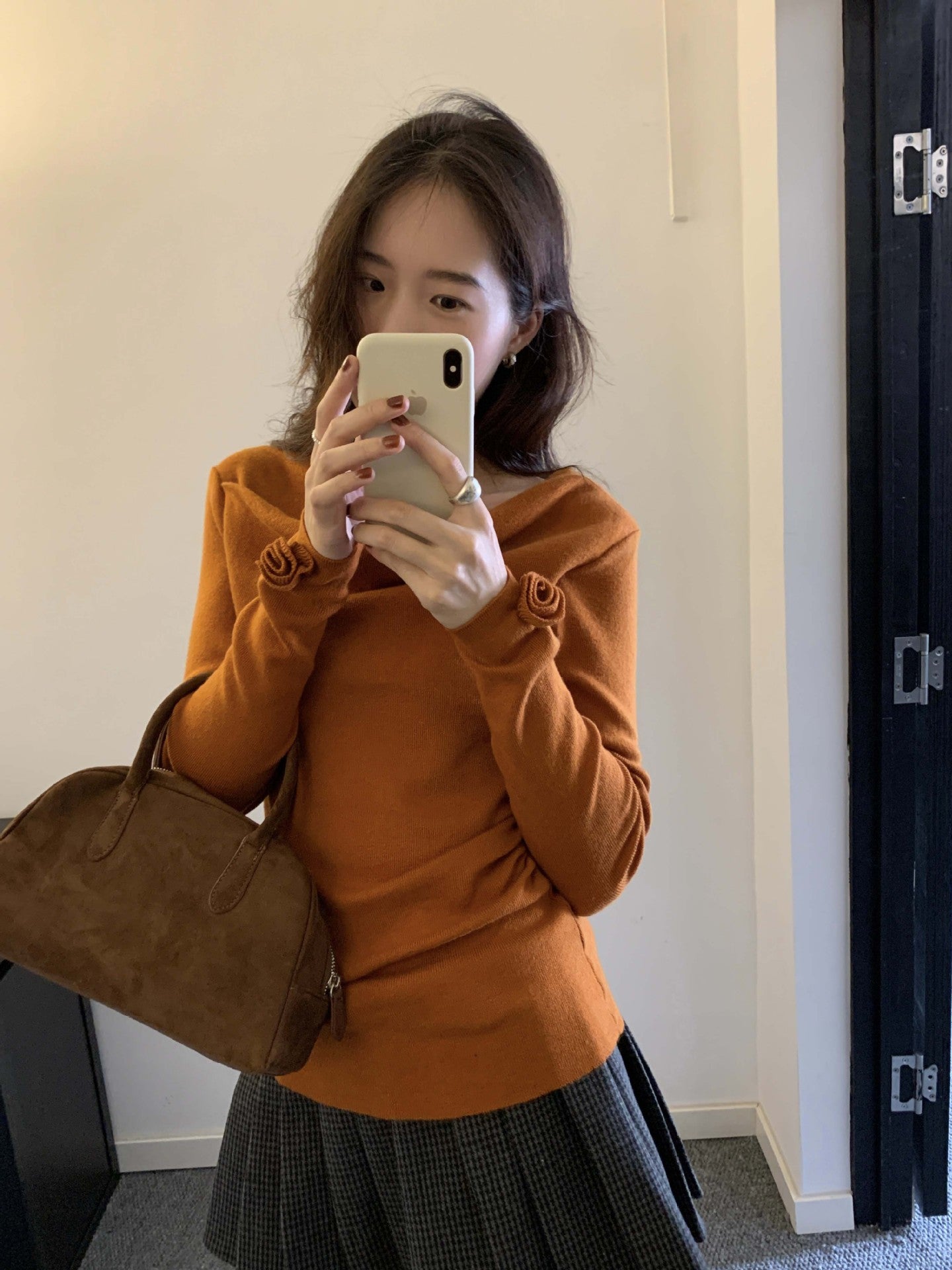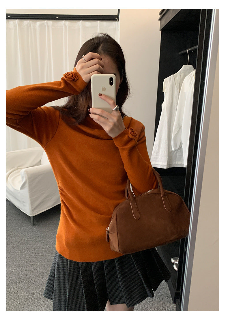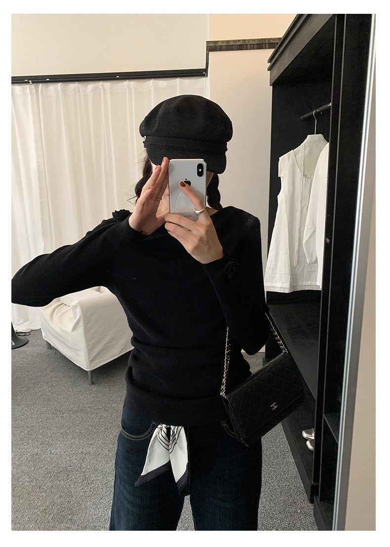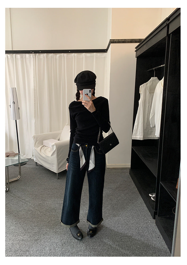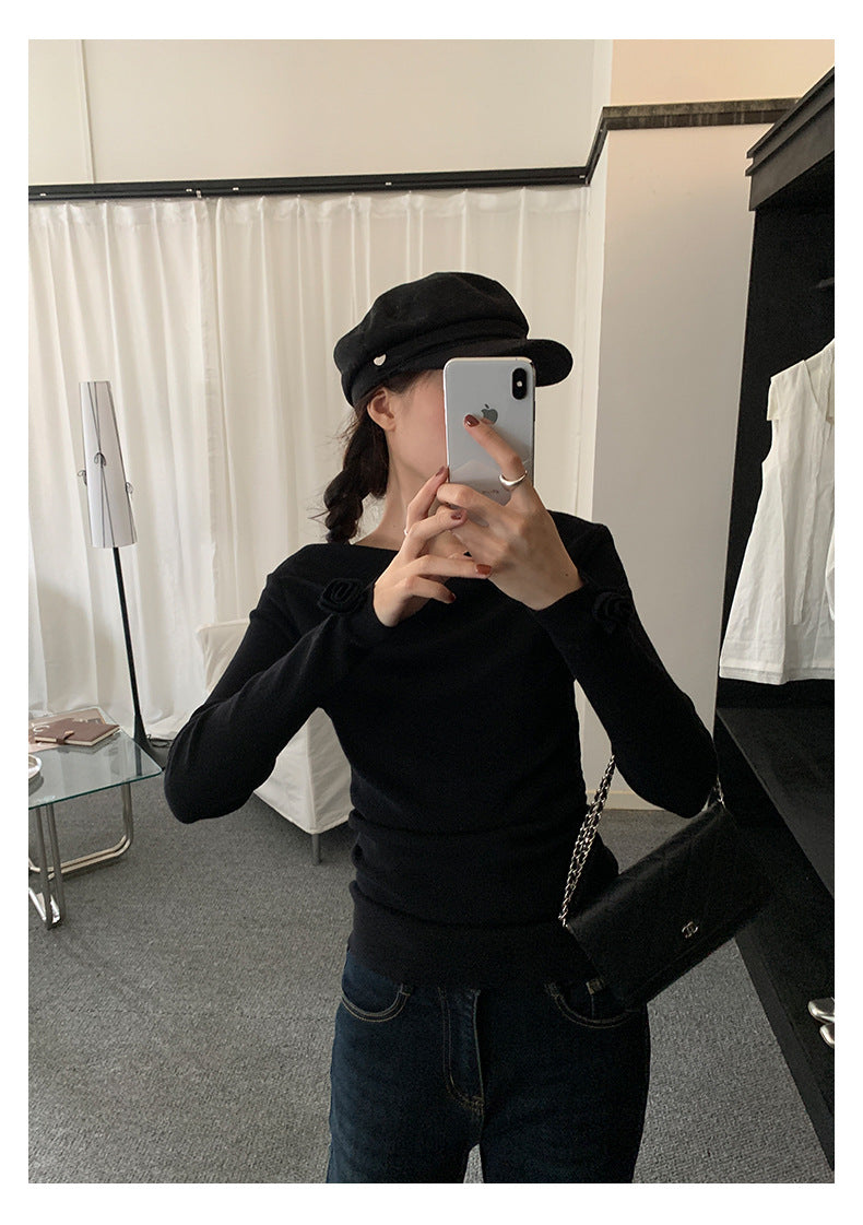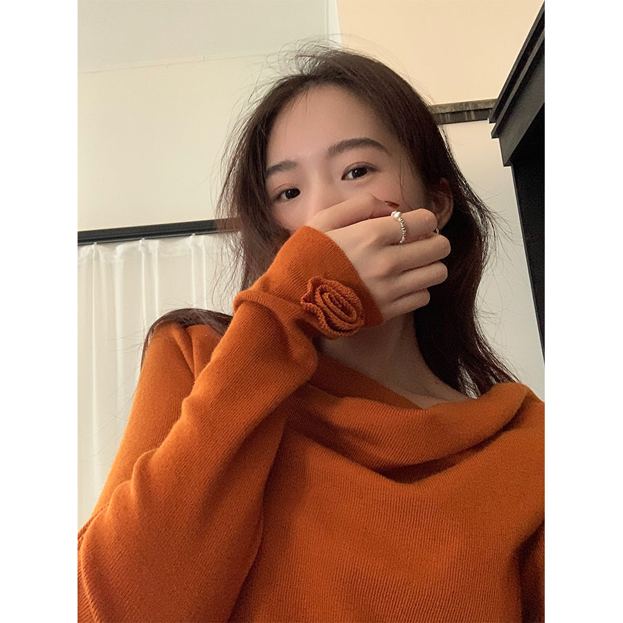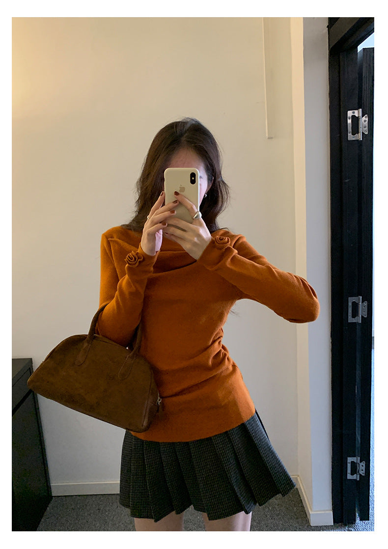 【H5487】實拍秋冬褶皺露肩針織衫251109