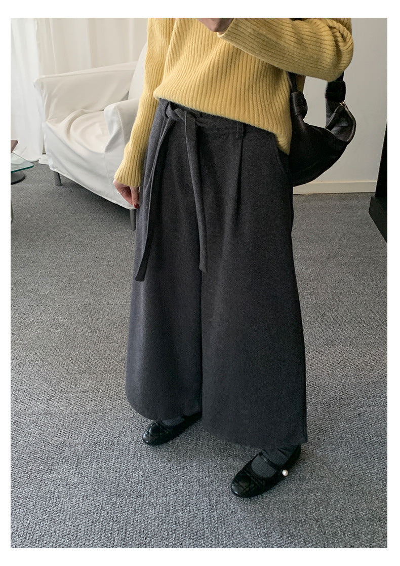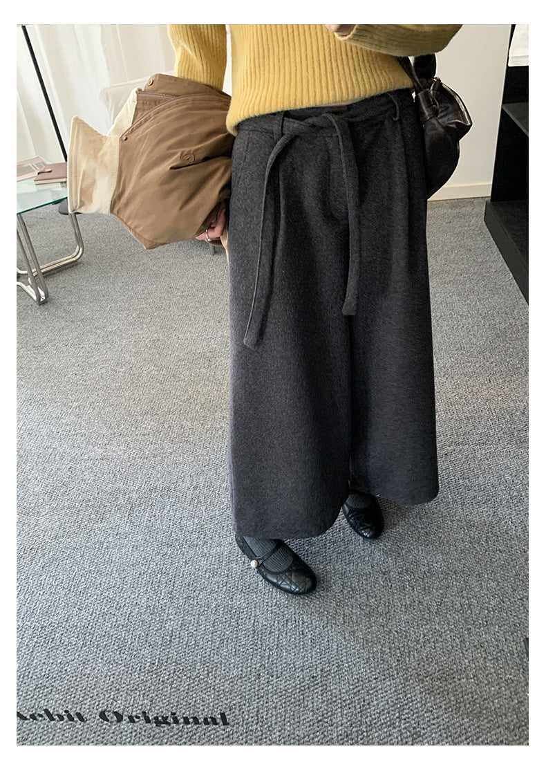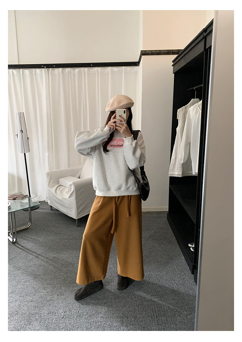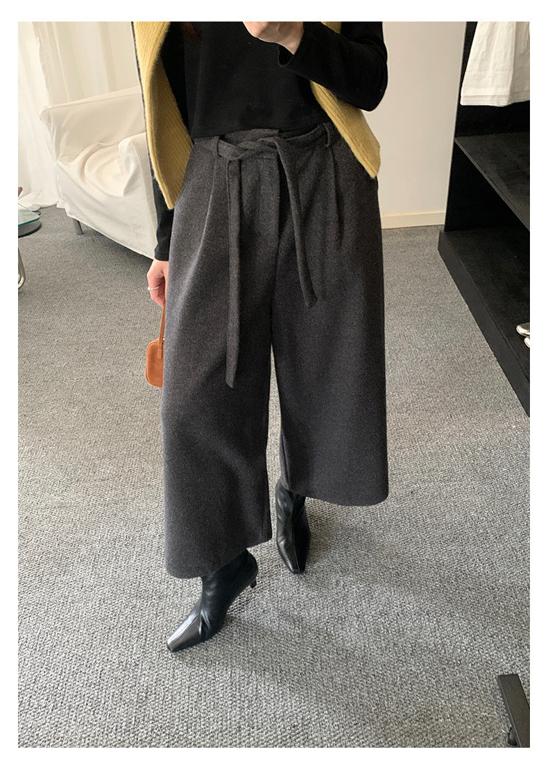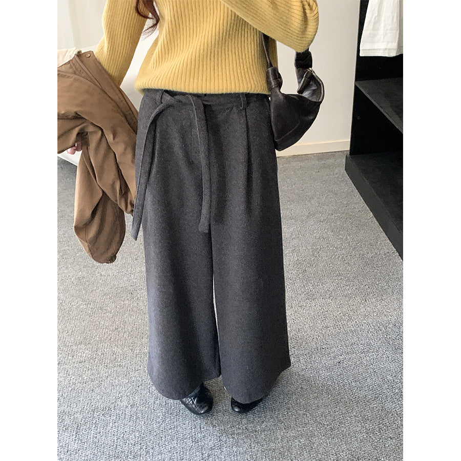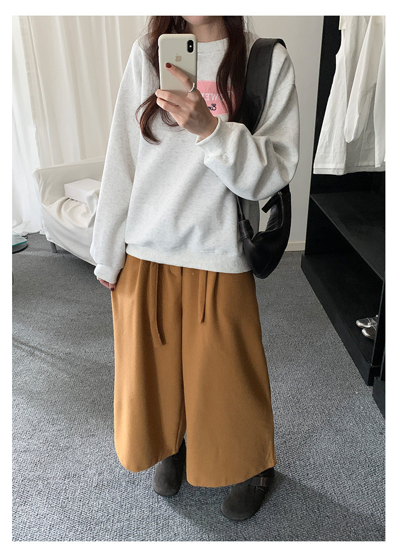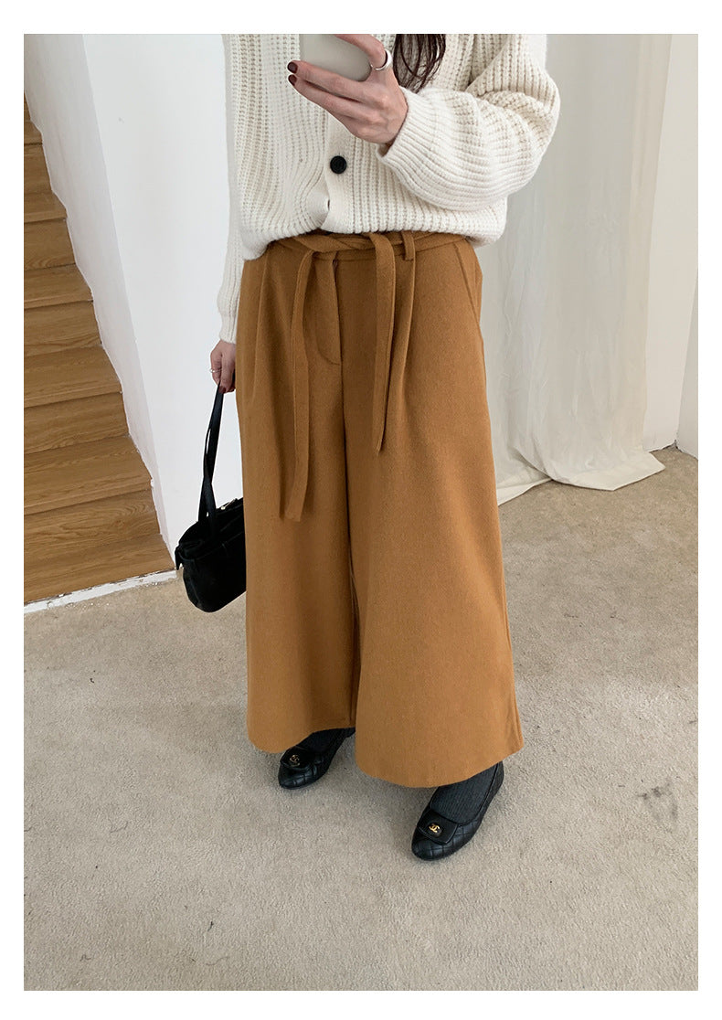 【H5491】實拍秋冬毛呢鬆緊腰加厚闊腿休閒褲251109