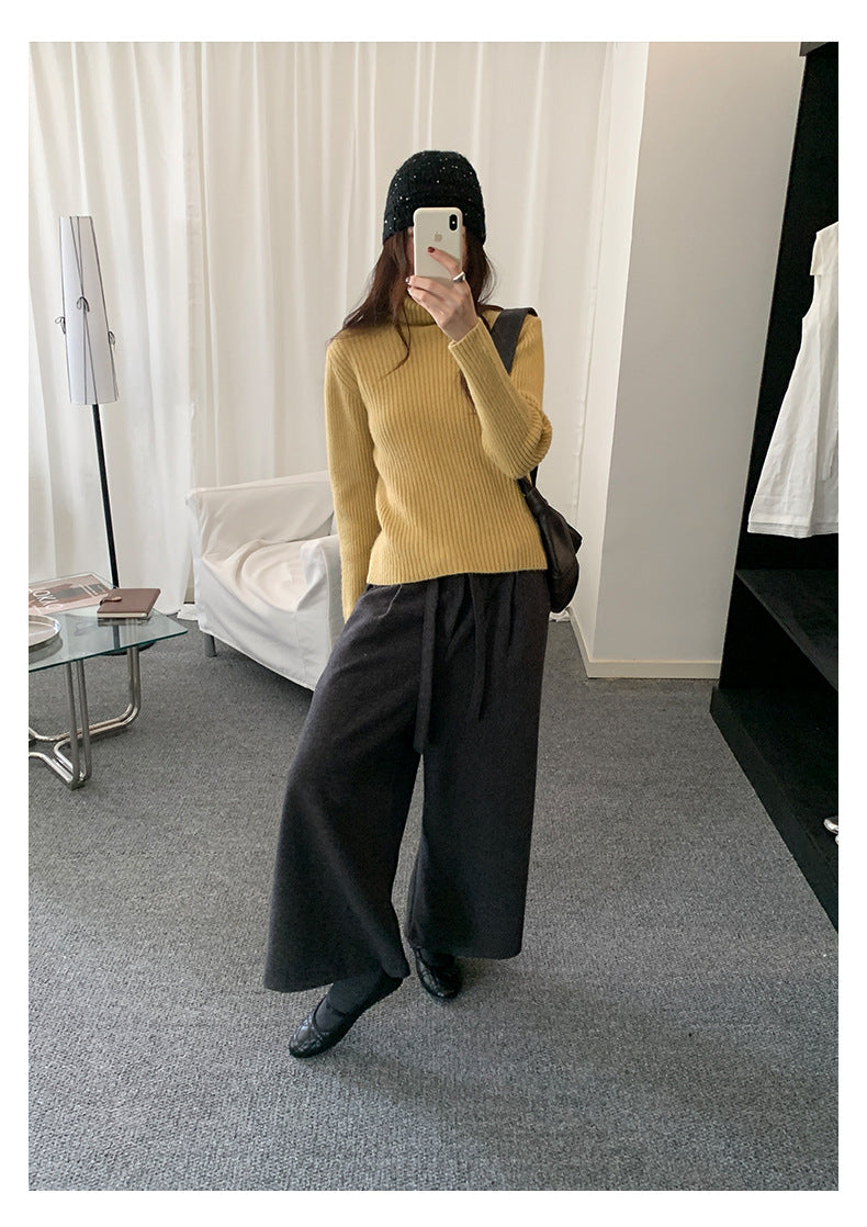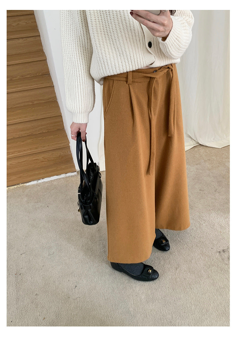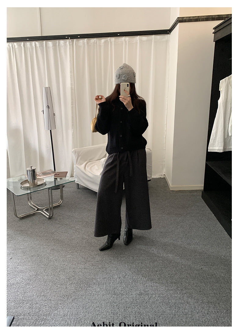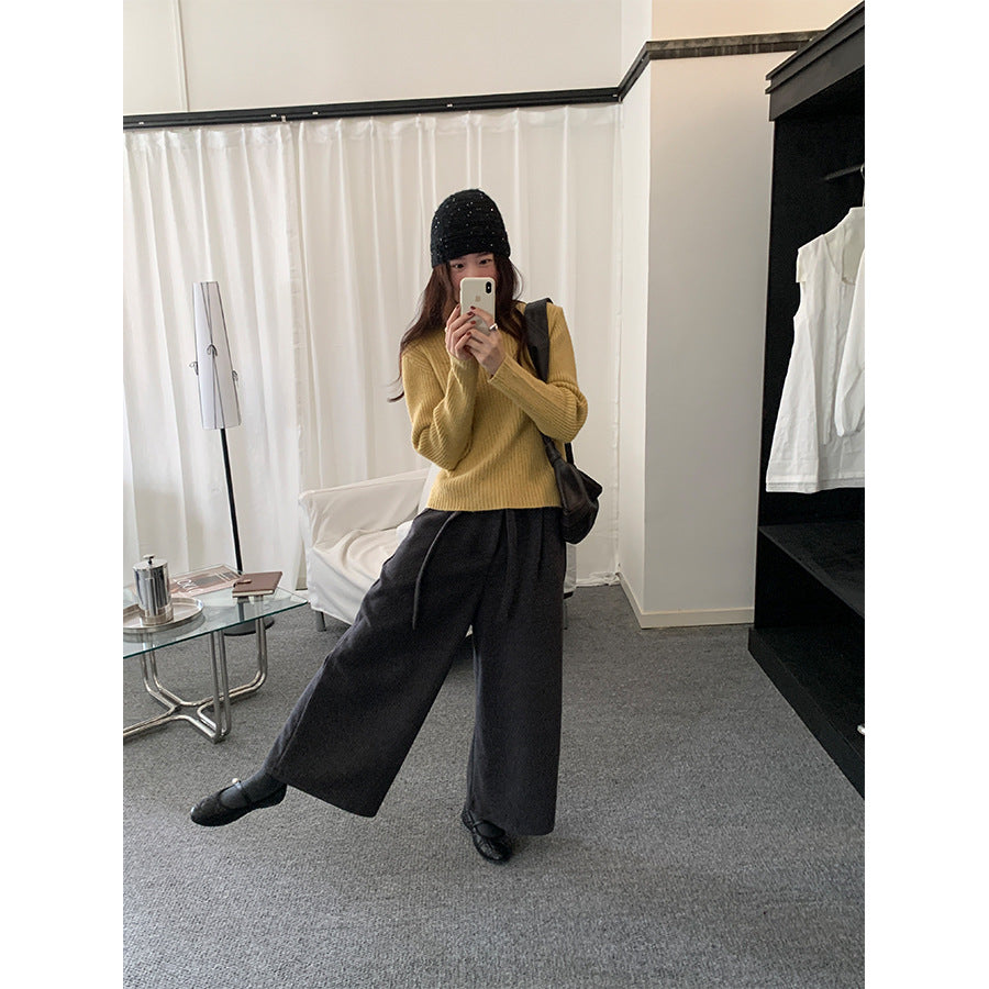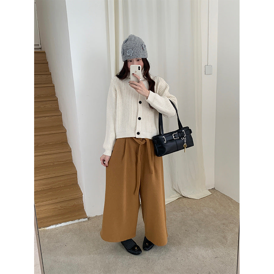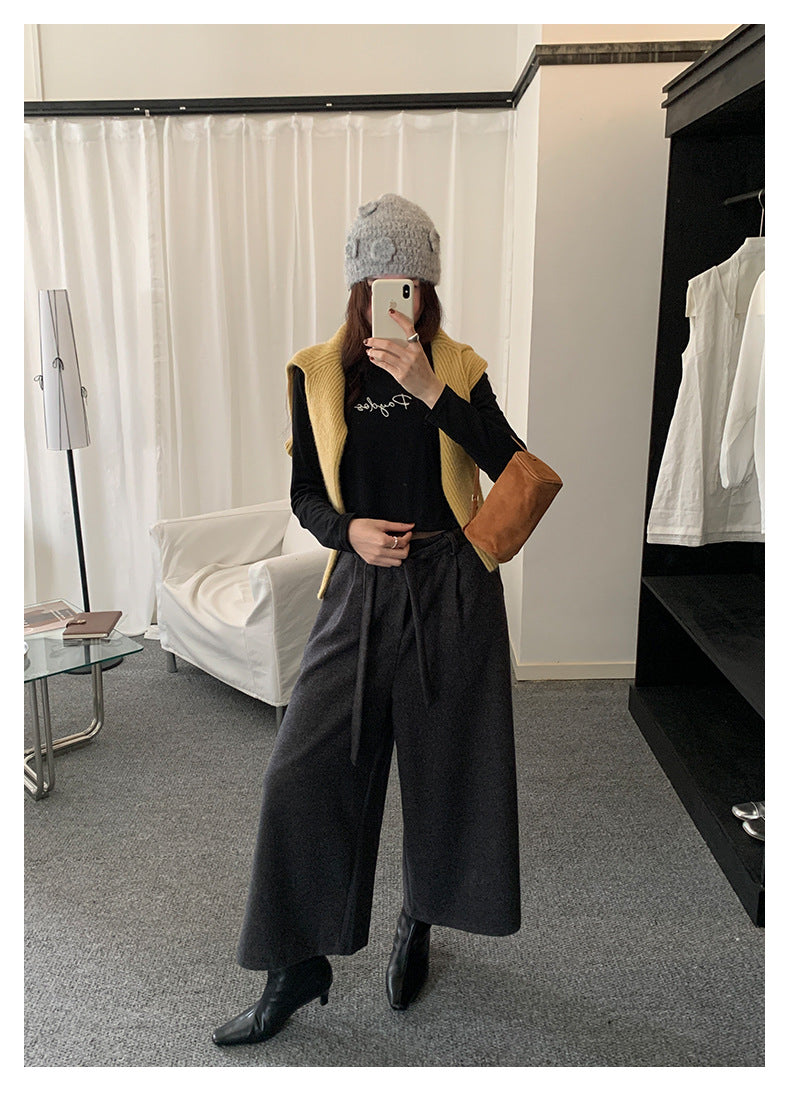 【H5491】實拍秋冬毛呢鬆緊腰加厚闊腿休閒褲251109